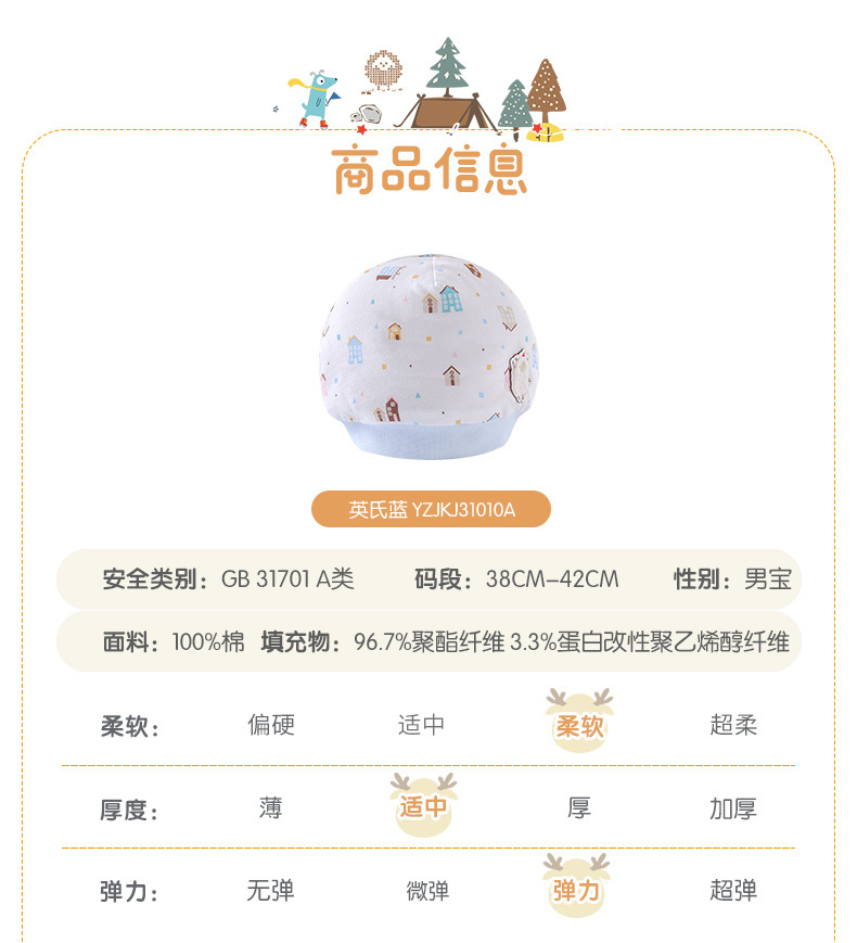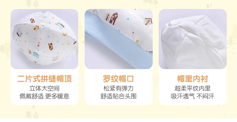 英氏新生婴儿纯棉冬季帽子宝宝夹棉保暖套头圆帽胎帽YZJKJ31010A