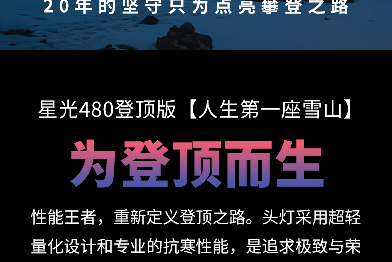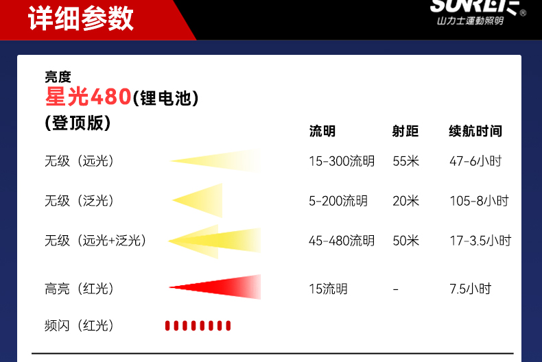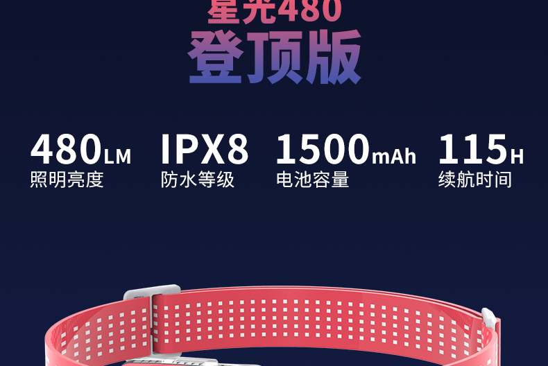 【129秒杀】山力士星光480高海拔攀登山头灯IPX8远射锂电户外超长续航头灯