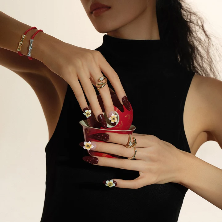 | 尺寸 | 红鸢尾耳饰:宽约35mm,高约45mm 幸运苹果耳饰:宽20mm,长28mm;苹果树脂约15 × 16 × 14.5mm 柿柿如意耳钉:10mm 万事都灵竹节手绳 S:链长155mm M:链长165mm L:链长175mm 金属是黄铜电镀 财源滚滚红绳: 145mm延长链20mm 葫芦棕色手绳:145mm延长链20mm 蝴蝶兰手绳:210mm 财源滚滚时来运转项链:链长380mm,延长链40mm 柿柿如意项链:链长380mm,延长链40mm |
