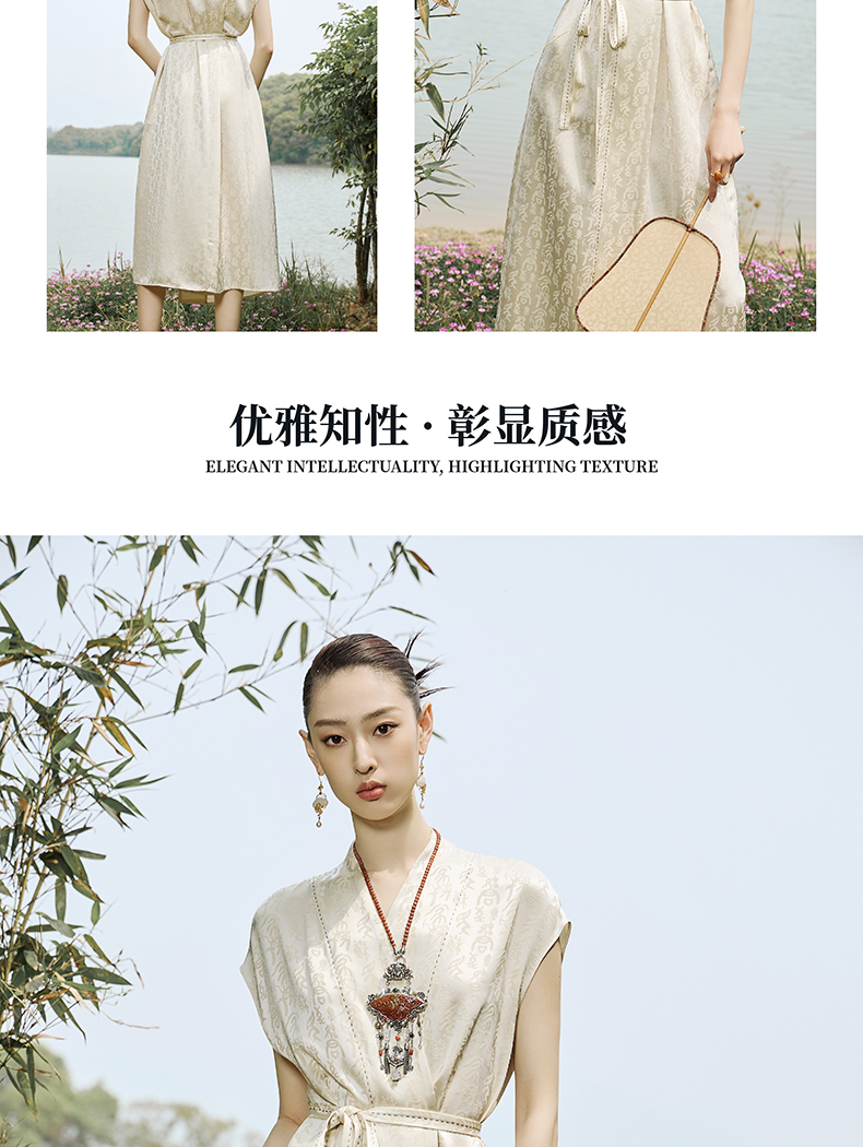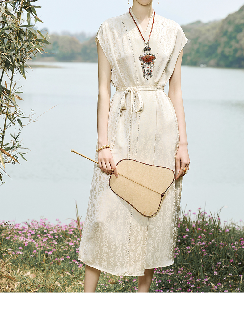 IWY/扶摇系列 夏季V领系带国风连衣裙23FYQ137