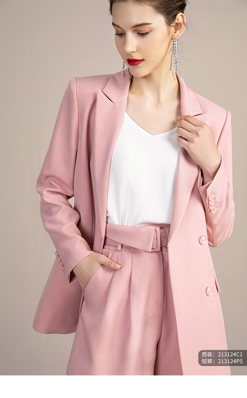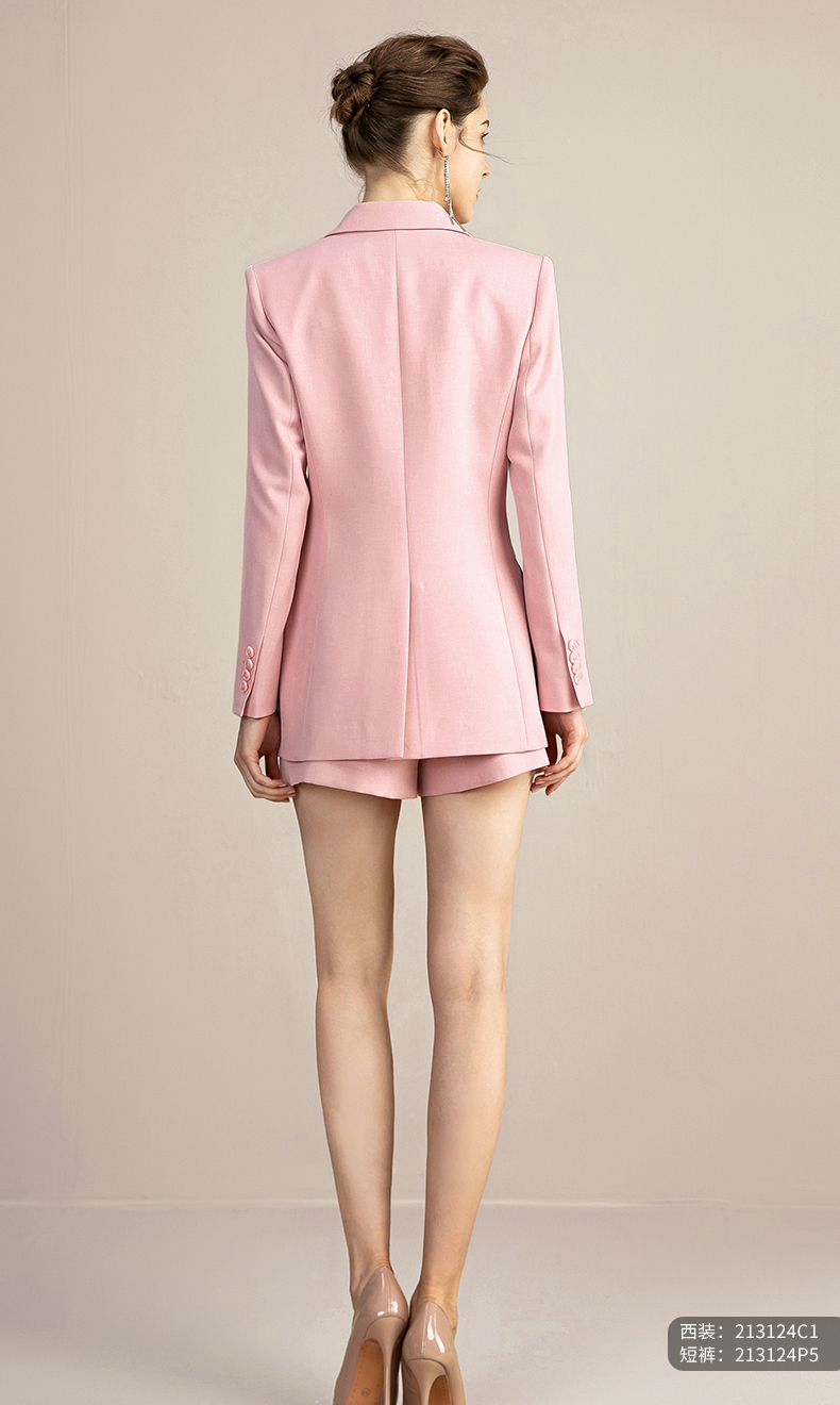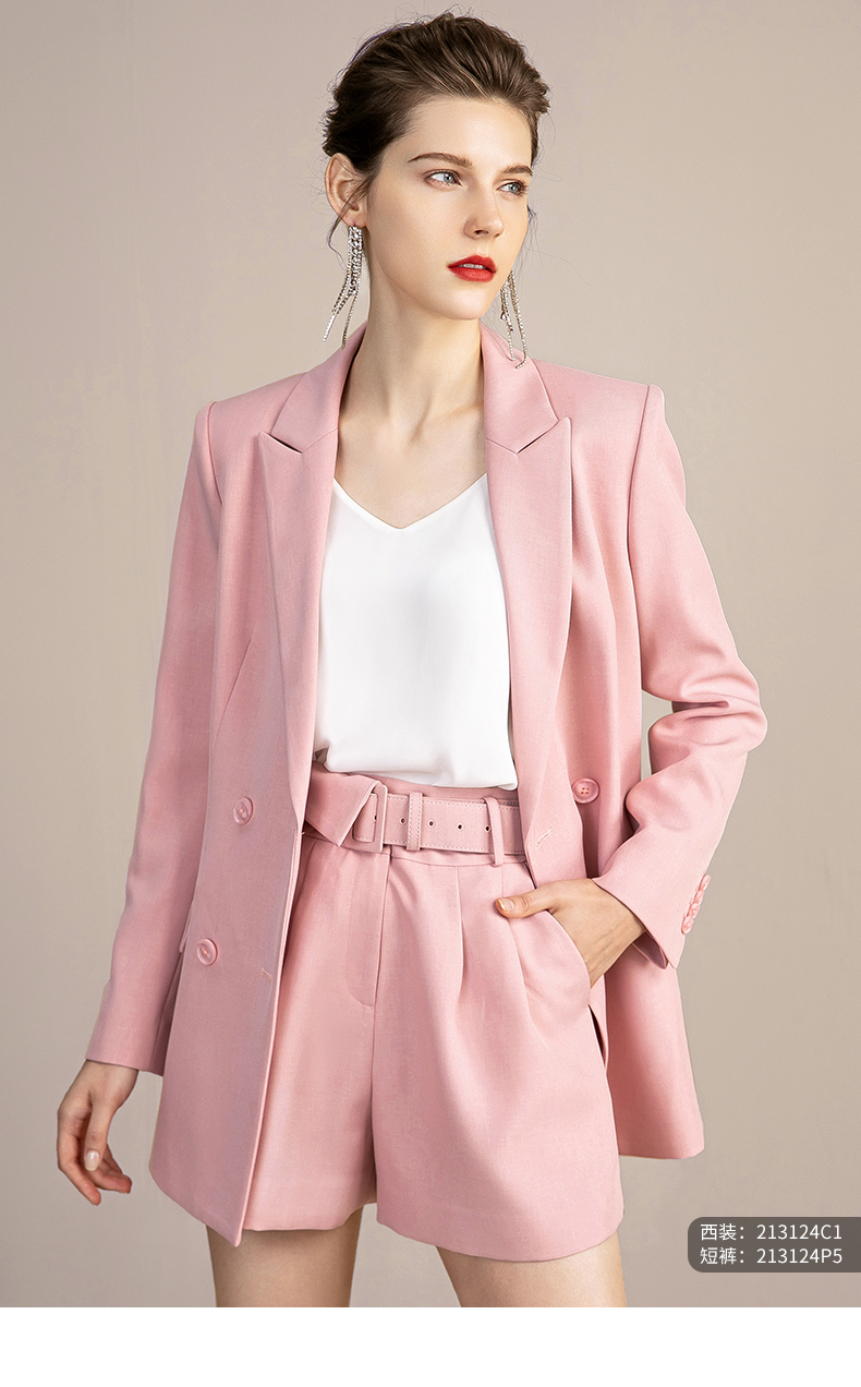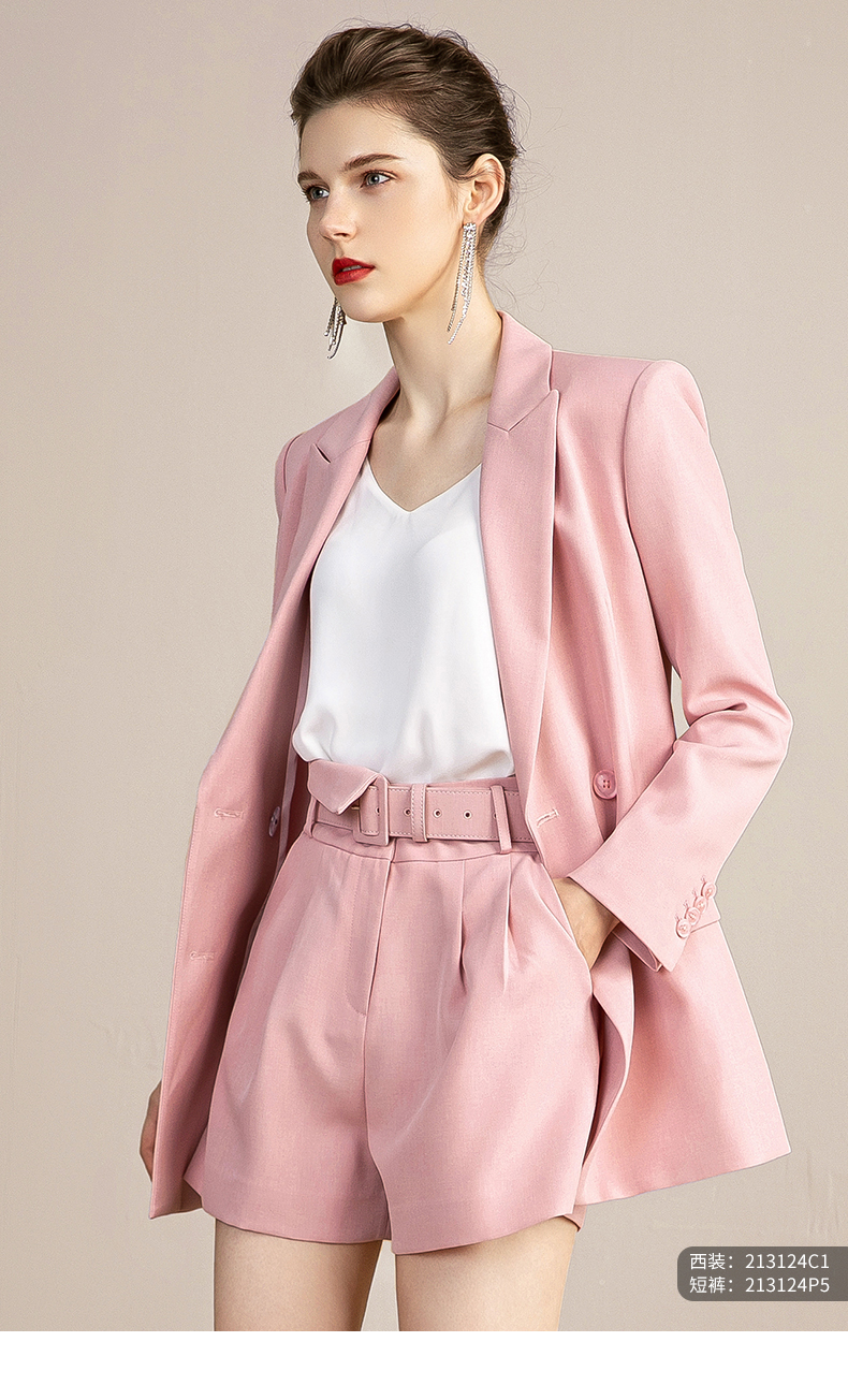 IWY/初薄款高端时尚粉色西服短裤套装女气质修身休闲西装213124C1+P5