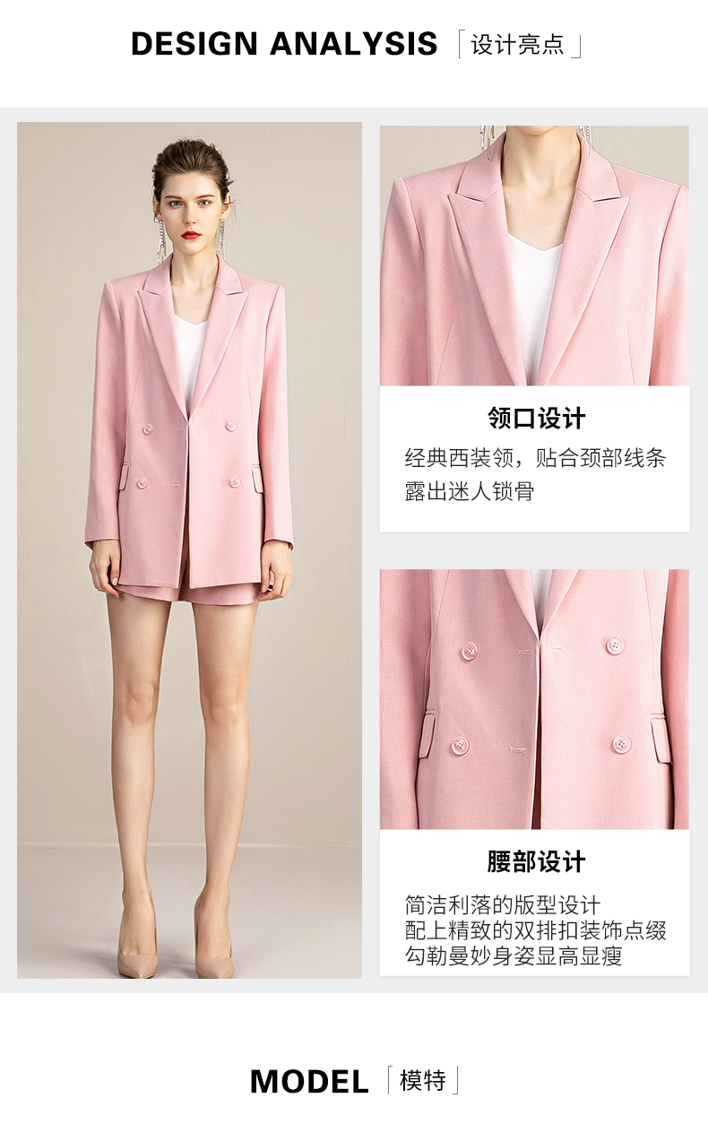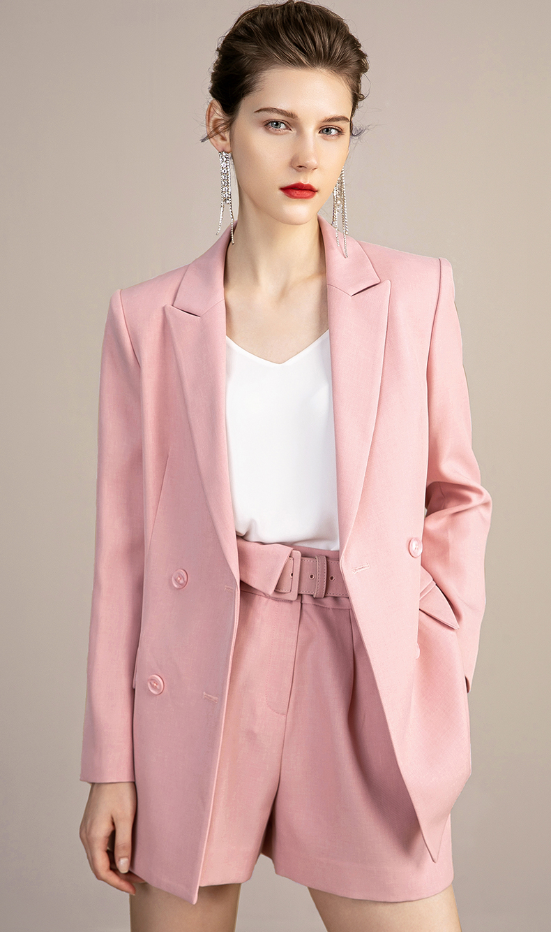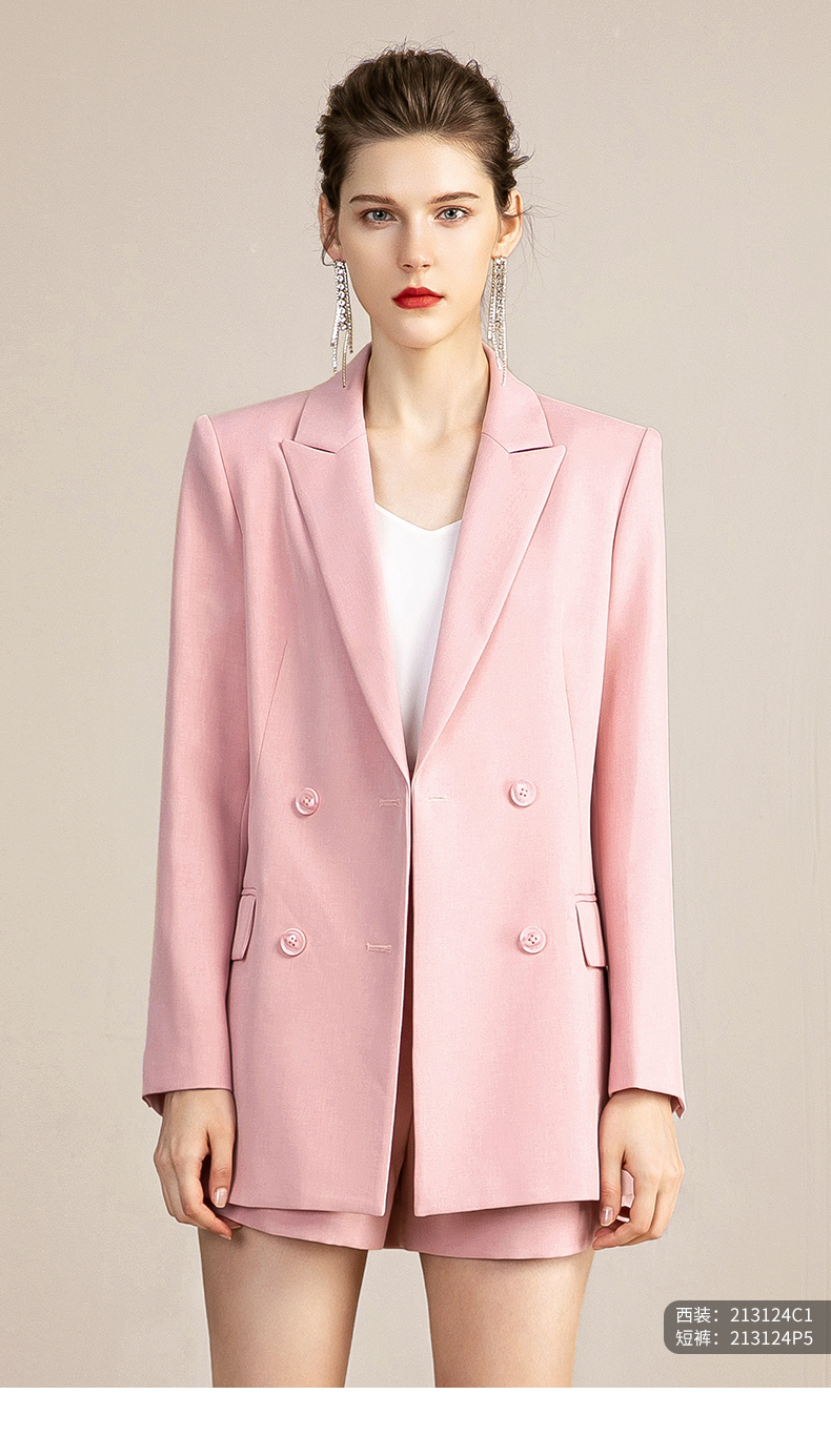 IWY/初薄款高端时尚粉色西服短裤套装女气质修身休闲西装213124C1+P5