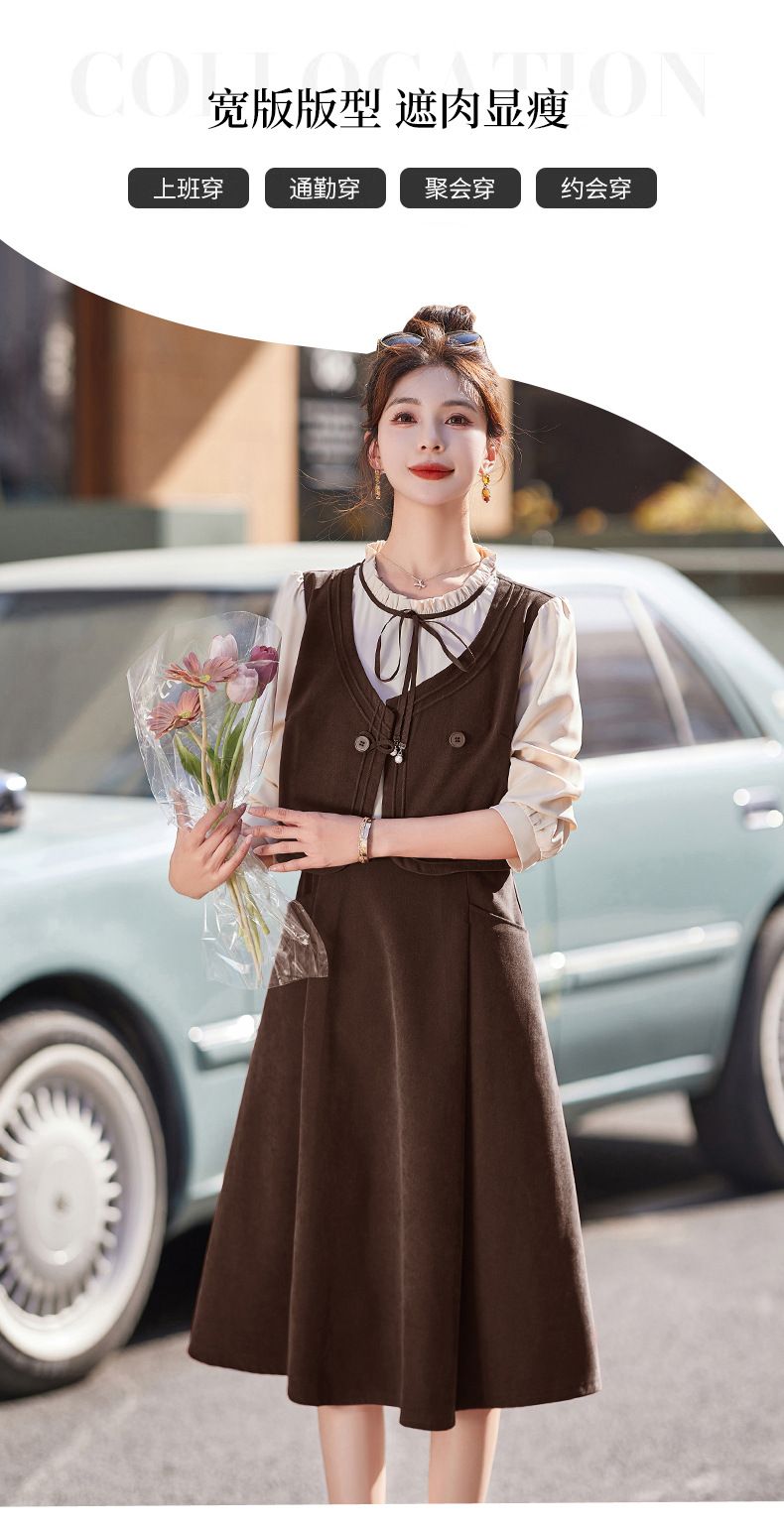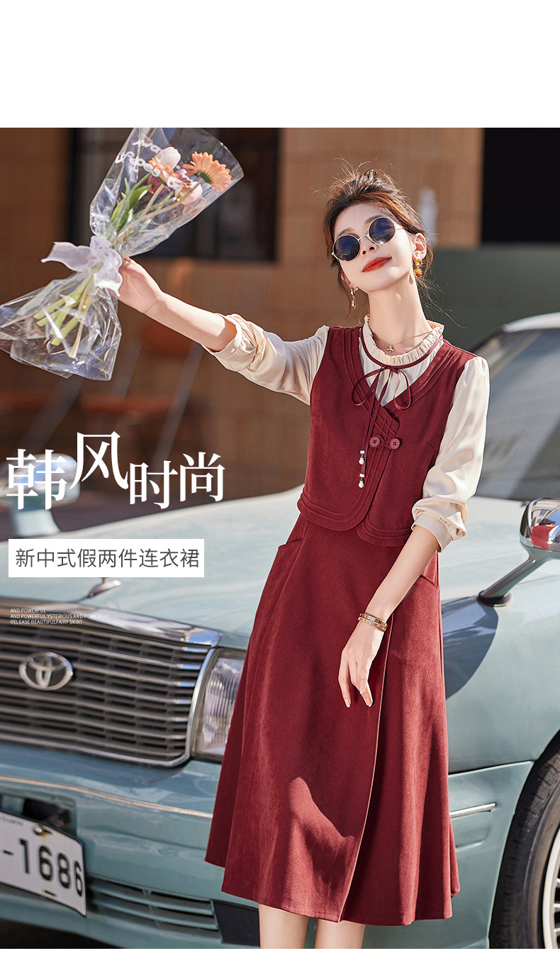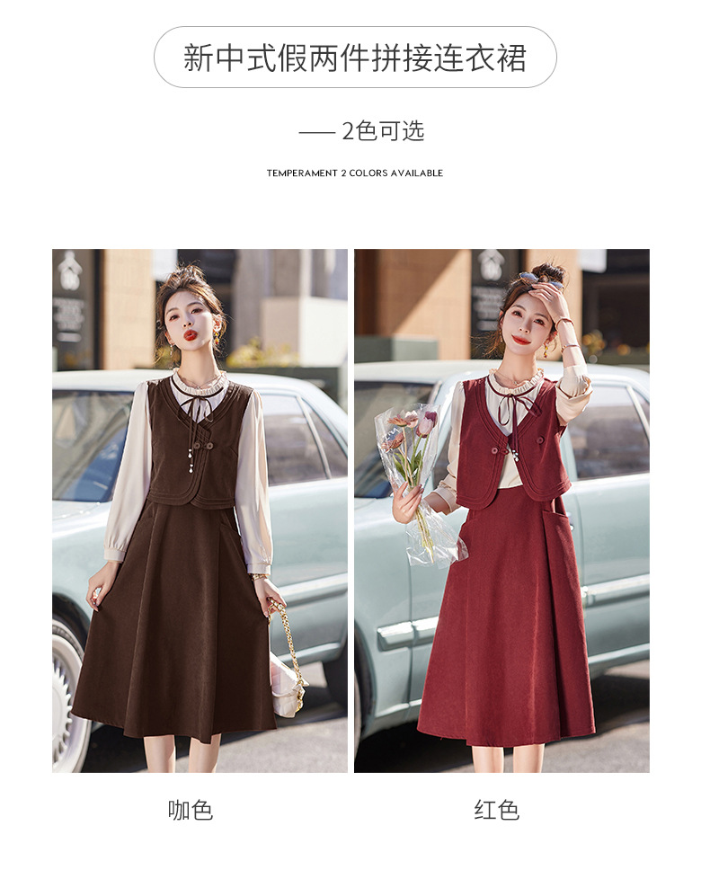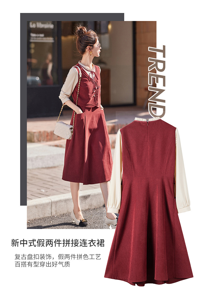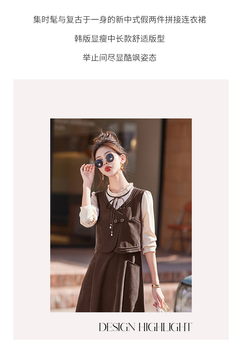 新品盘扣新中式2024新款显高显瘦假两件通勤淑女连衣裙HR-YLFS8881