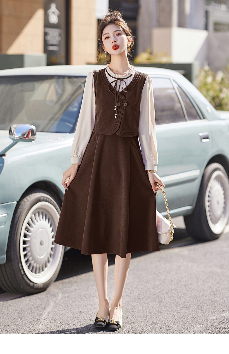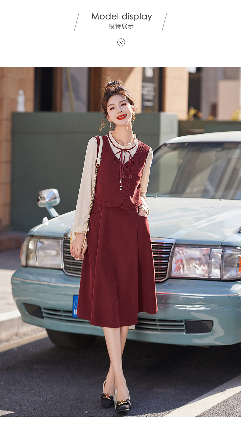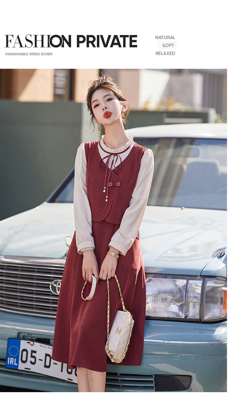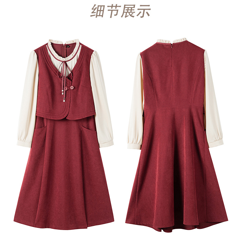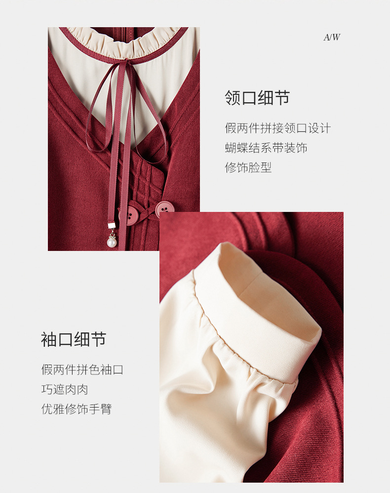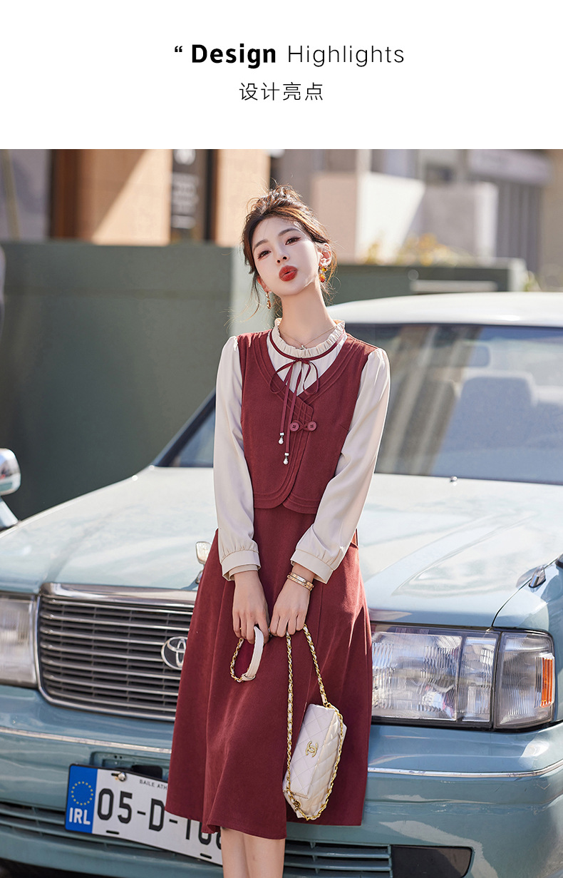 新品盘扣新中式2024新款显高显瘦假两件通勤淑女连衣裙HR-YLFS8881