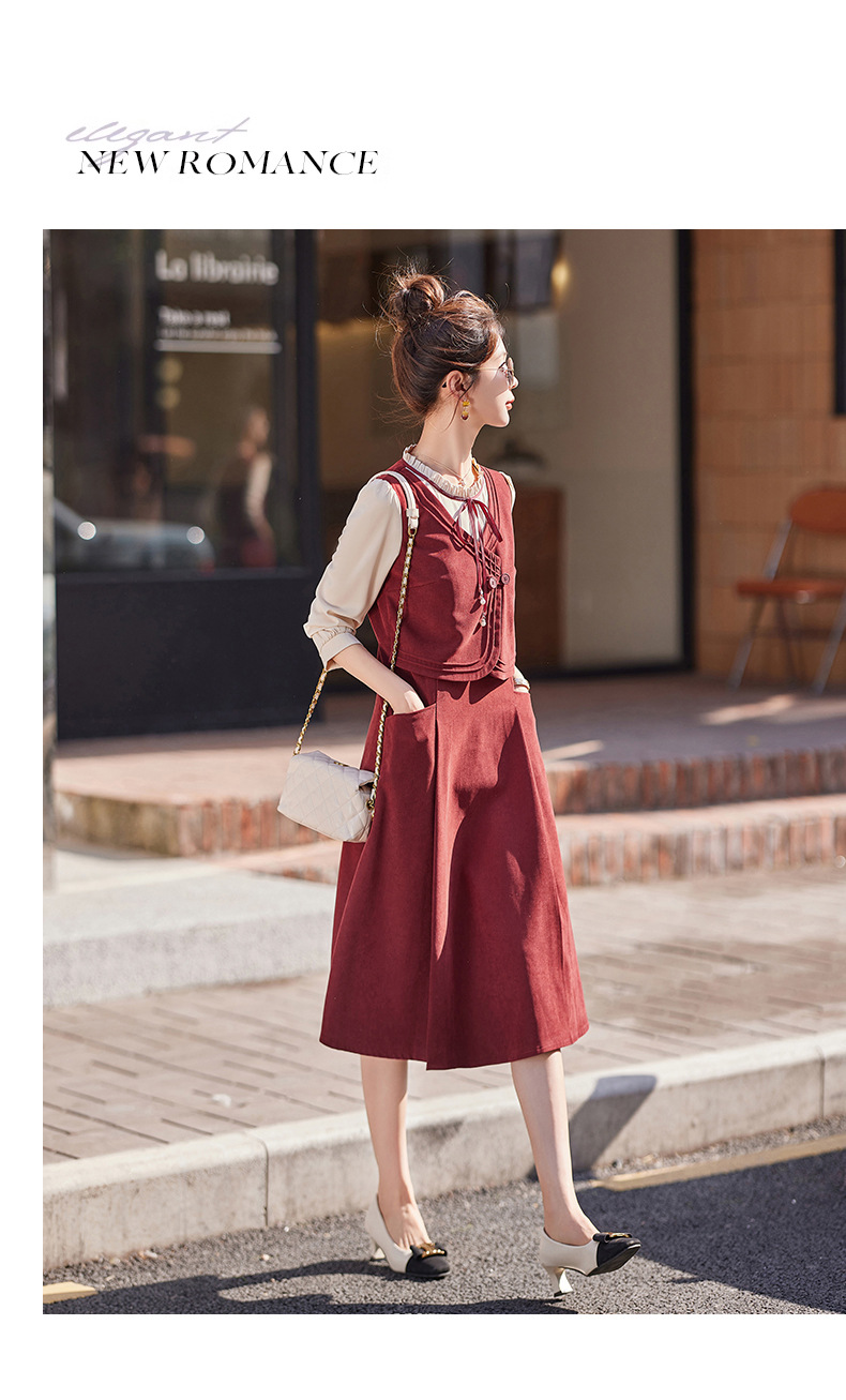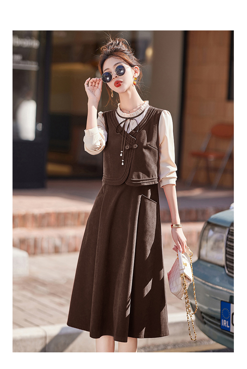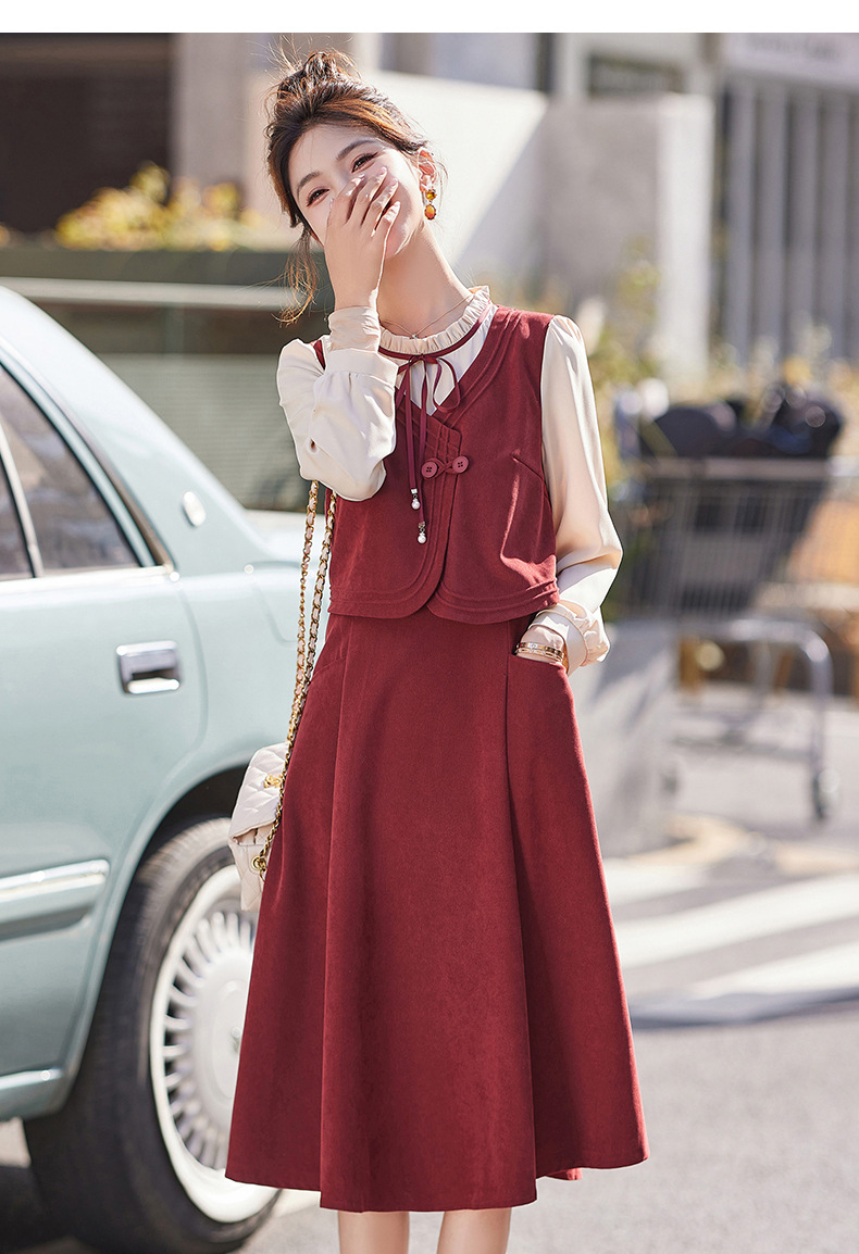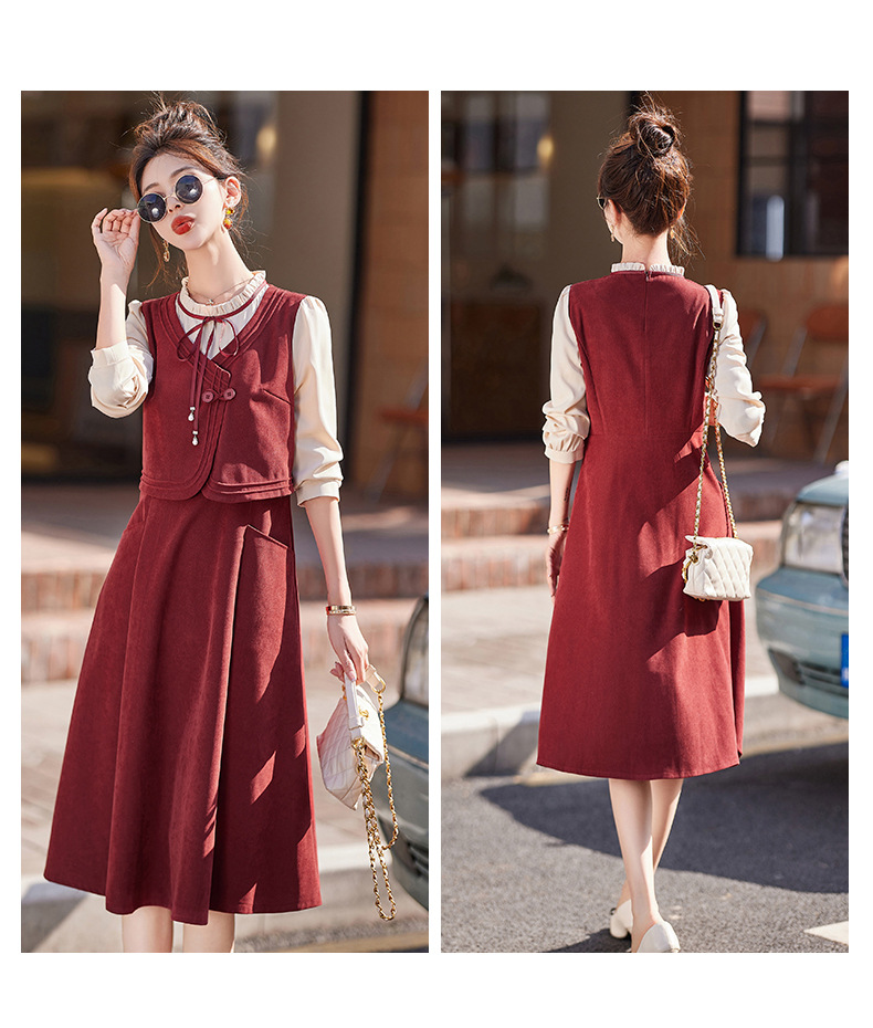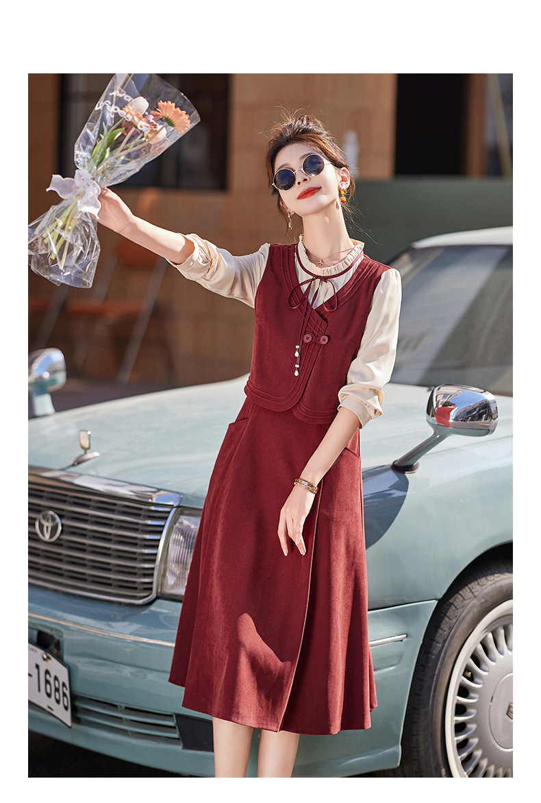 新品盘扣新中式2024新款显高显瘦假两件通勤淑女连衣裙HR-YLFS8881