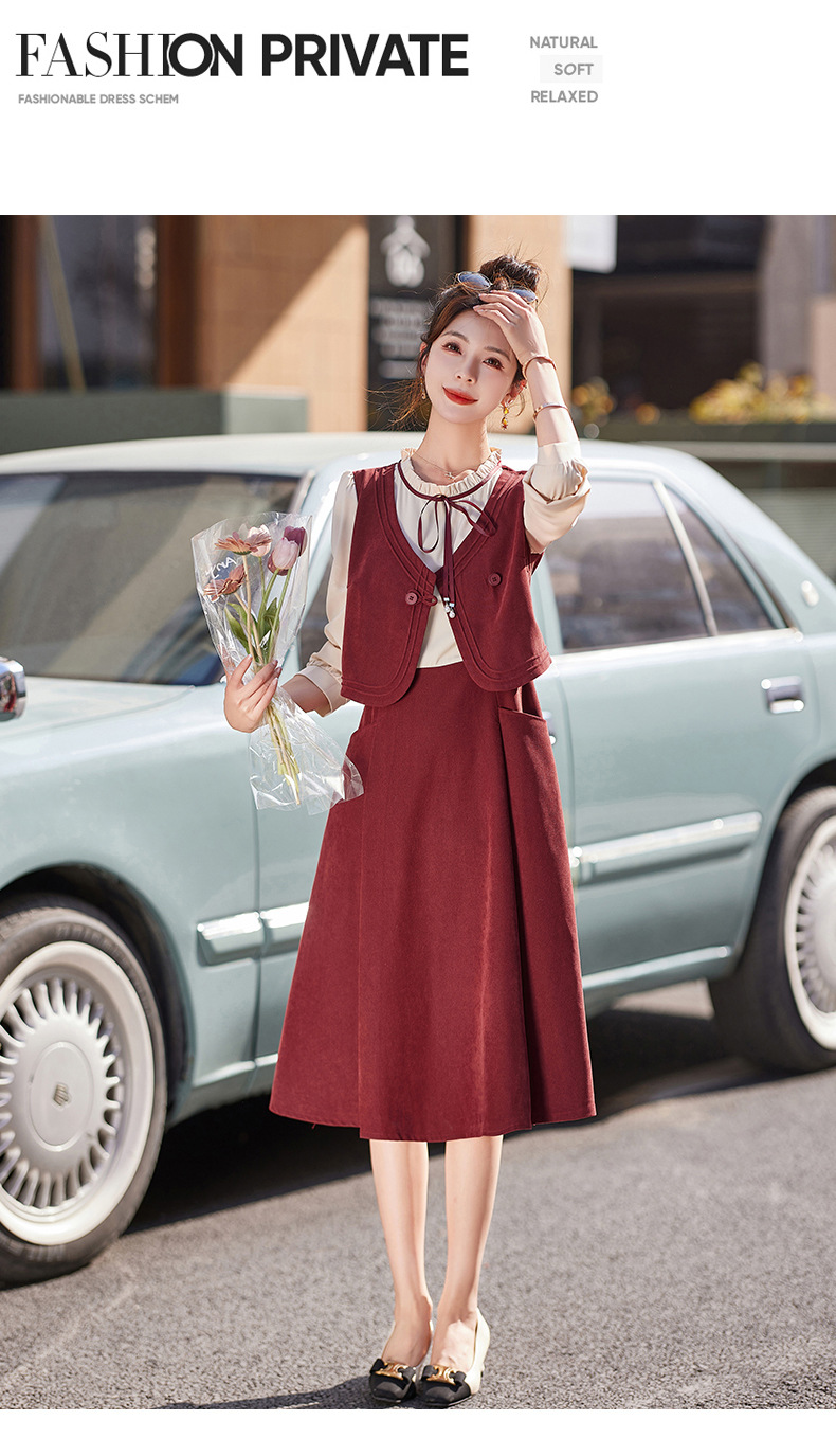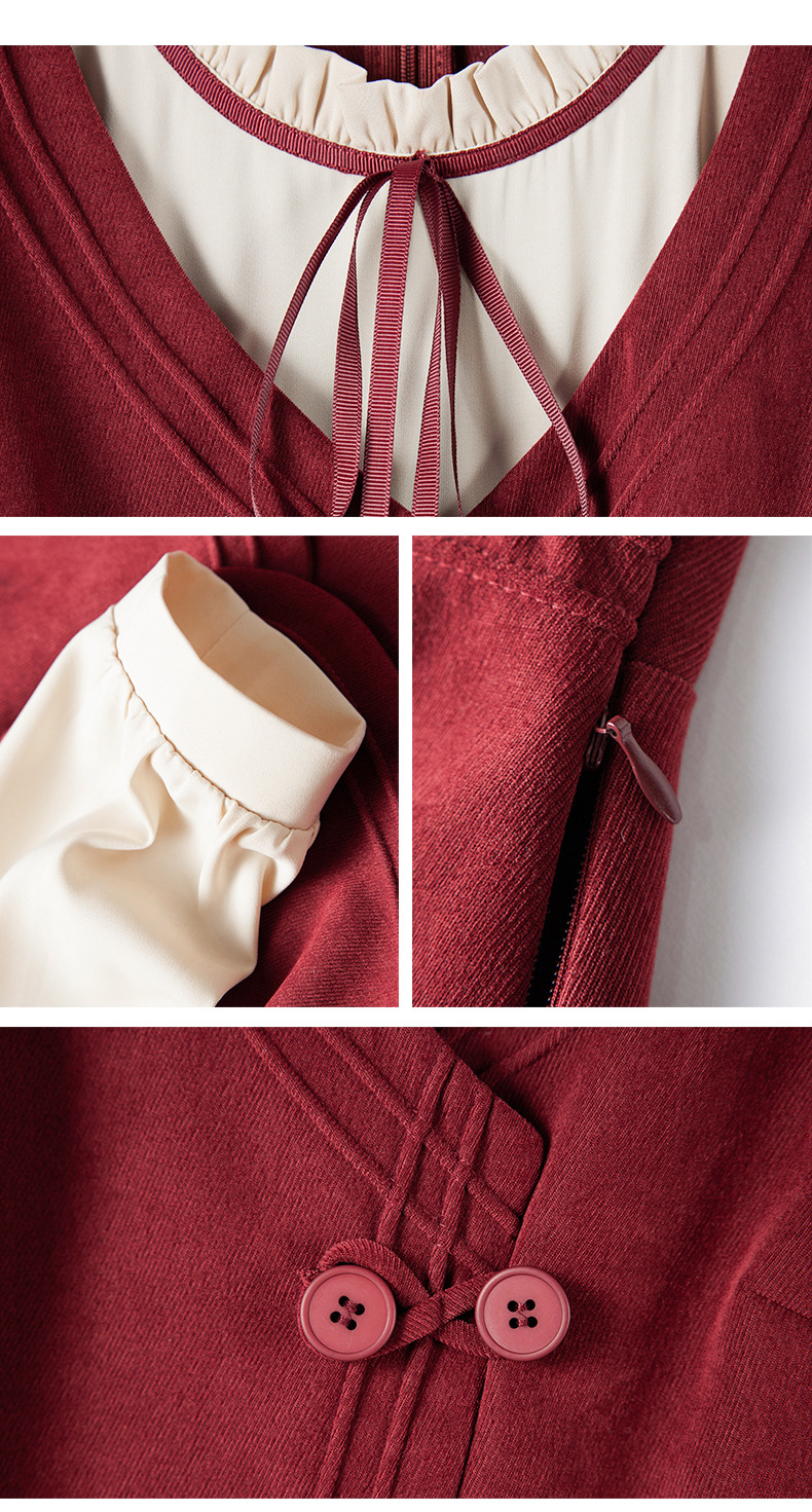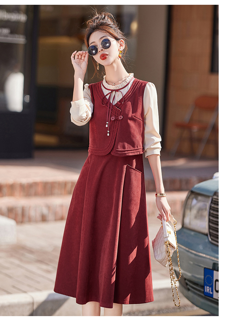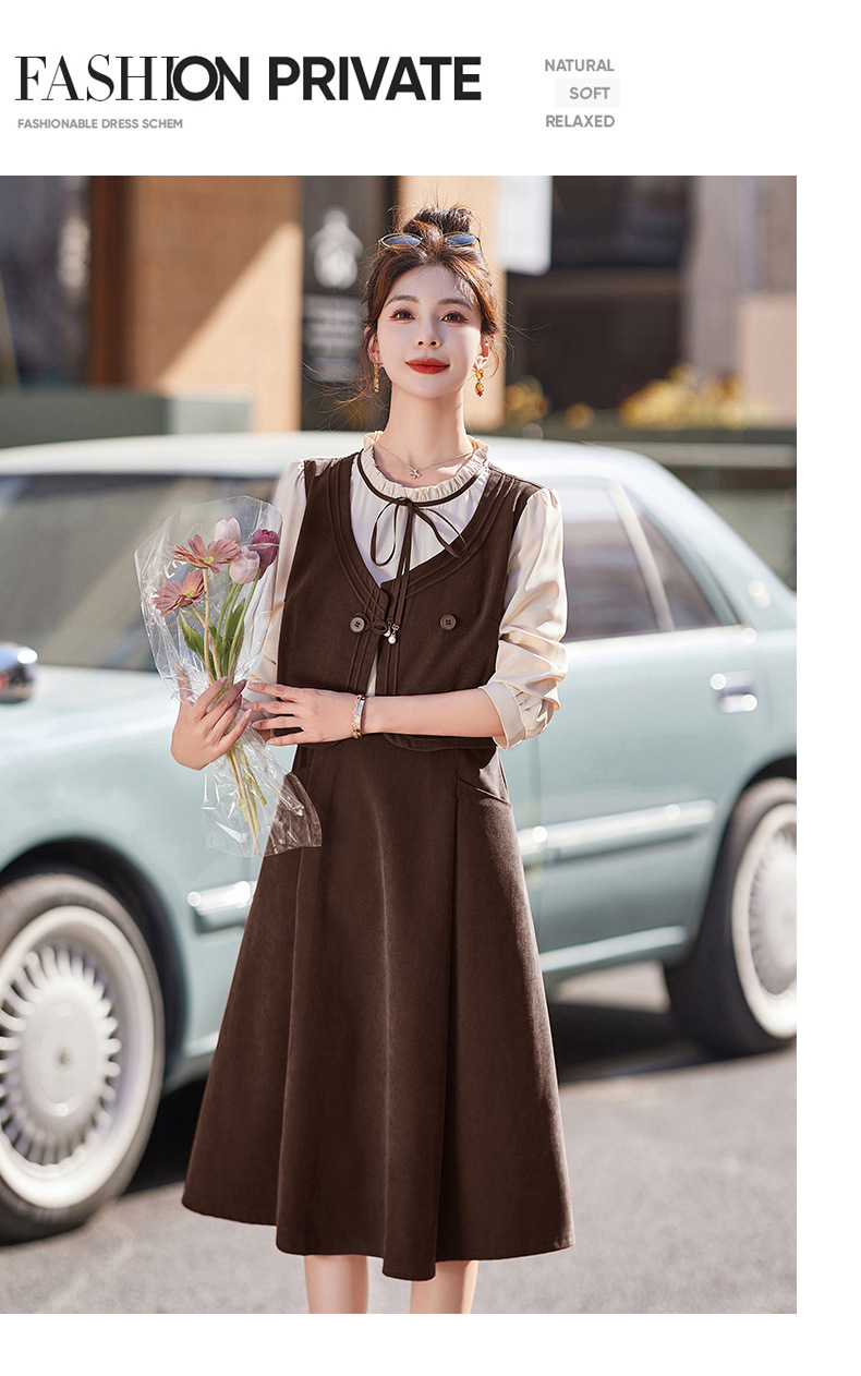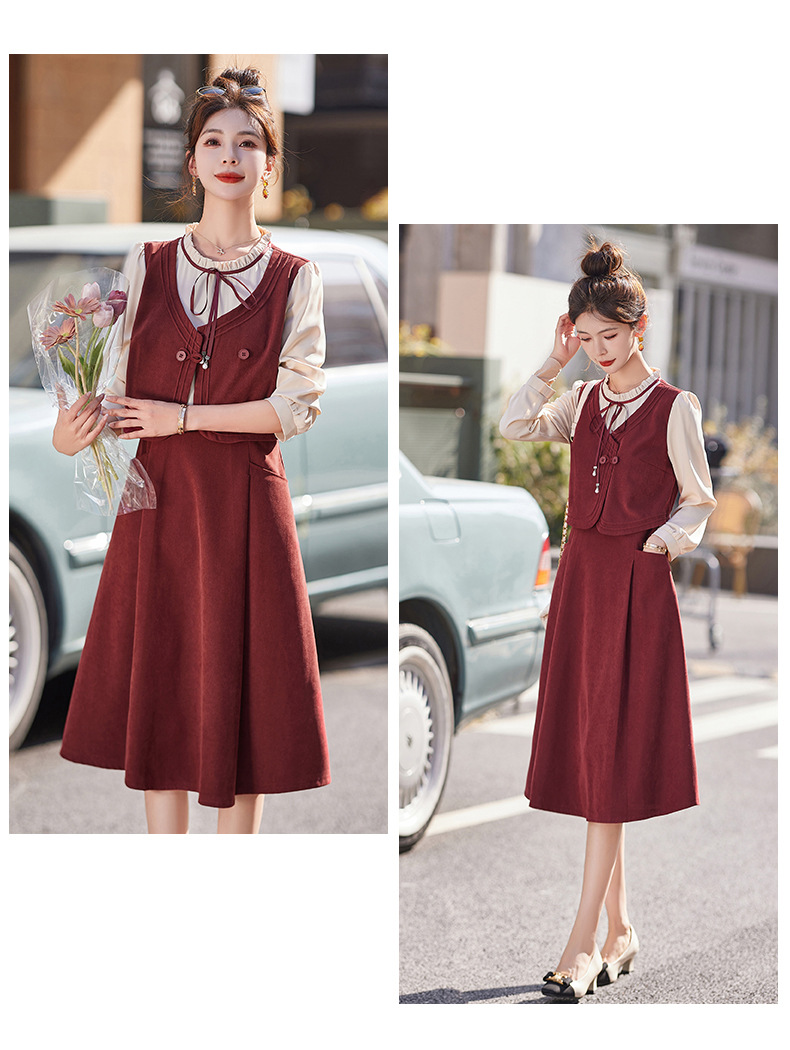新品盘扣新中式2024新款显高显瘦假两件通勤淑女连衣裙HR-YLFS8881
