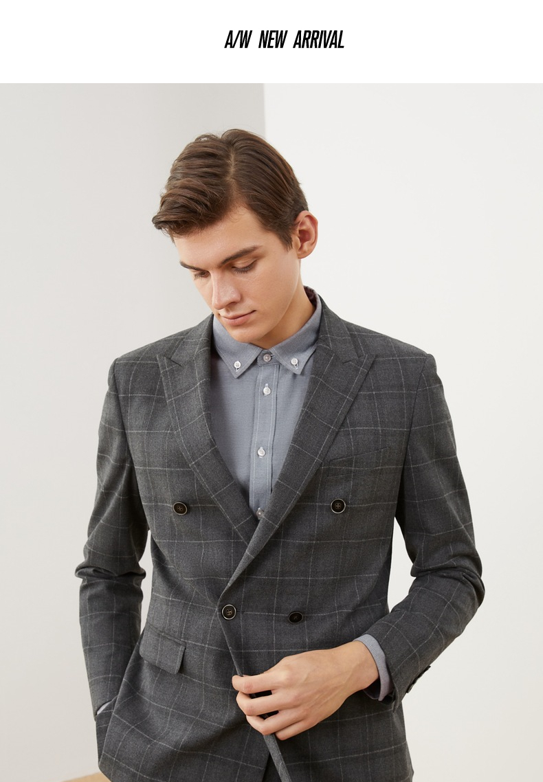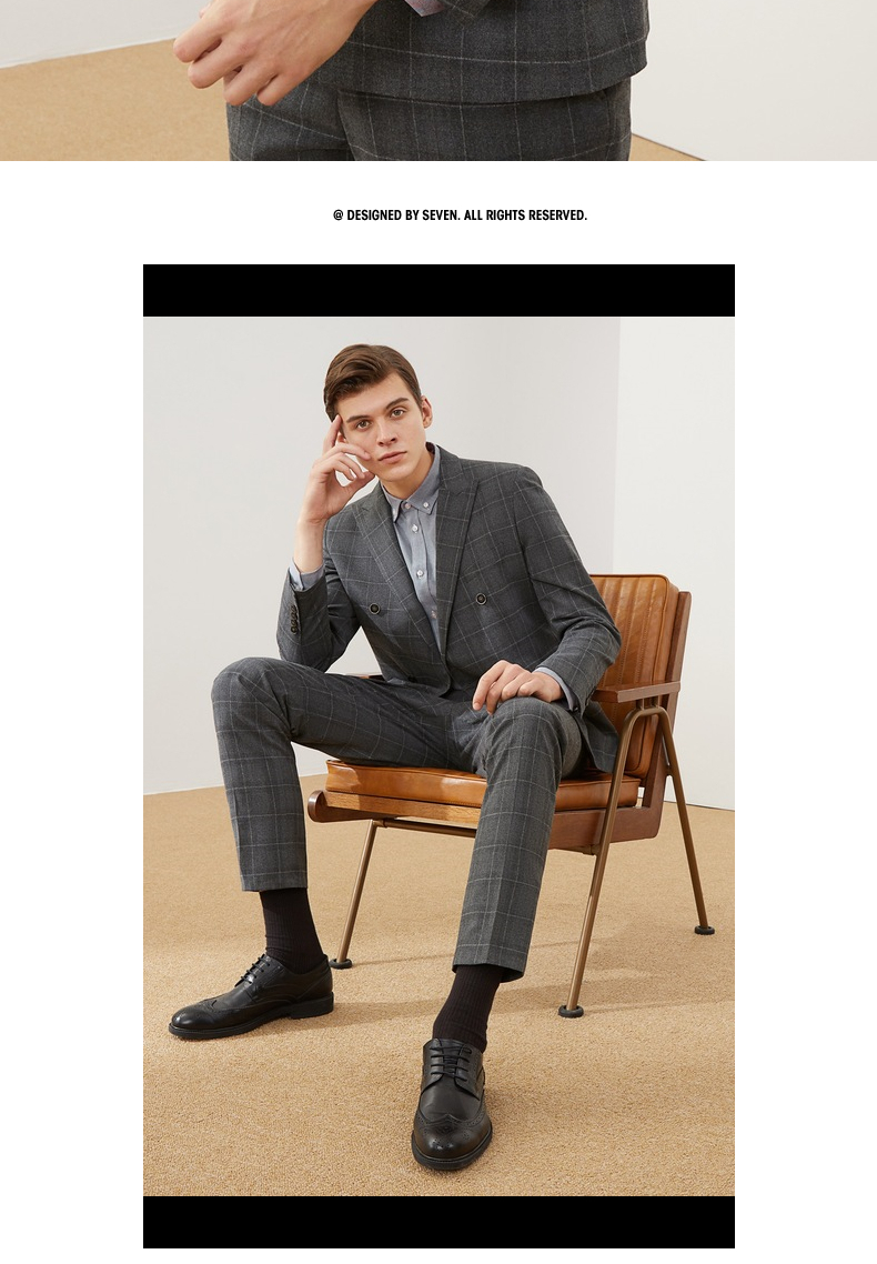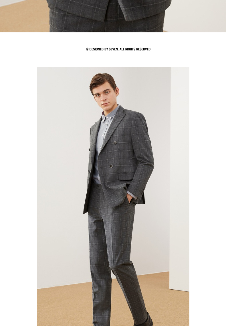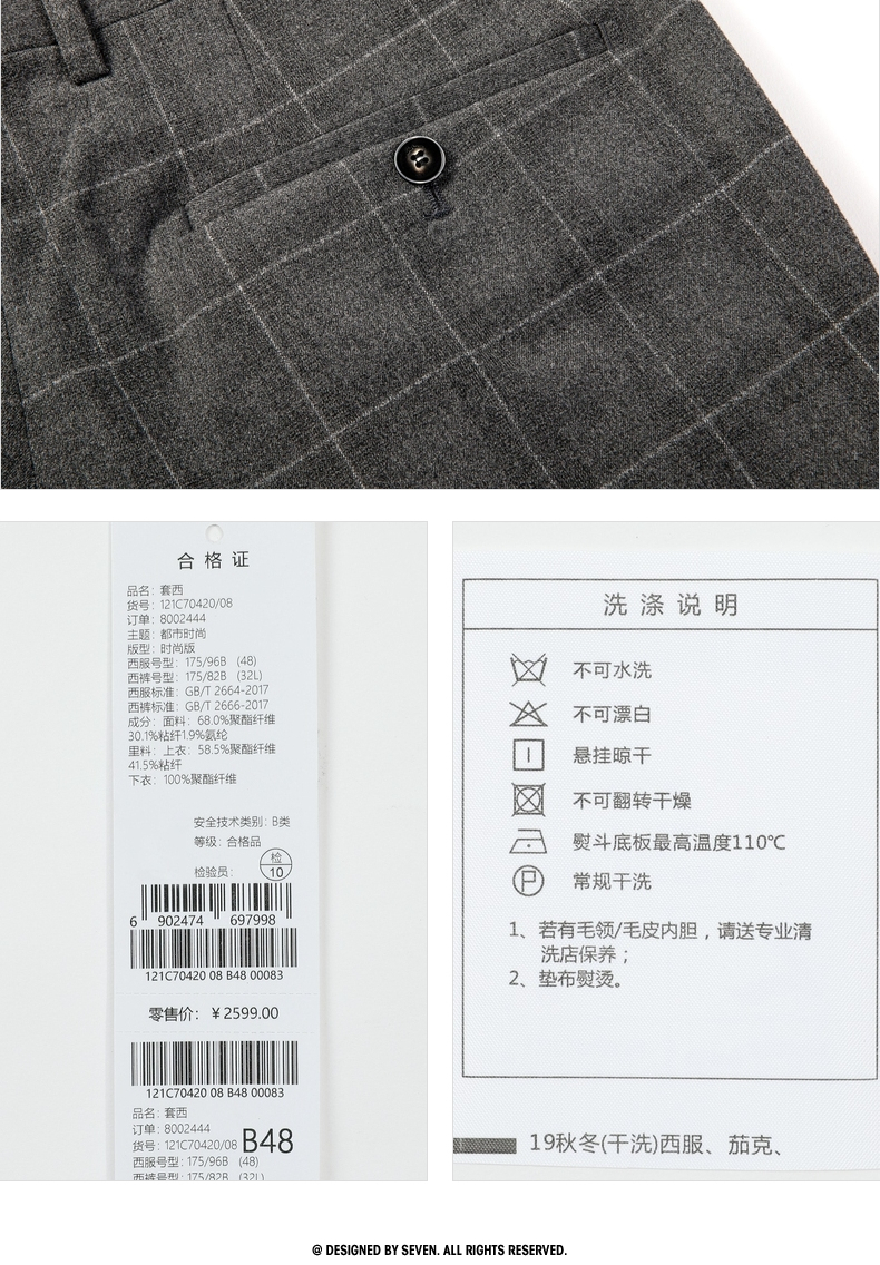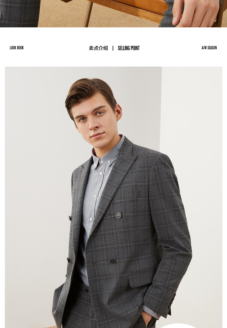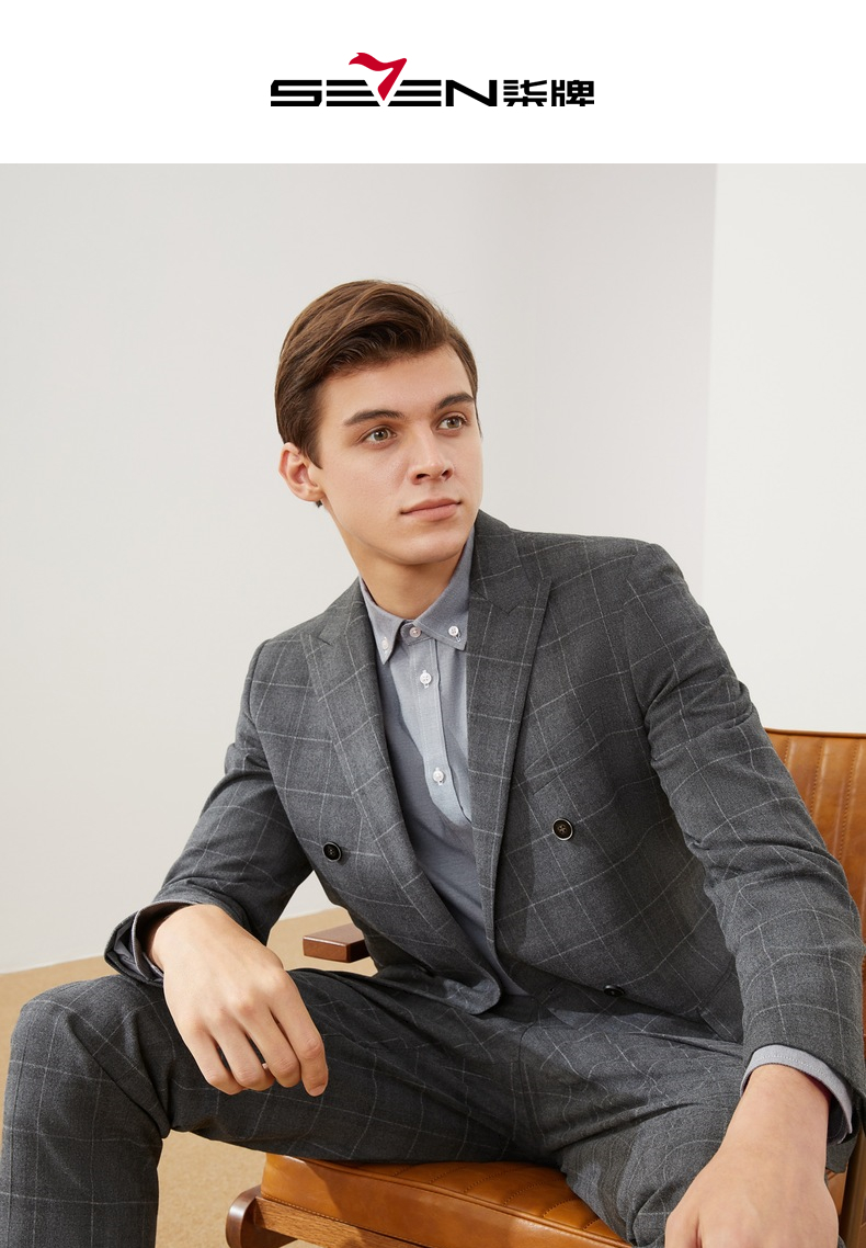 【特价】柒牌男装混纺套西双开衩两件套戗驳领复古英伦风西装长裤外套121C70420