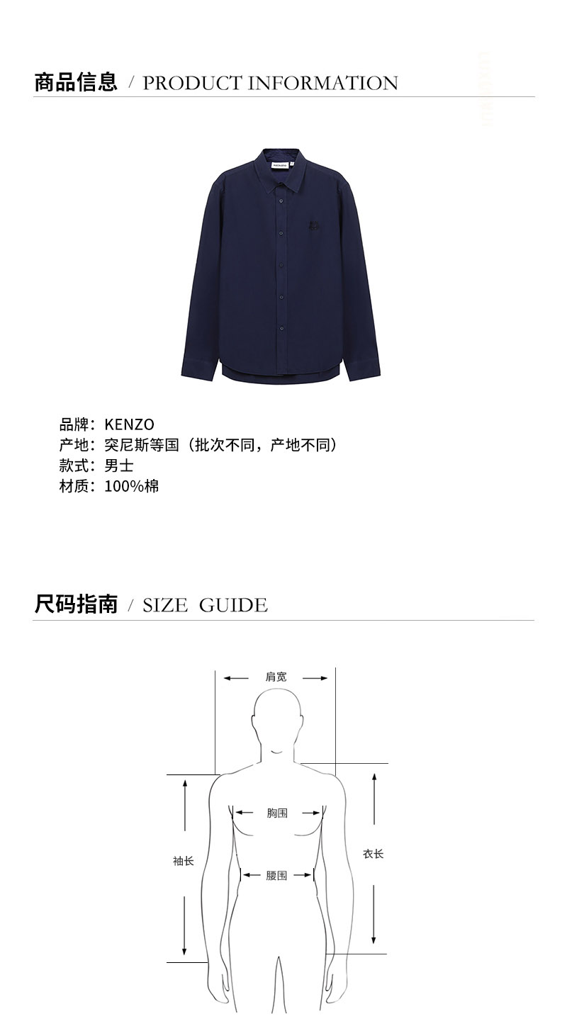品牌:KENZO/高田贤三产地:突尼斯等国(批次不同,产地不同)款式:男士颜色:藏蓝色材质:棉质