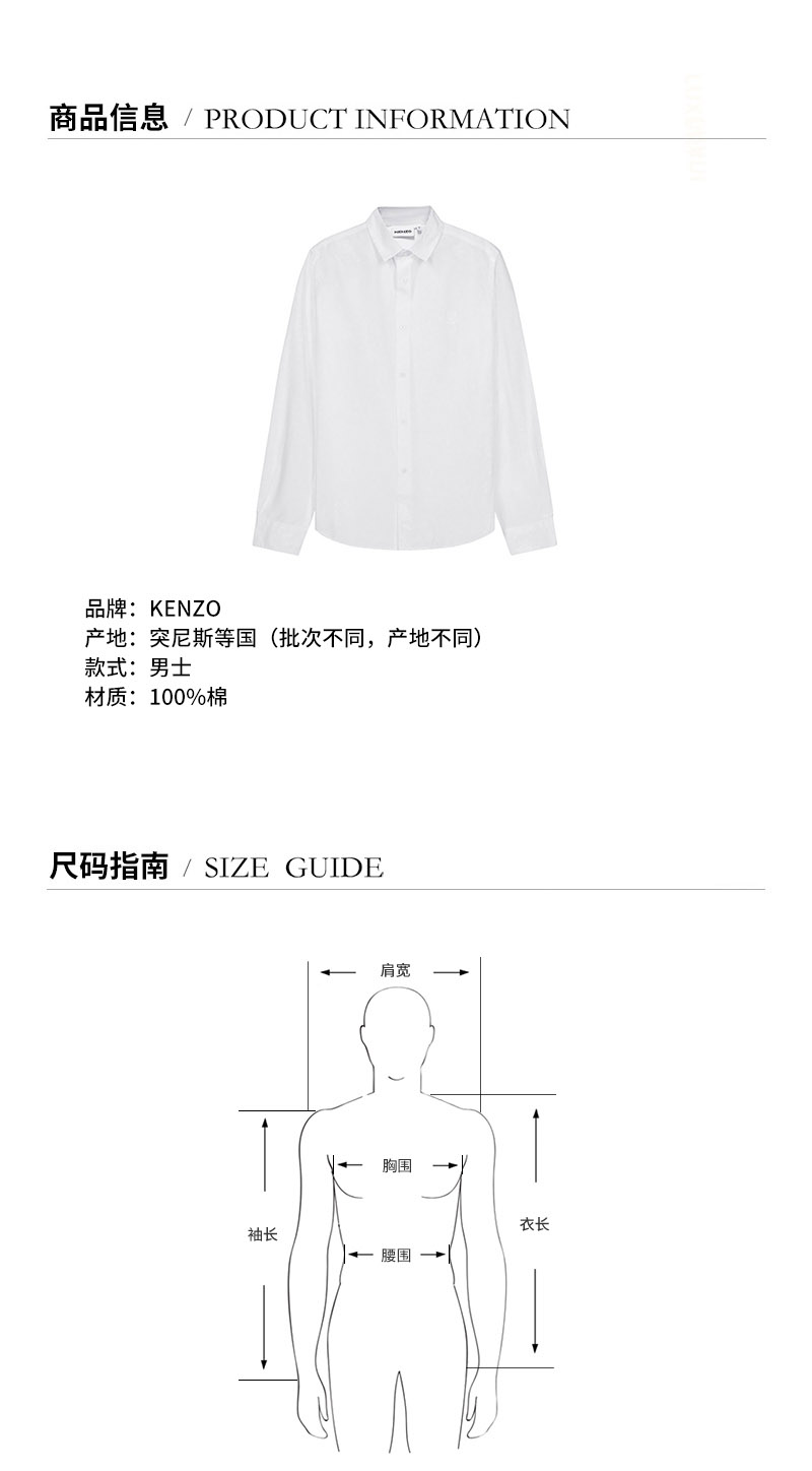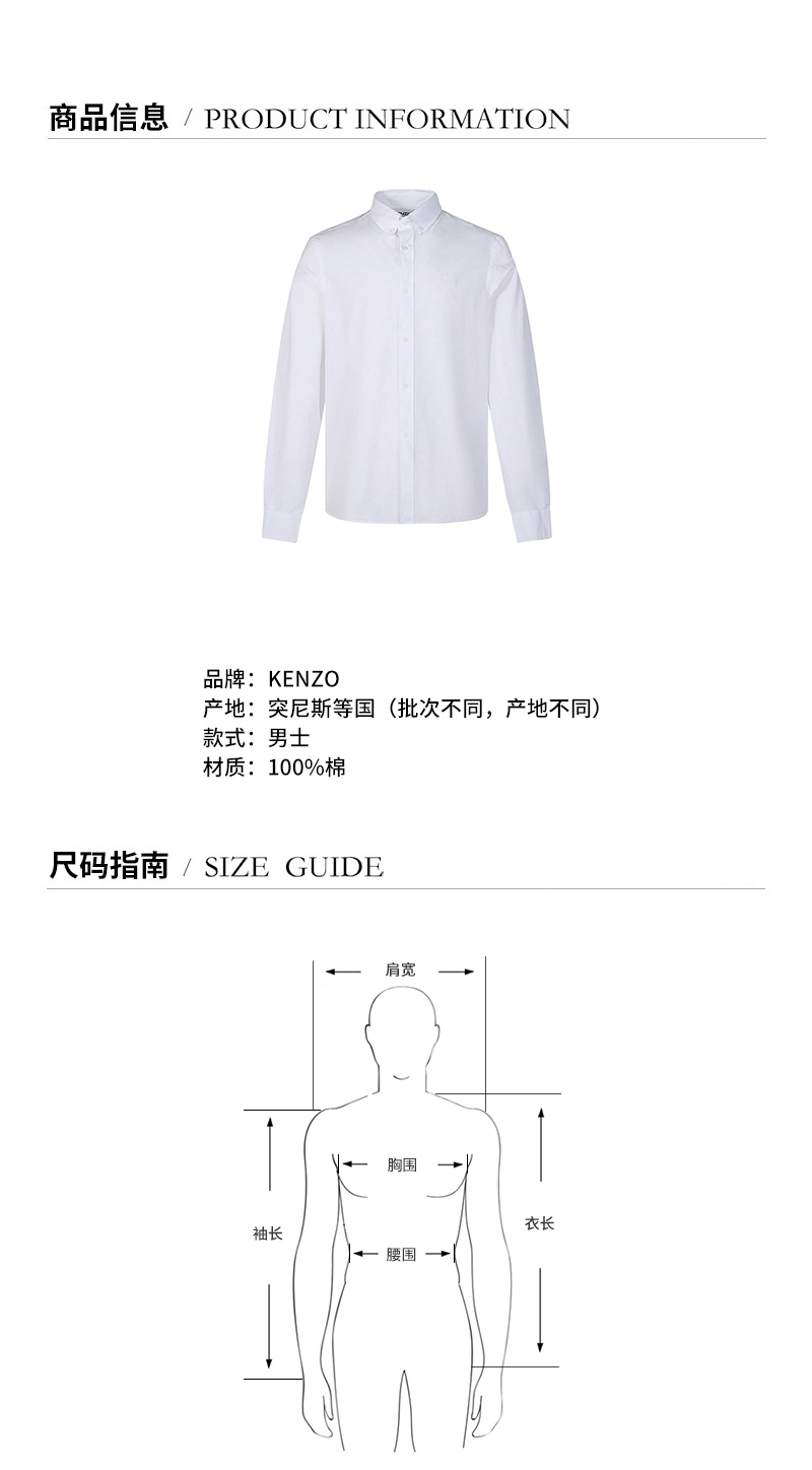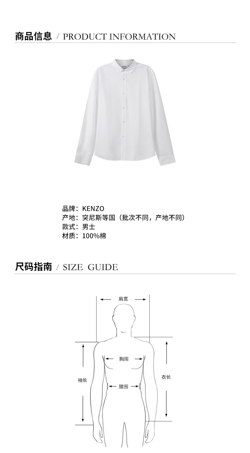 品牌:KENZO/高田贤三产地:突尼斯等国(批次不同,产地不同)款式:男士颜色:白色材质:棉质