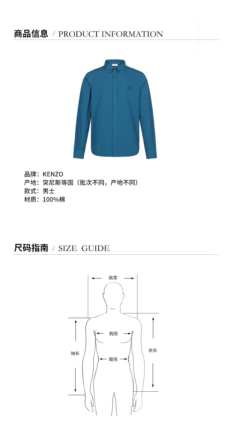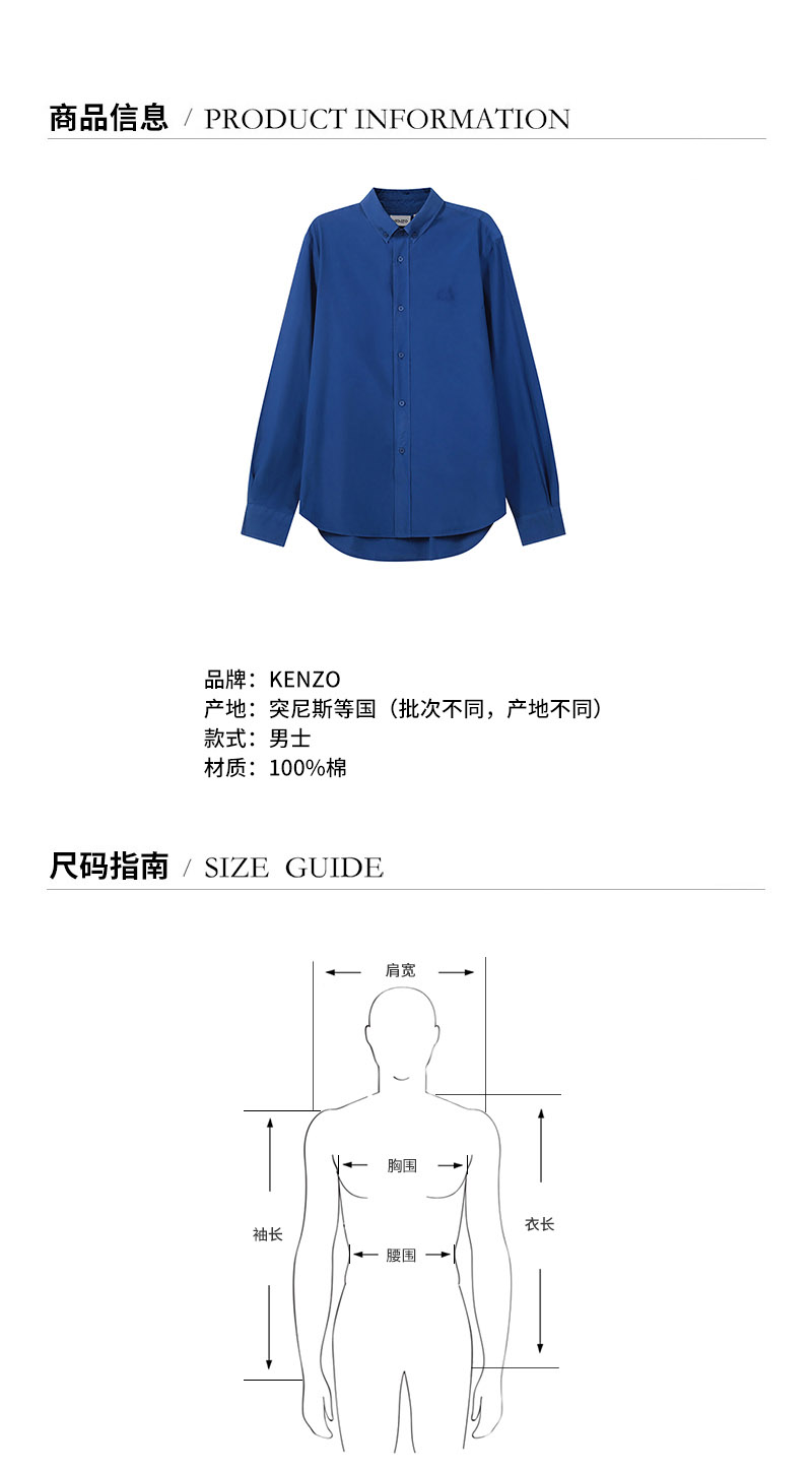 品牌:KENZO/高田贤三产地:突尼斯等国(批次不同,产地不同)款式:男士颜色:蓝色材质:棉质