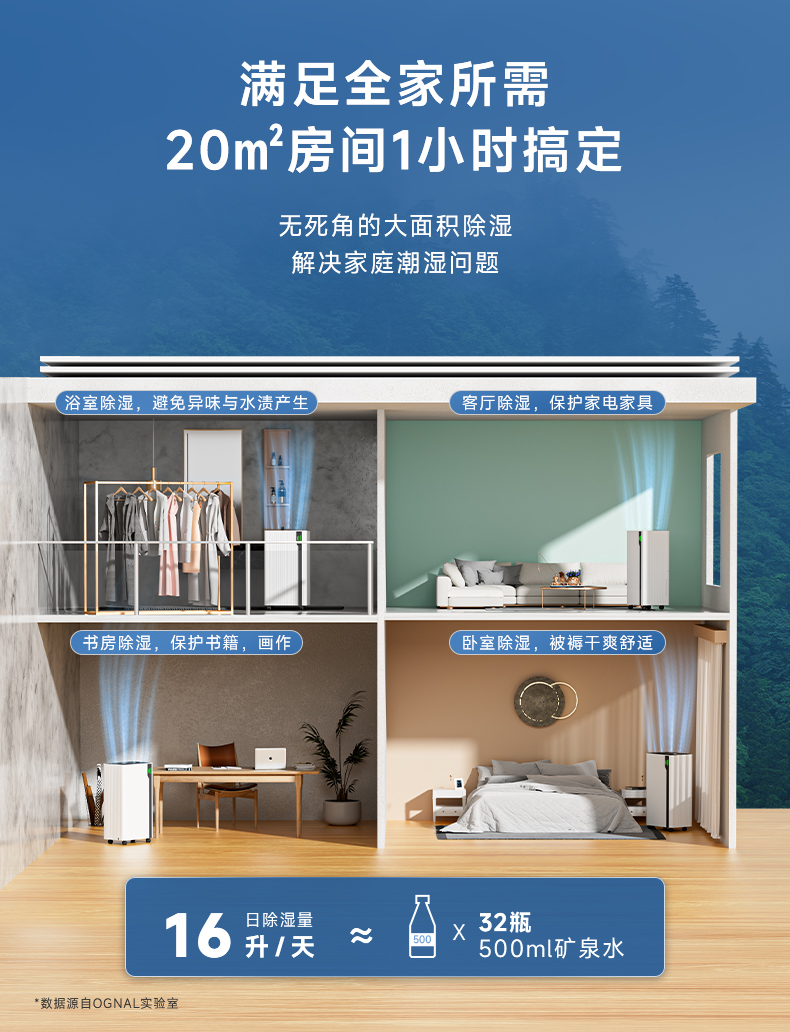 ognal奥戈那家用除湿机DC16-H43, 全屋型抽湿机 干燥轻音 回南天神器