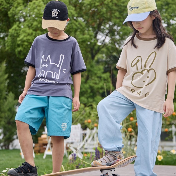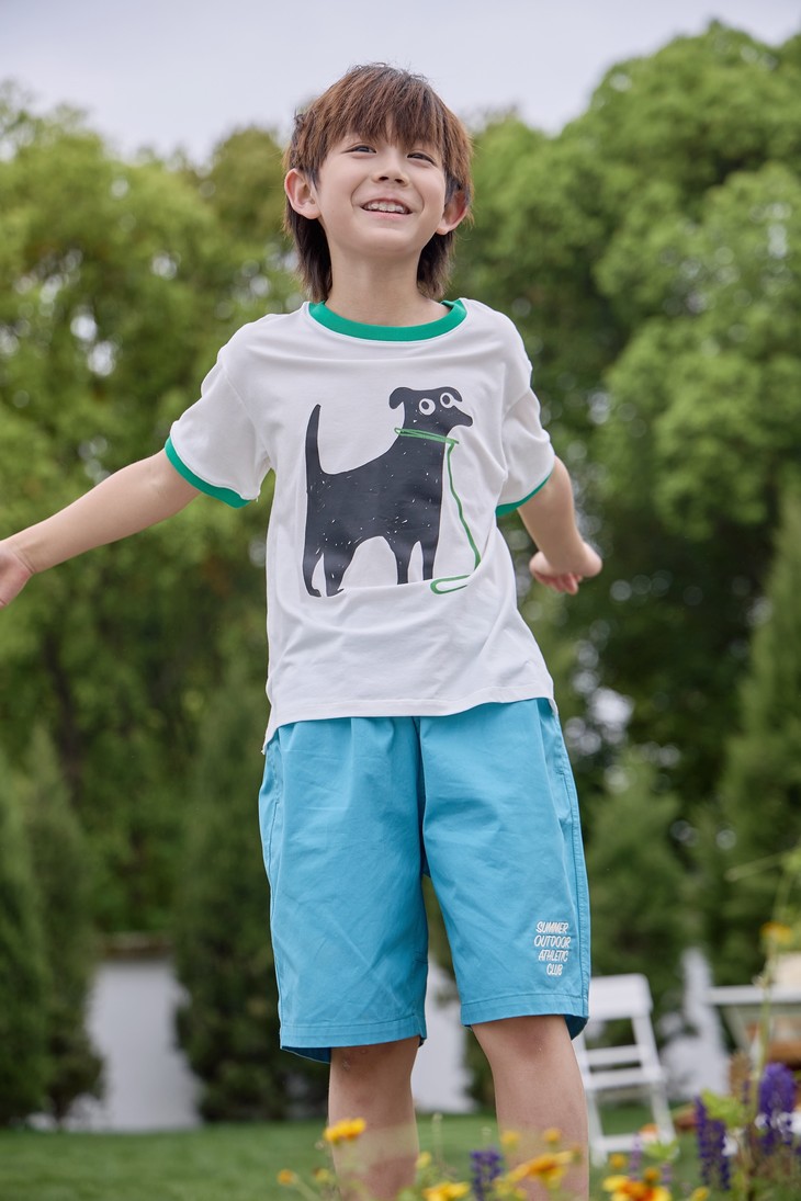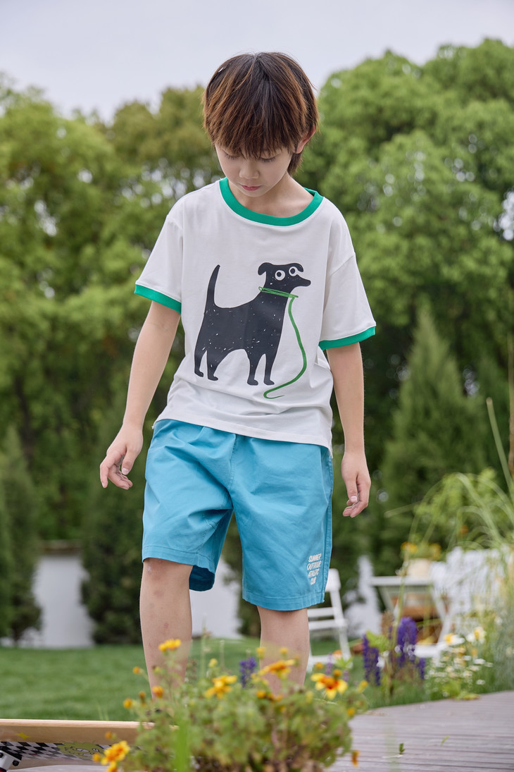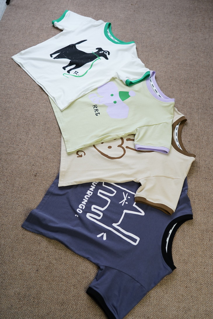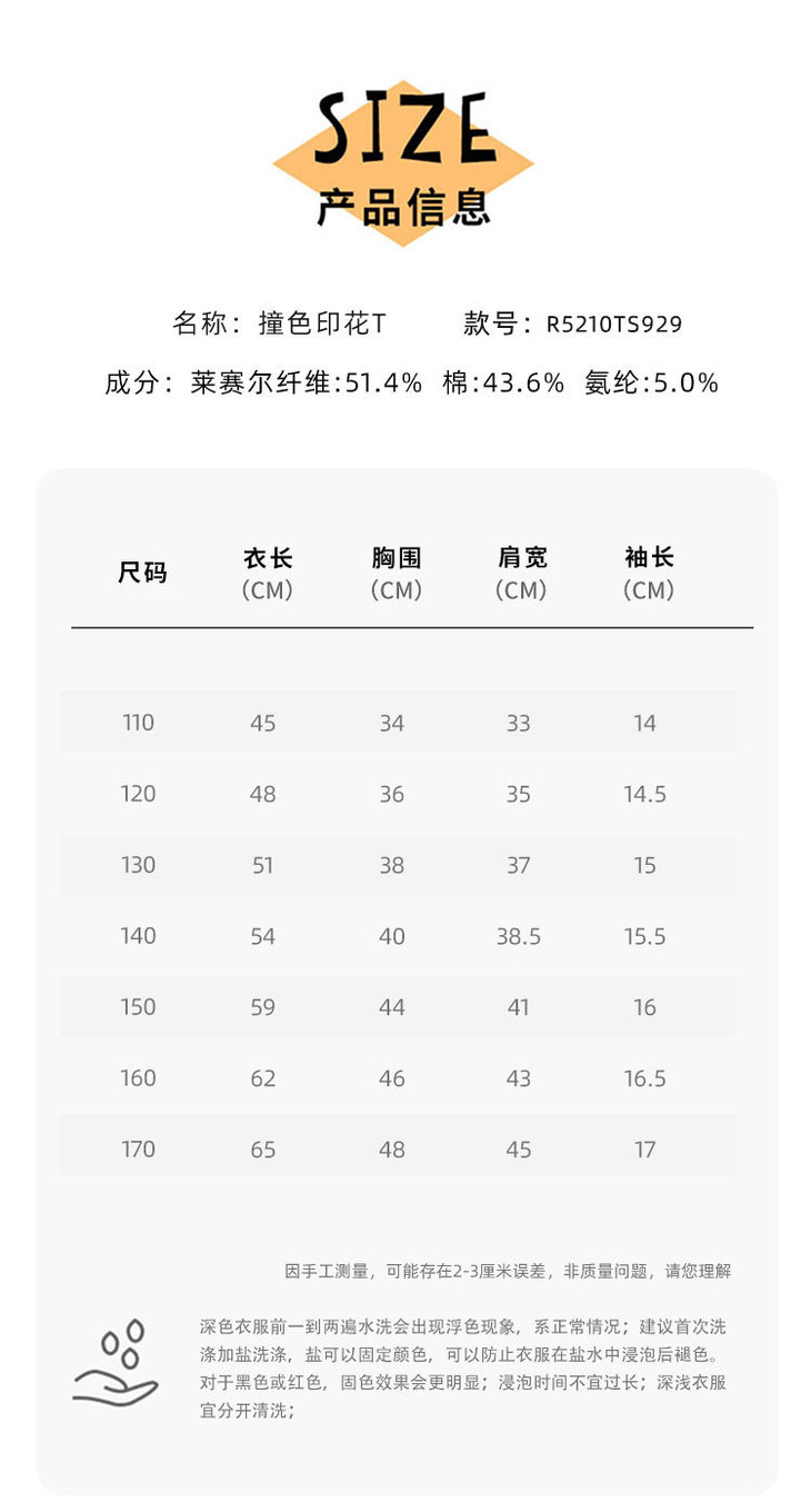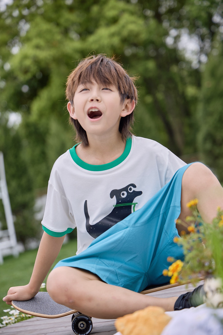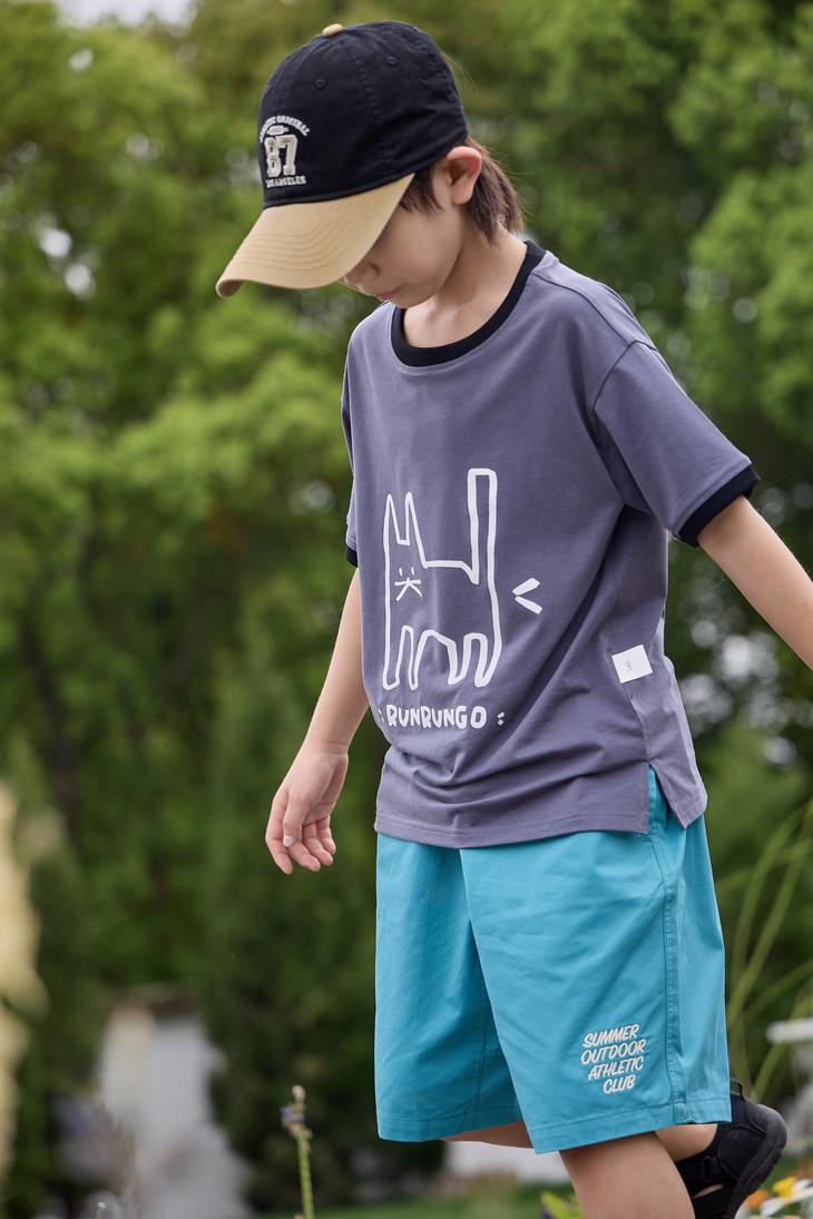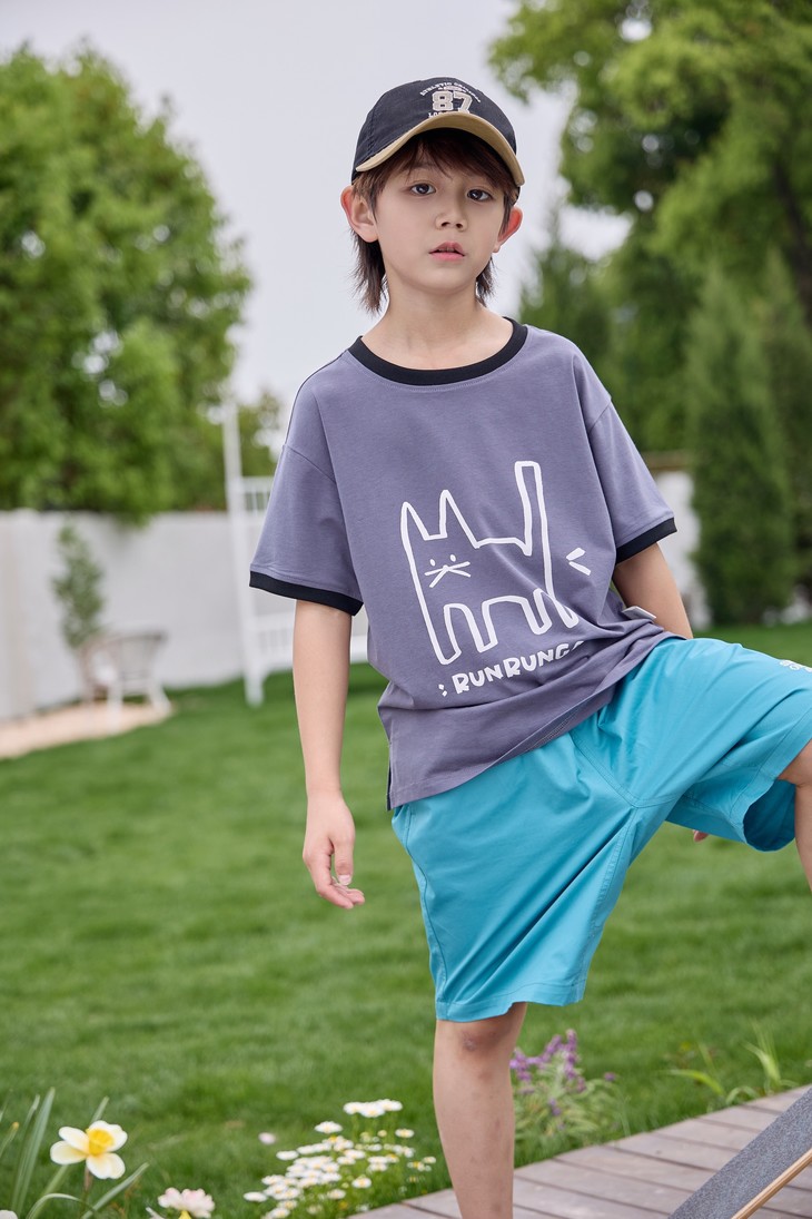 🔍在款式设计上,为了让一件t恤亮眼 在领、袖口做了萌趣撞色·更有元气活力 俏皮配色点亮童趣,活泼不显杂乱 品牌原创图案设计,运用线条+动物元素 宝贝一转头就是行走的小画报~