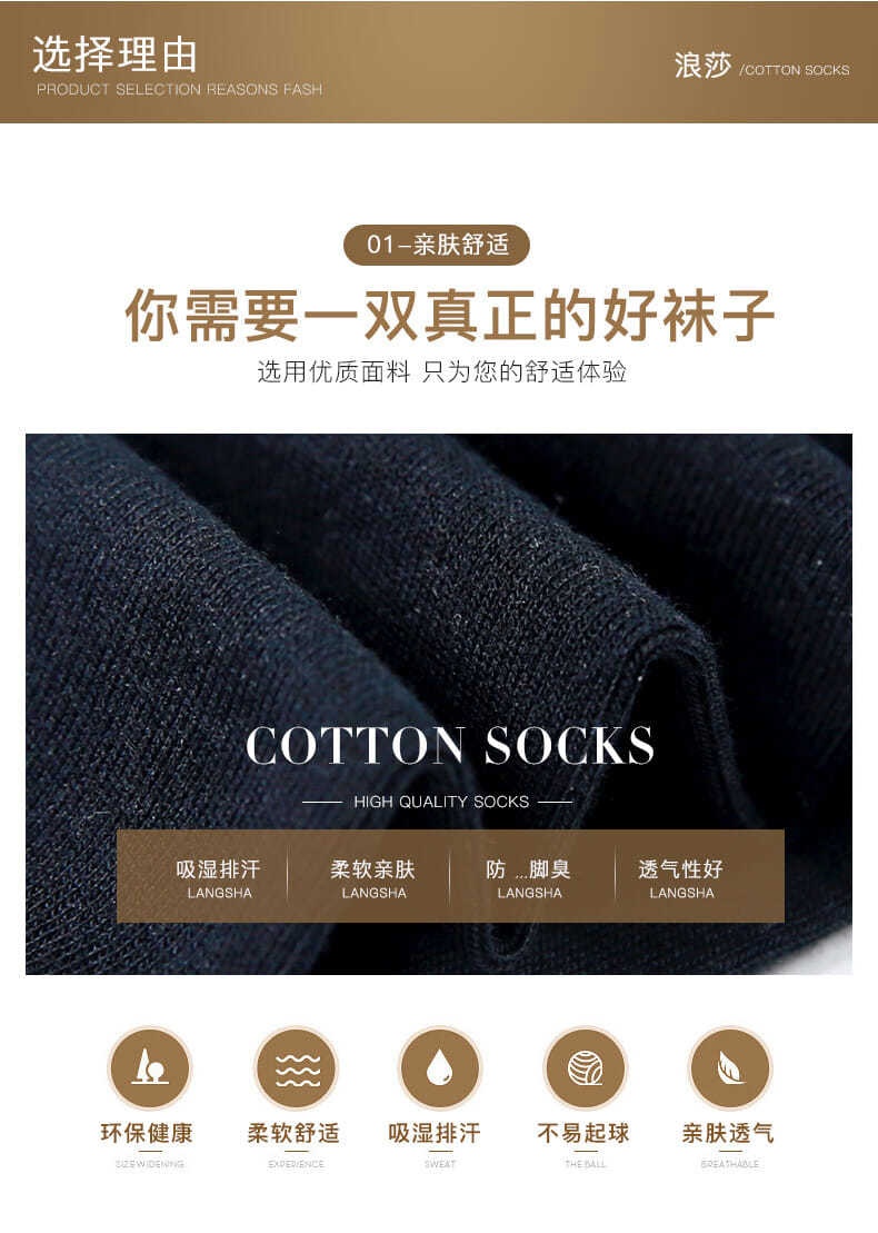 浪莎精梳棉四季男袜fc006-5 5双(颜色随机发)