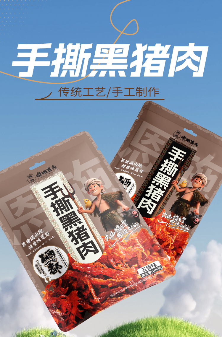 晓姚新品爆款丨手撕黑猪肉108g(五香、香辣)