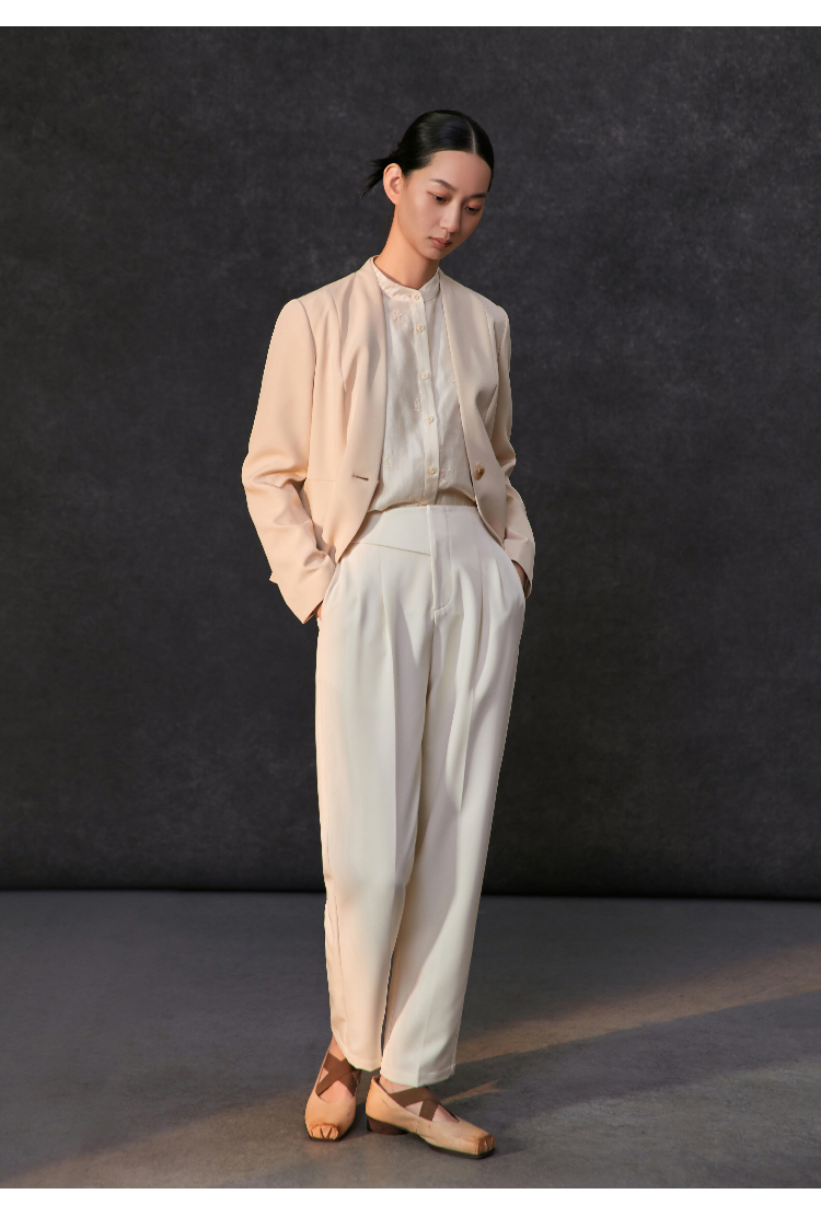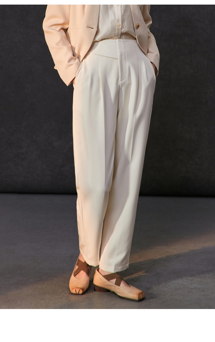 Famecoco范可儿优雅垂感TR直筒西装裤女士纯色长裤子