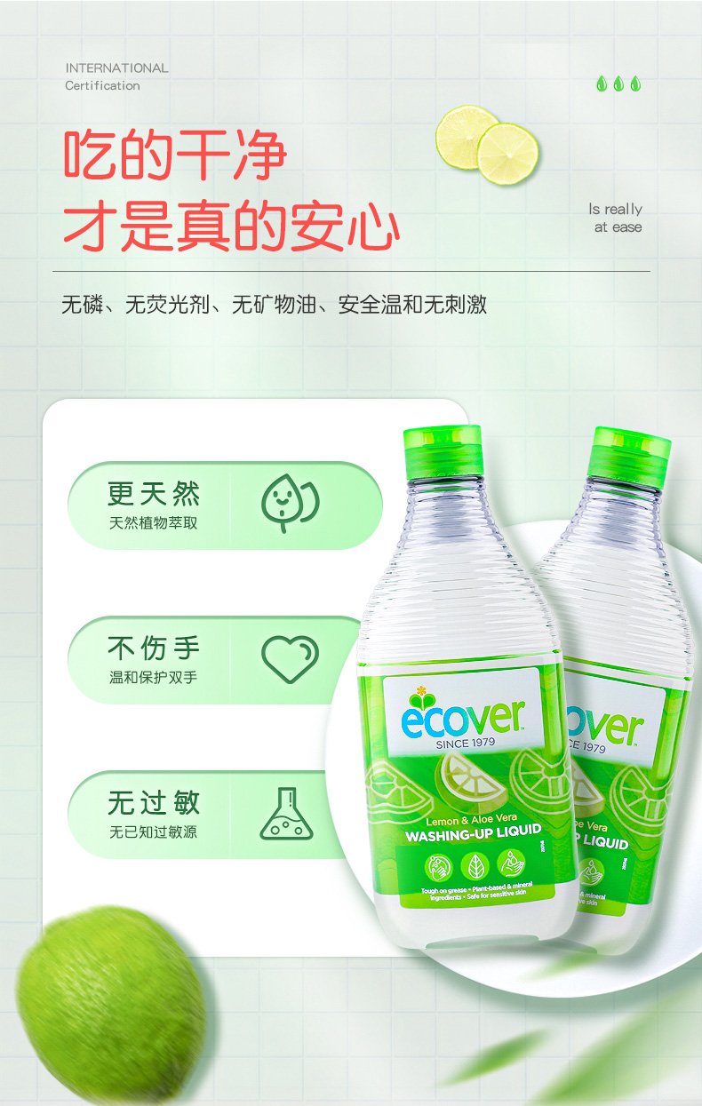 950ml*2瓶 欧维洁洗碗液柠檬芦荟香型【伊藤优选302209】