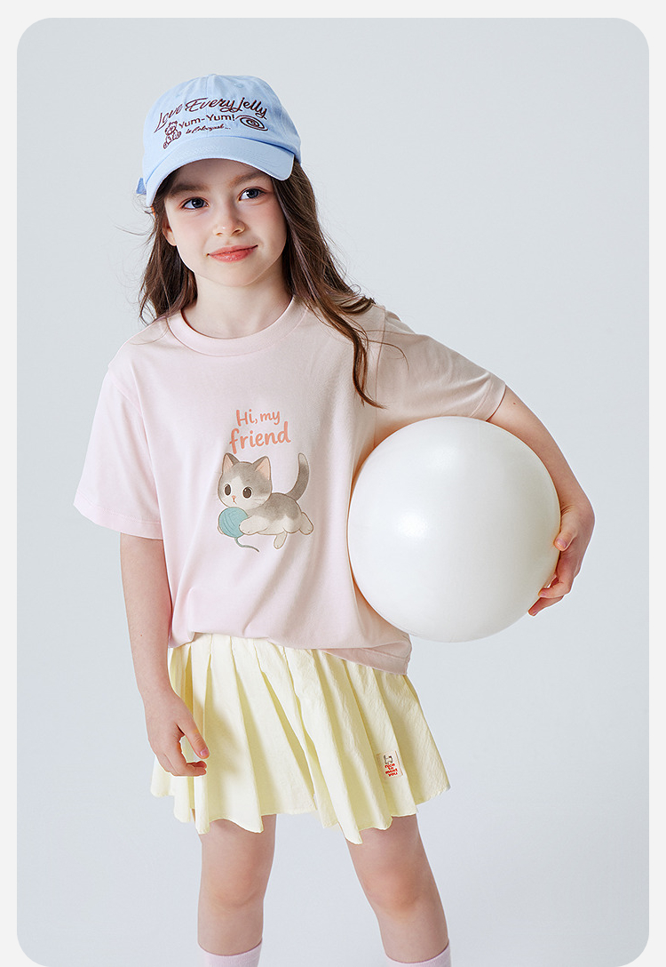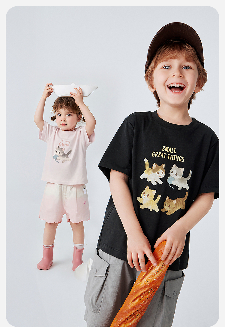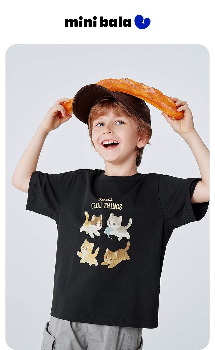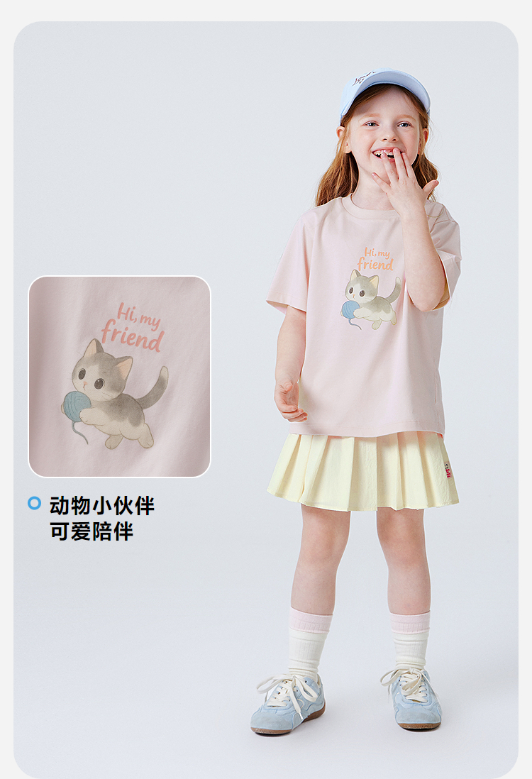 迷你巴拉巴拉宝宝短袖T恤速干凉感透气可爱小猫儿童上衣2026新款