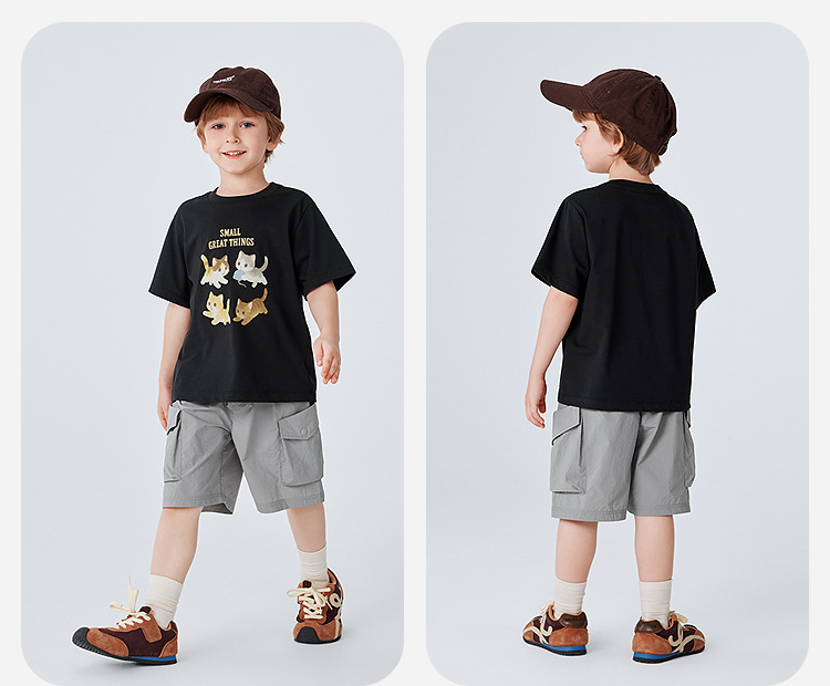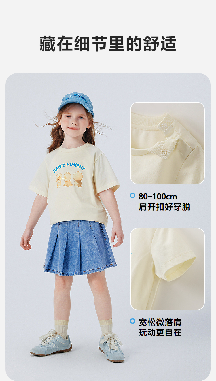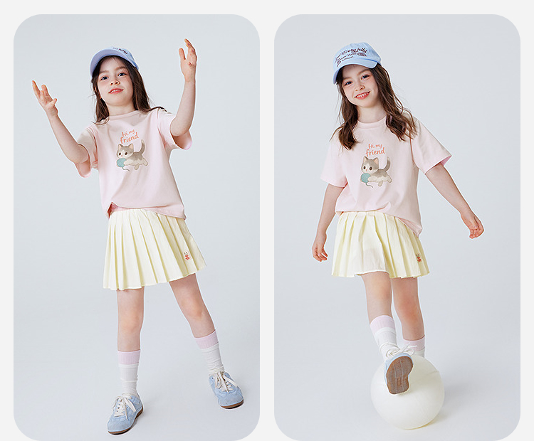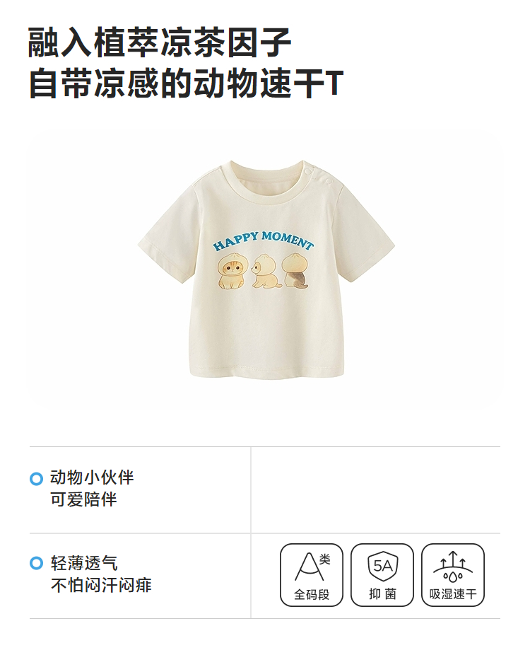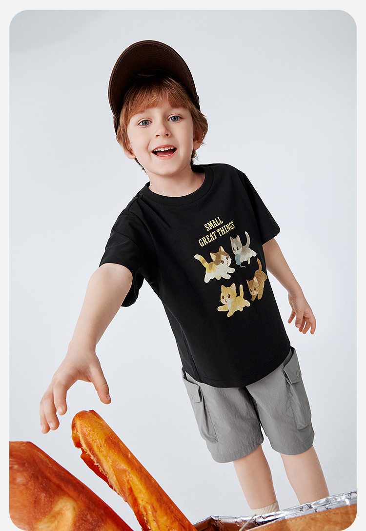 迷你巴拉巴拉宝宝短袖T恤速干凉感透气可爱小猫儿童上衣2026新款