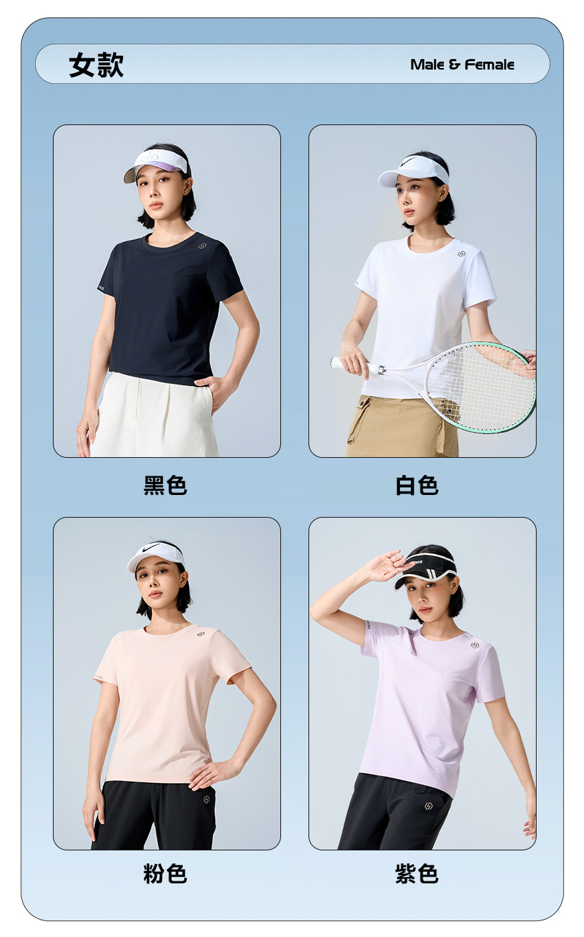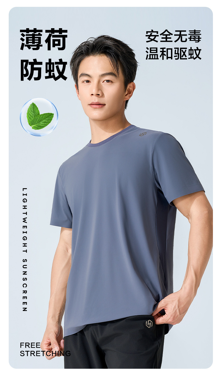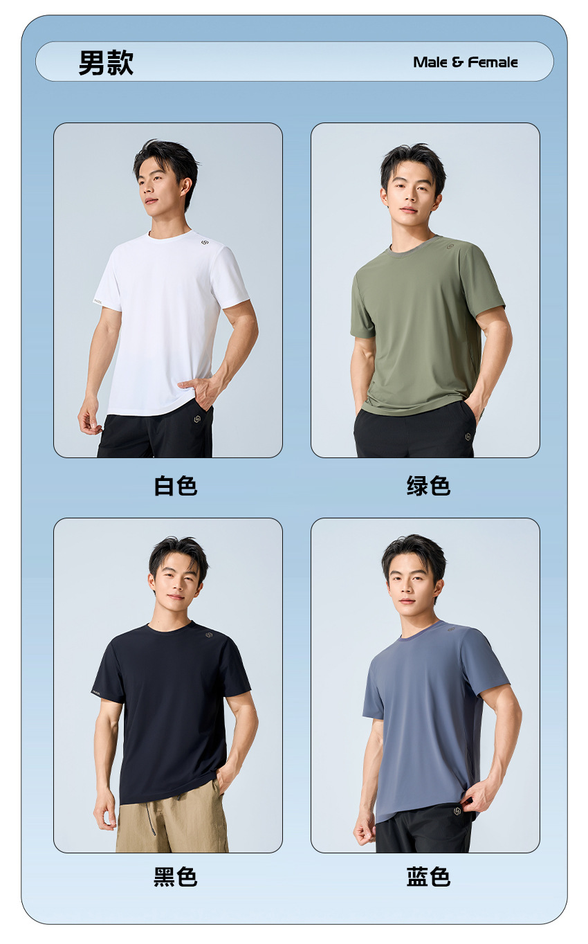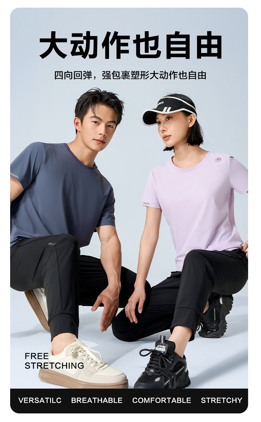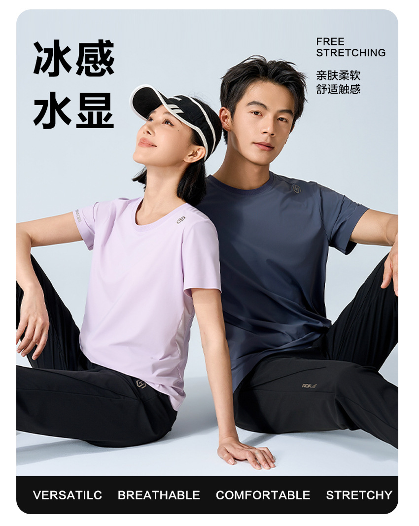 夏日冰感情侣款户外速干休闲运动套装 防晒防蚊抑菌轻薄凉感短袖T恤+长裤
