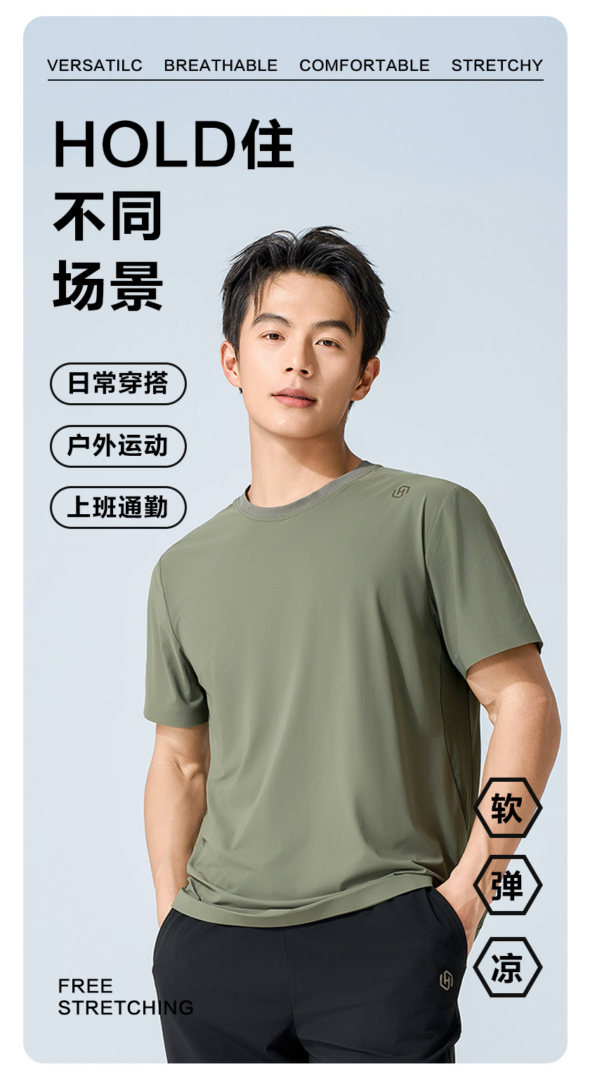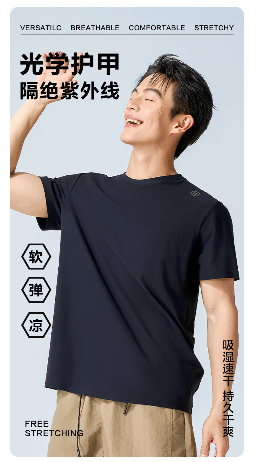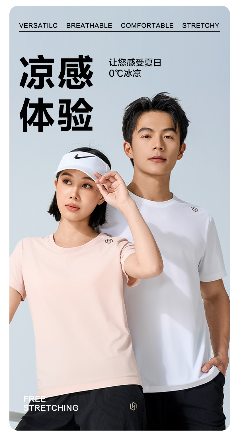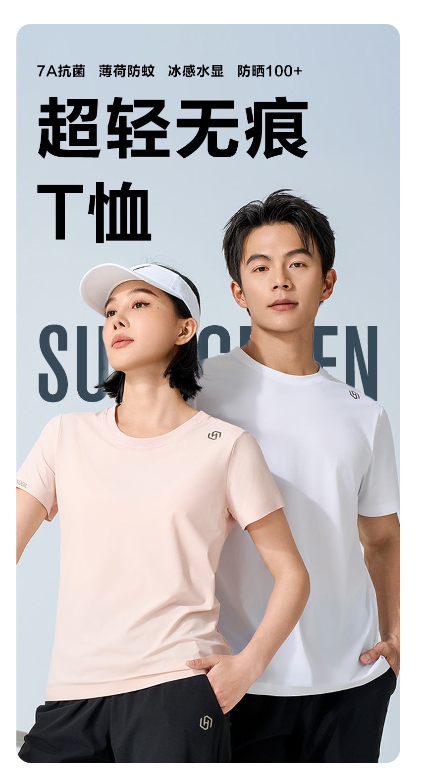 夏日冰感情侣款户外速干休闲运动套装 防晒防蚊抑菌轻薄凉感短袖T恤+长裤
