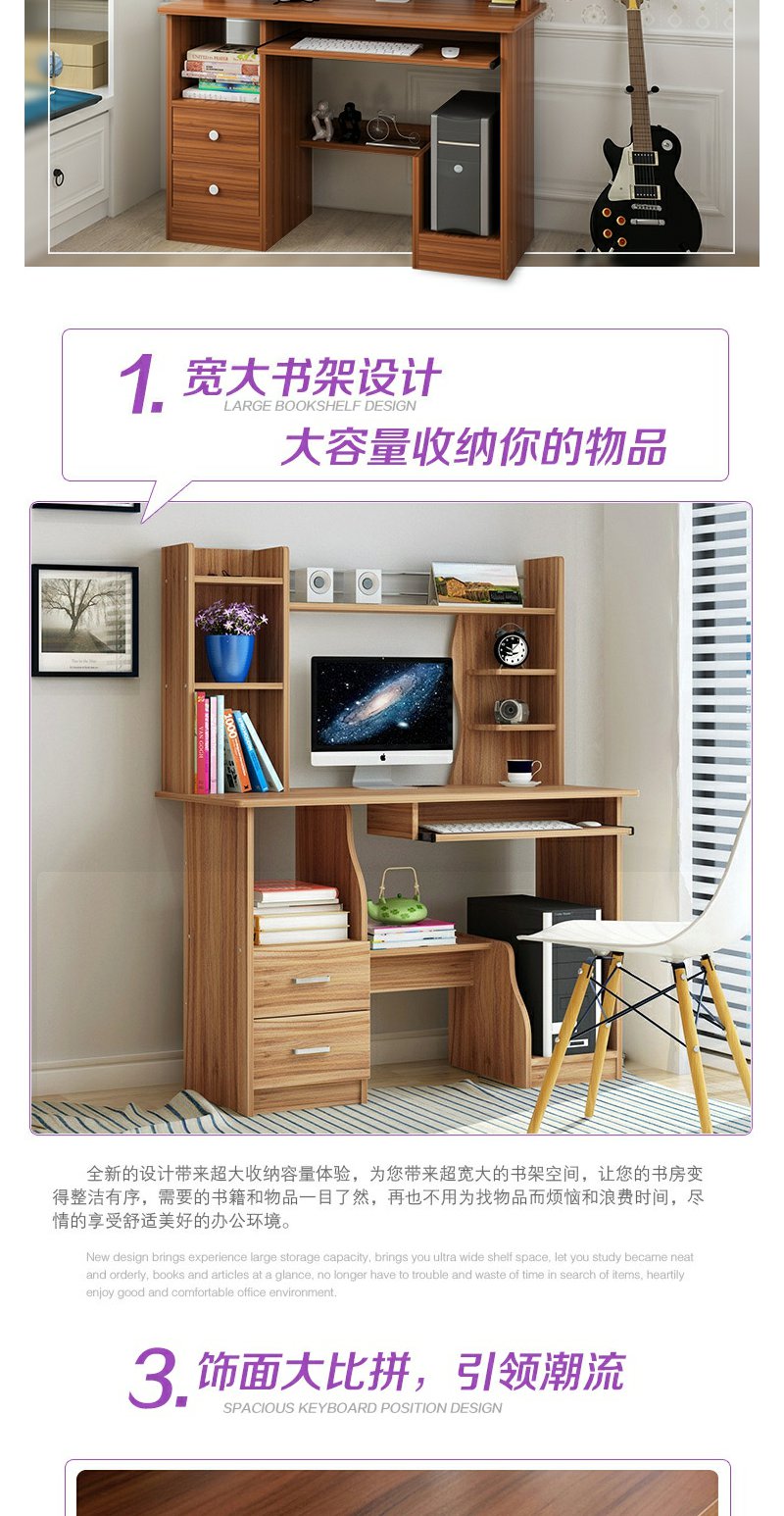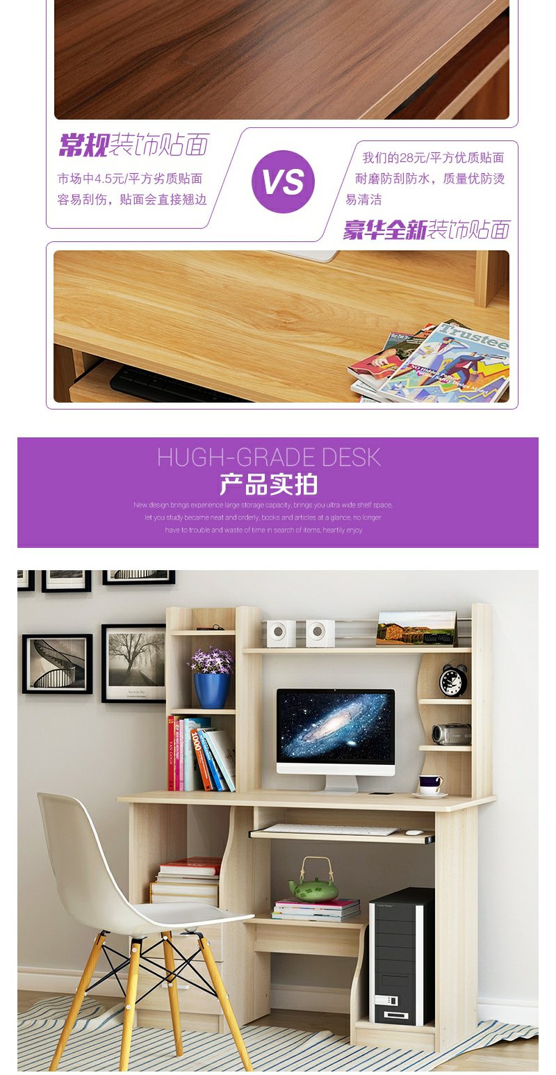 卧室电脑桌带书架一体组合多功能家用台式书桌中学生小孩写字桌子