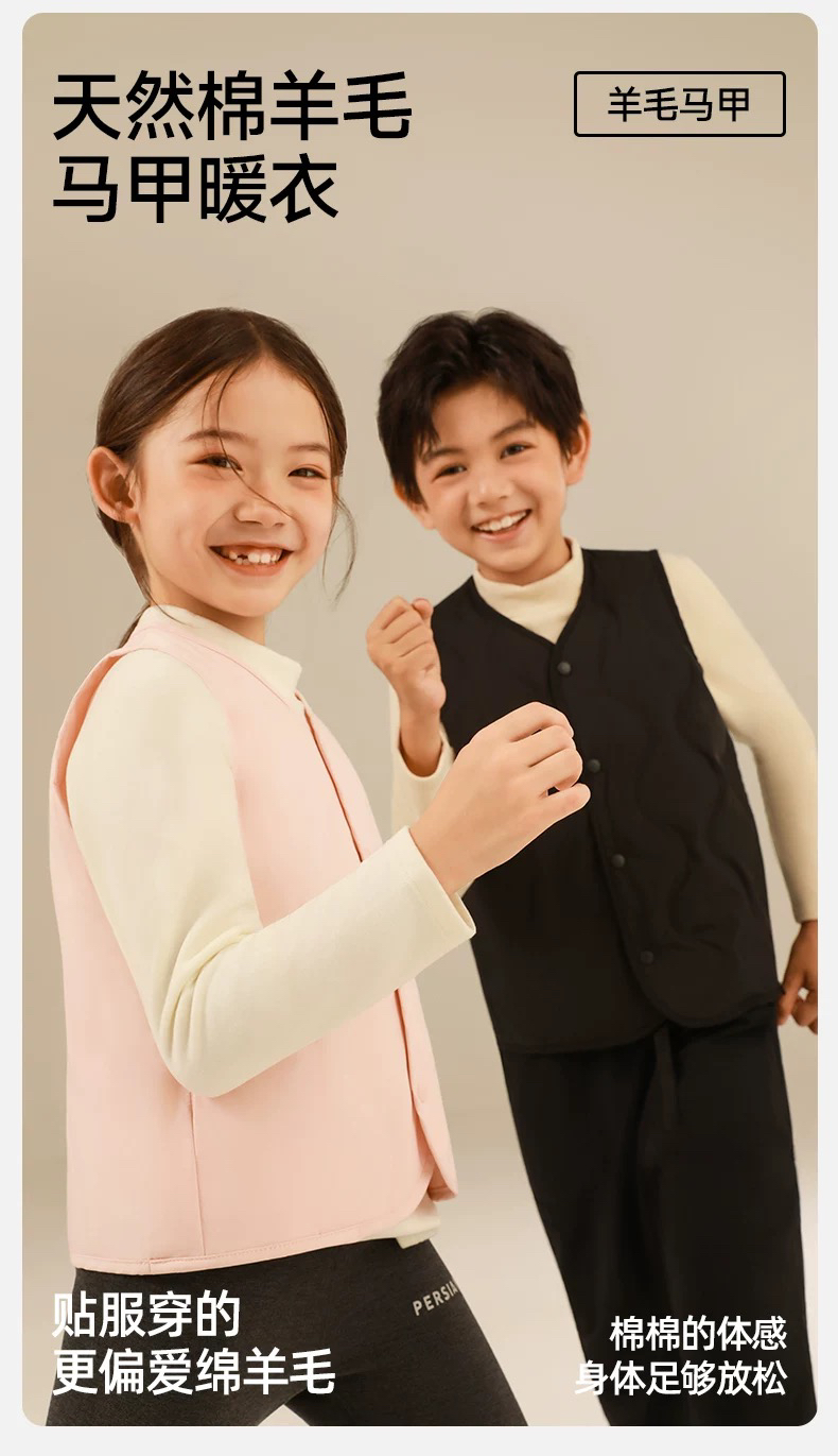 羊毛无痕儿童羊毛背心马甲2026新款羊毛保暖男女童内外穿加厚上衣坎肩