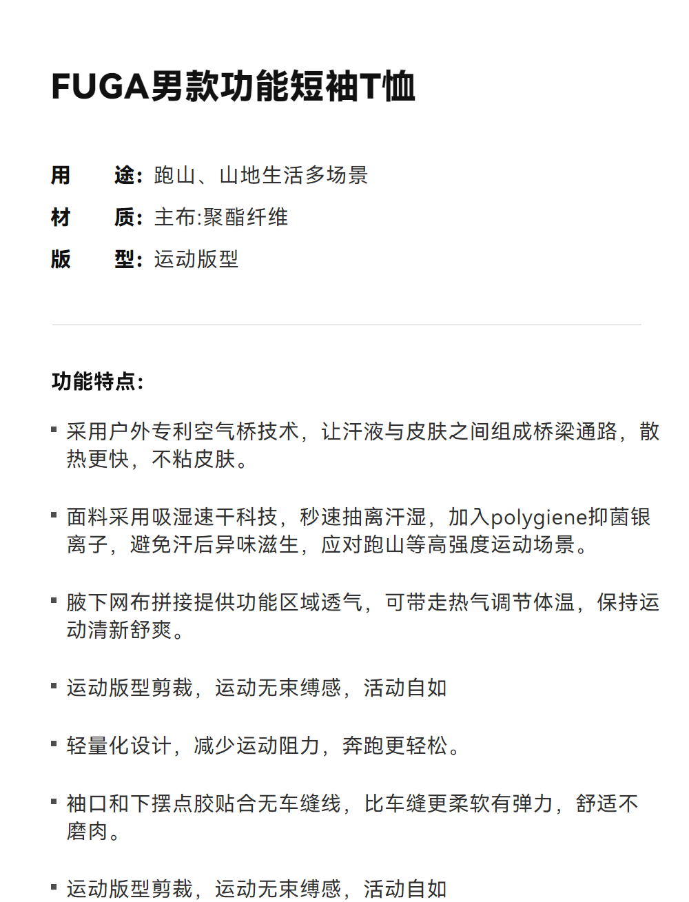 KAILAS凯乐石 FUGA男款功能短袖T恤 KG2517118【Z】