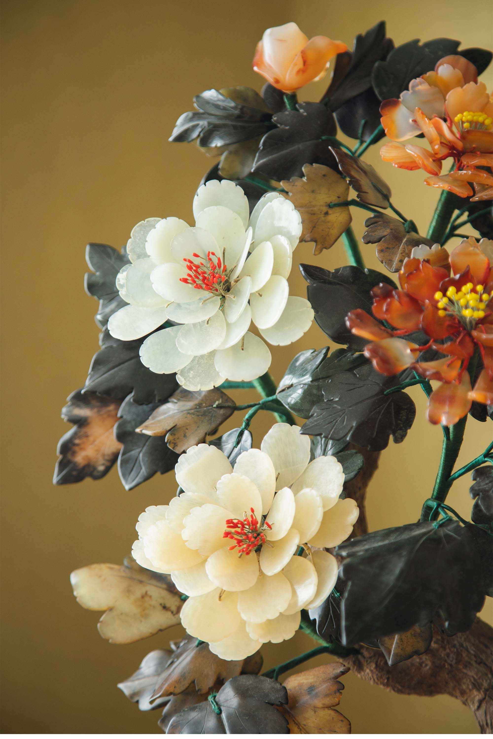 20世纪中国创汇时期出品传统花卉纹景泰蓝盆装饰「富贵牡丹」珍宝像生盆景