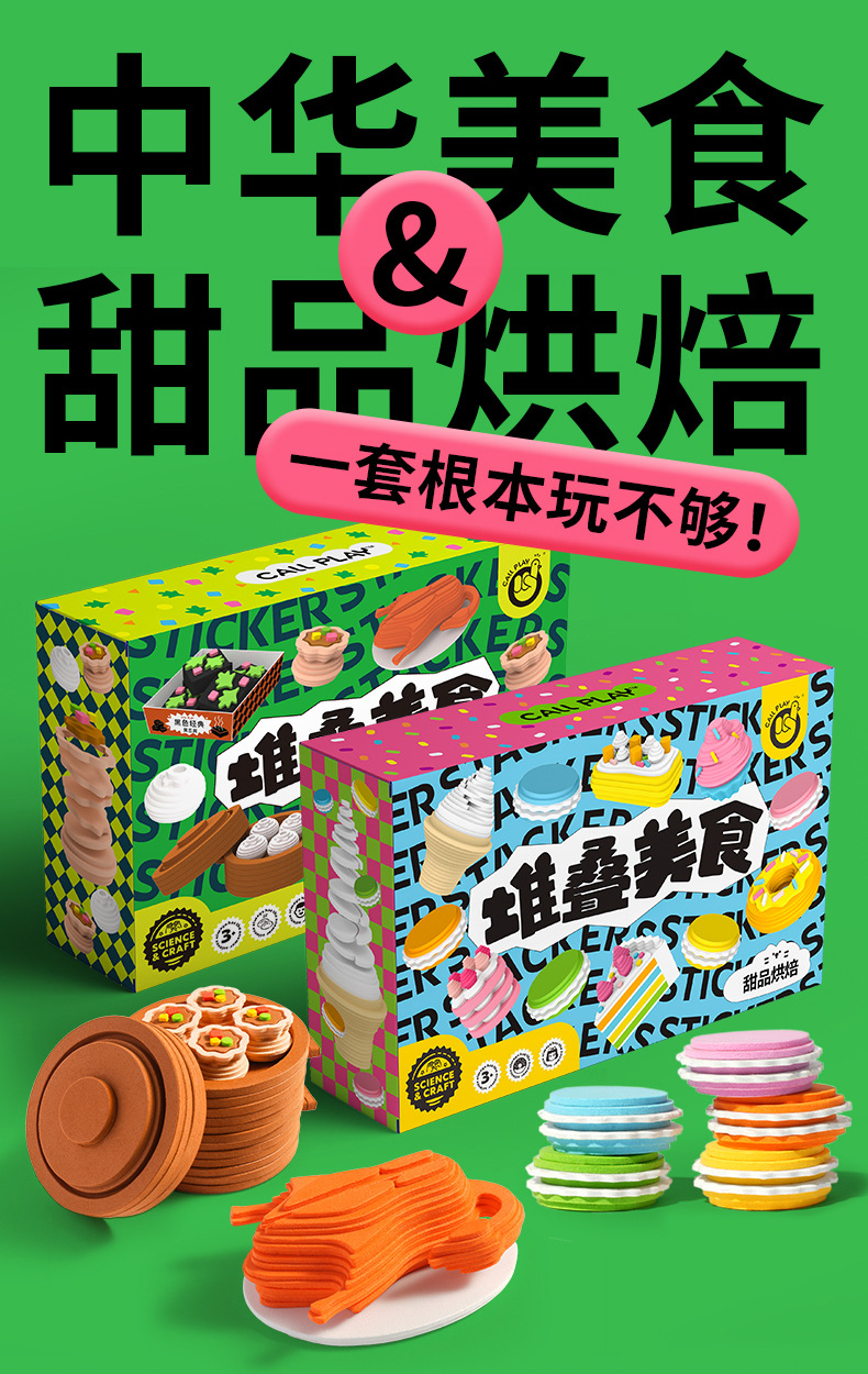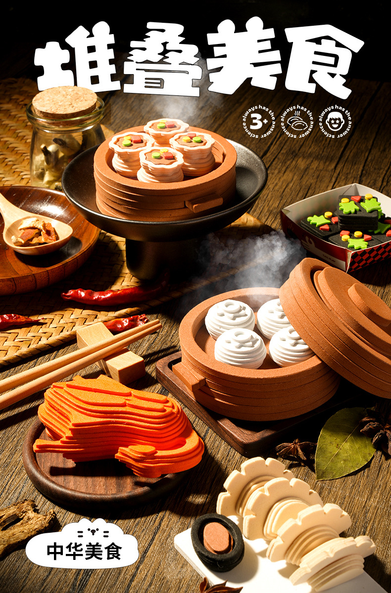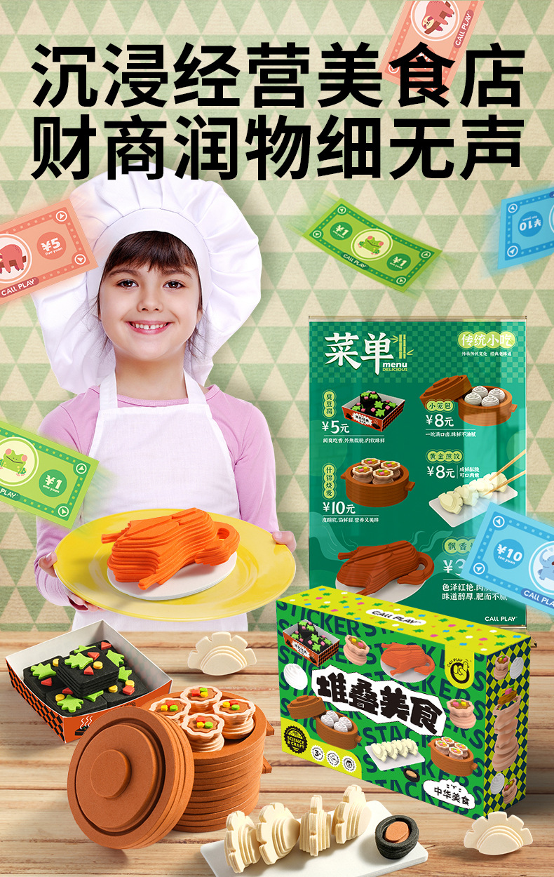 Callplay科答鸭堆叠美食蒸笼包子甜品儿童仿真食物过家家厨房玩具