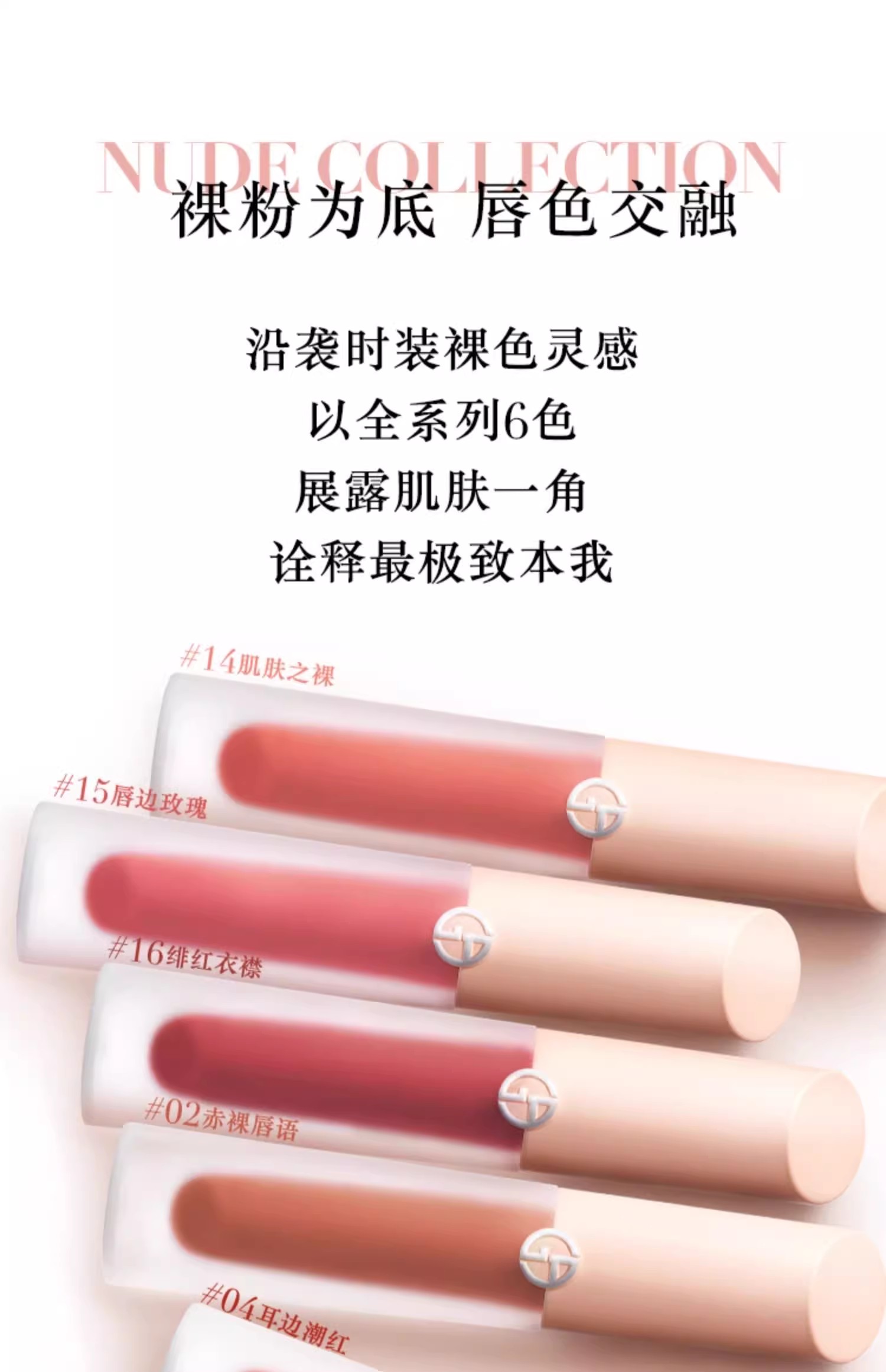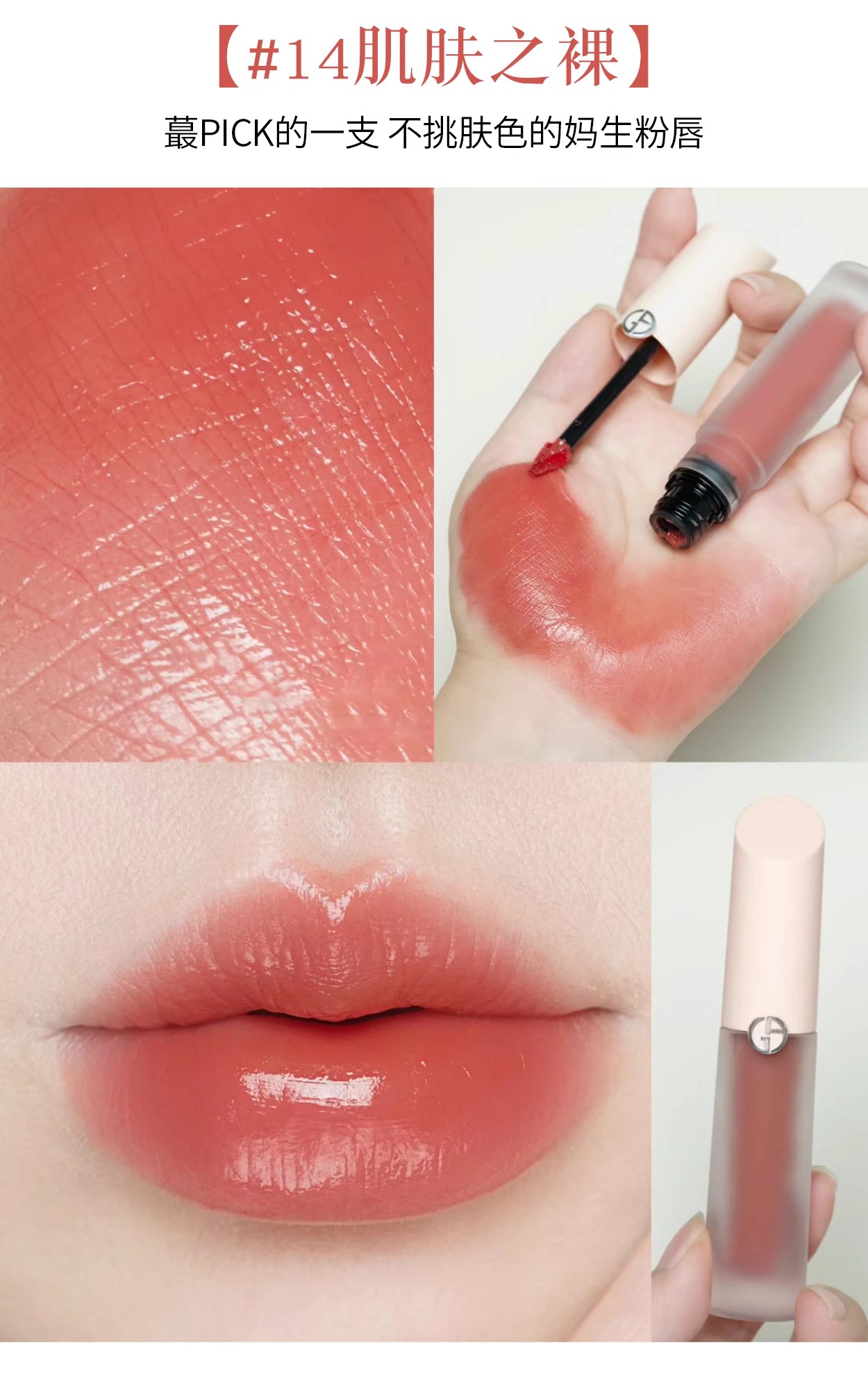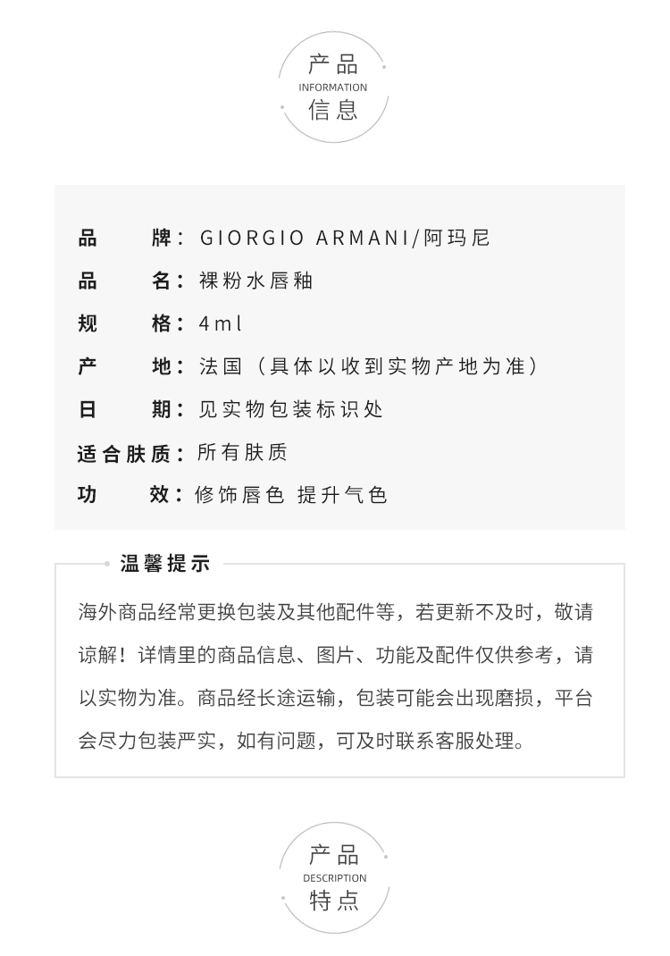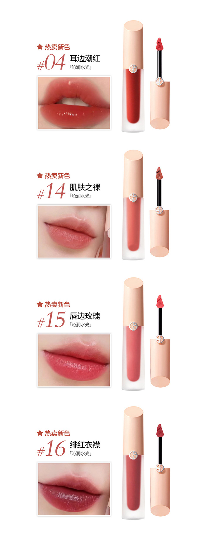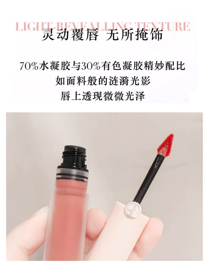 阿玛尼裸粉水唇釉小粉盖显白保湿易上色#14肌肤之裸 #15 唇边玫瑰#16 绯红衣襟【CDF】