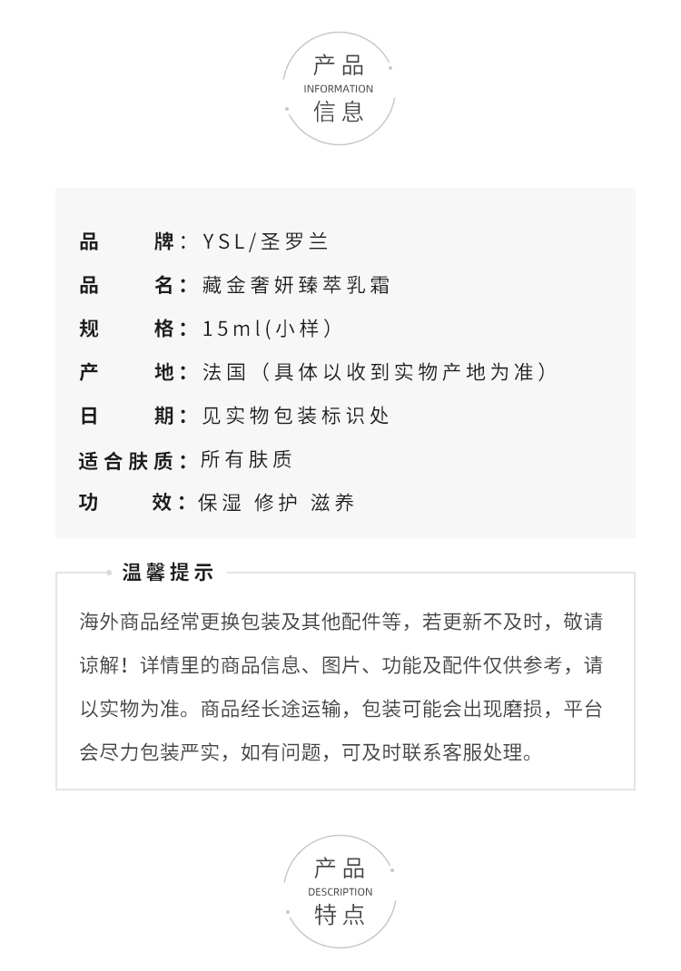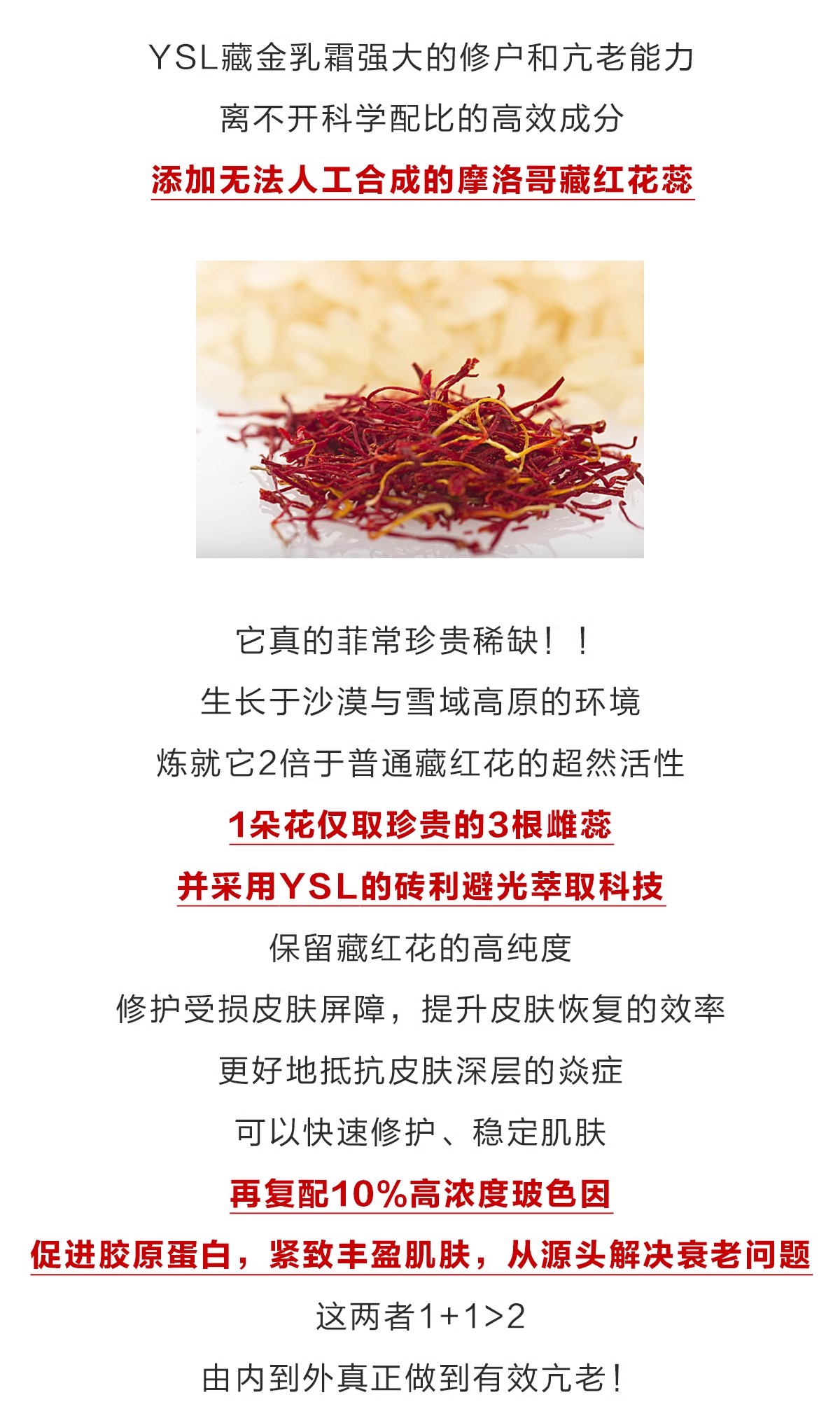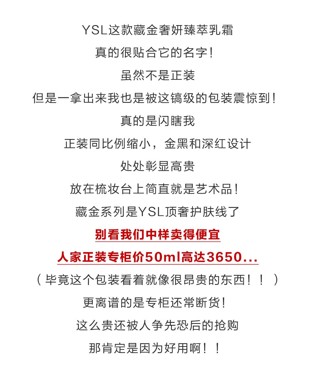 养出贵妇感!YSL圣罗兰藏金面霜15ml中样藏红花蕊补水保湿滋润