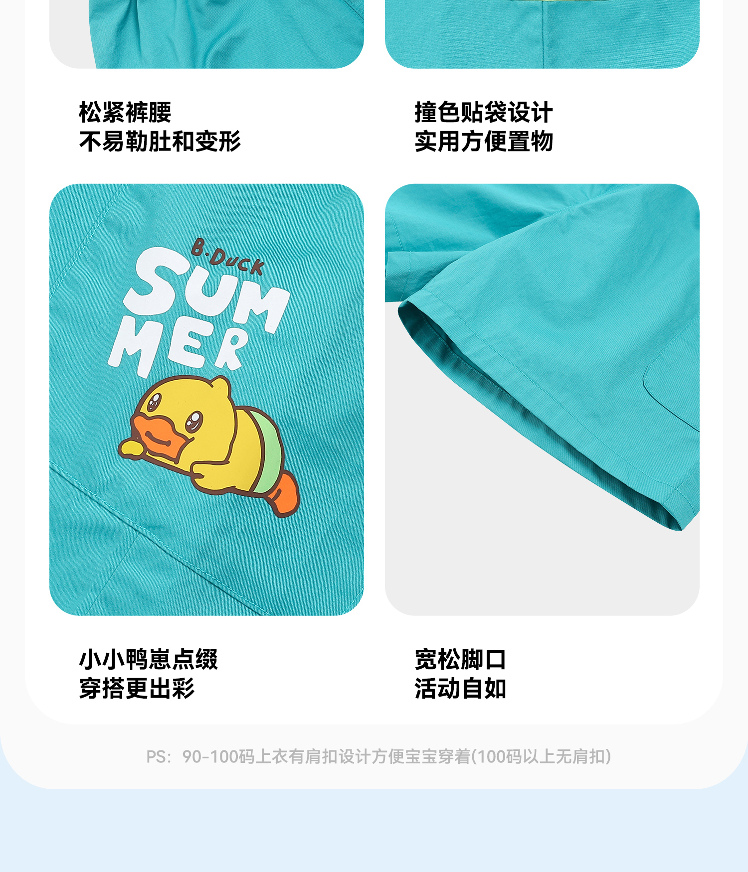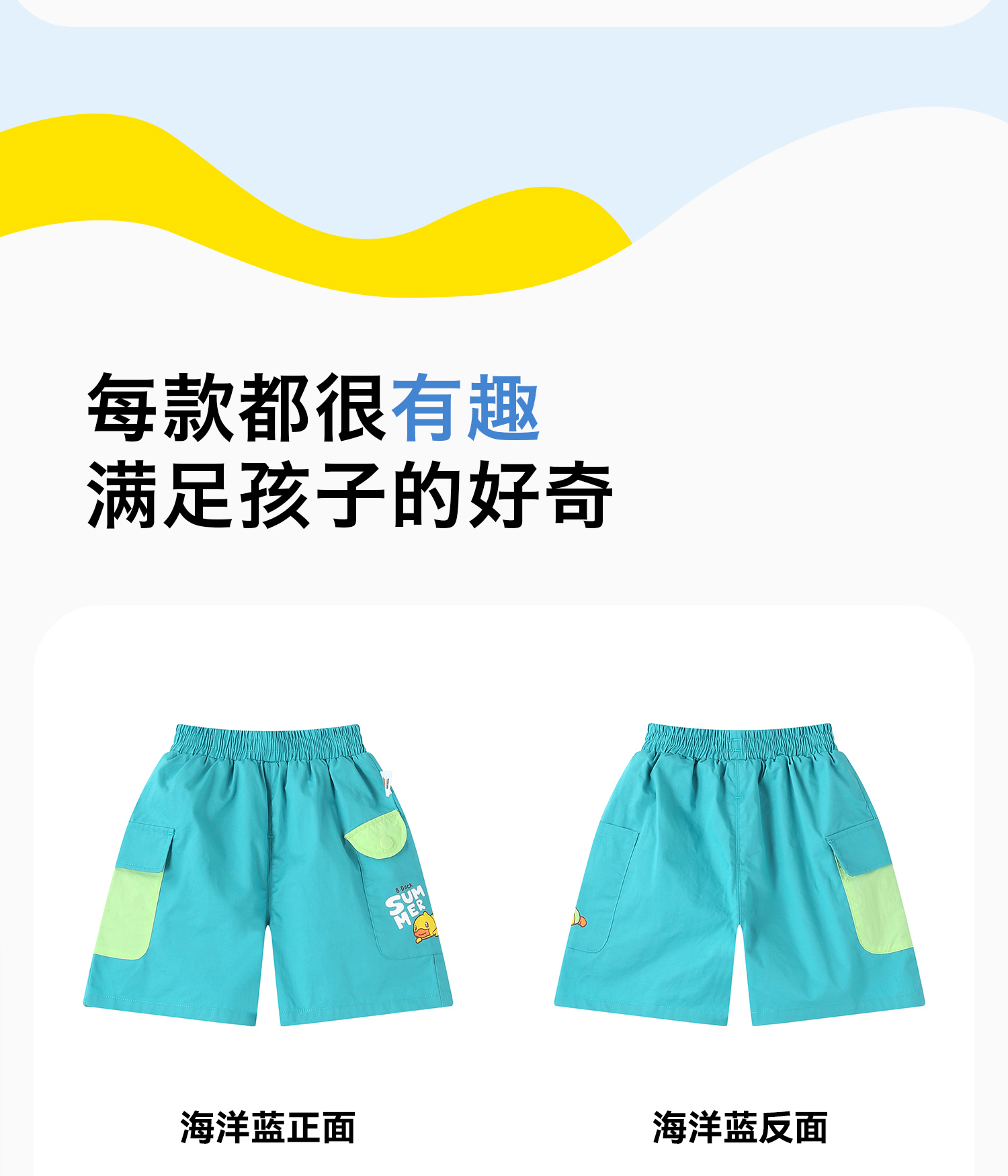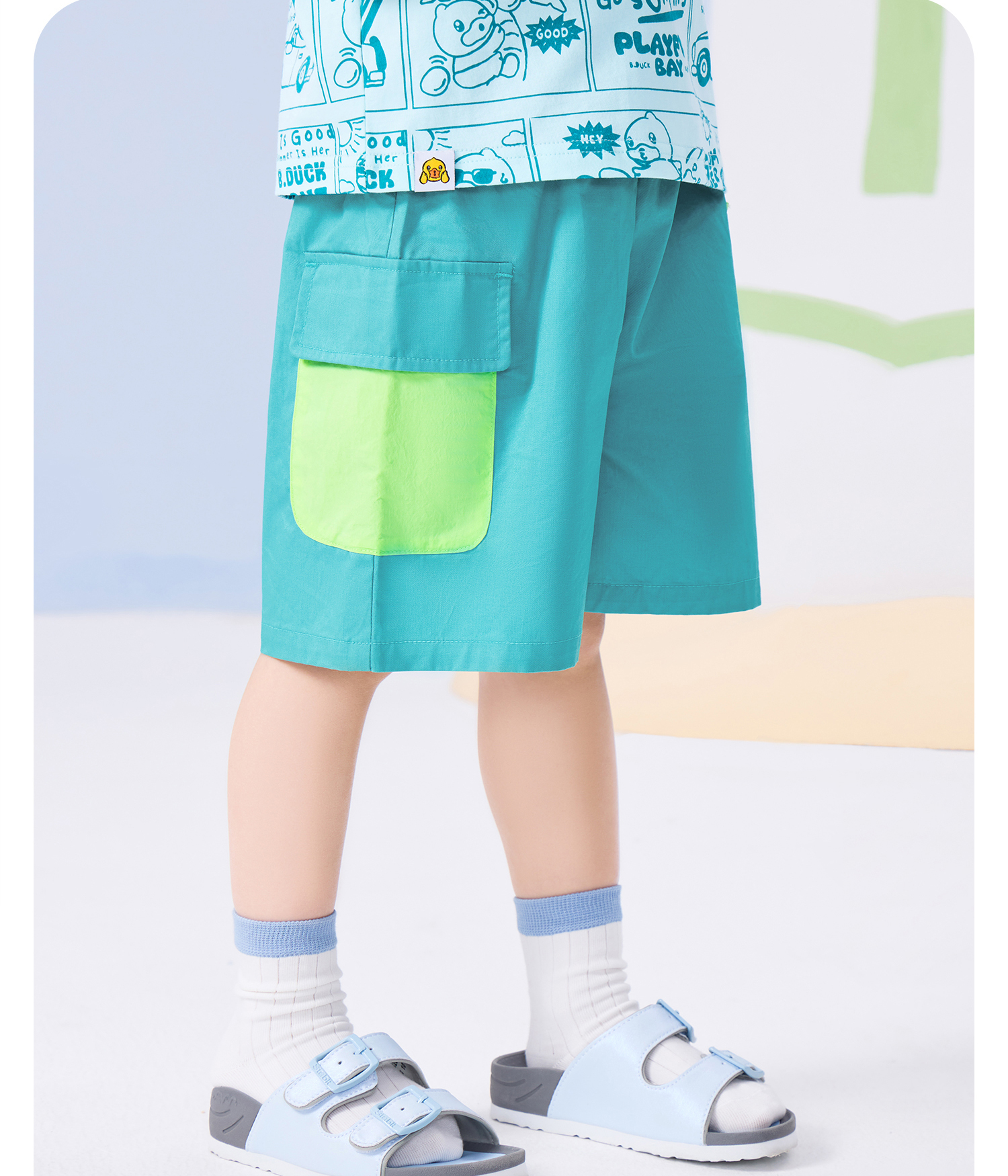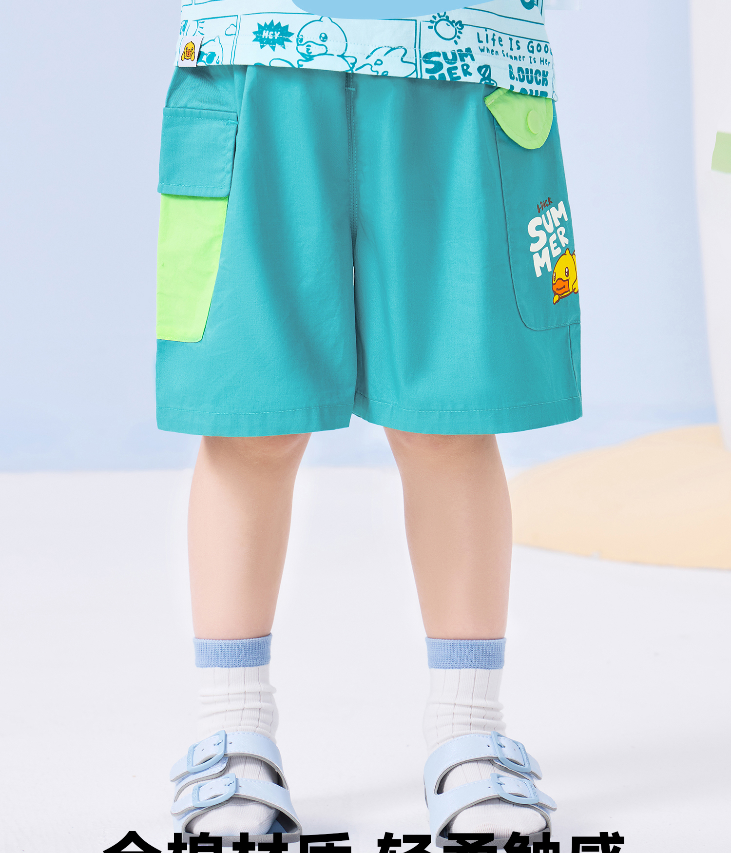 bduck小黄鸭童装夏季宝宝短裤男童五分裤纯棉夏装工装裤儿童运动裤子90-130 BF2652019