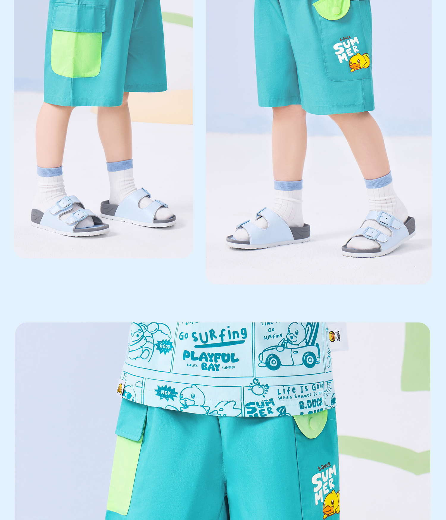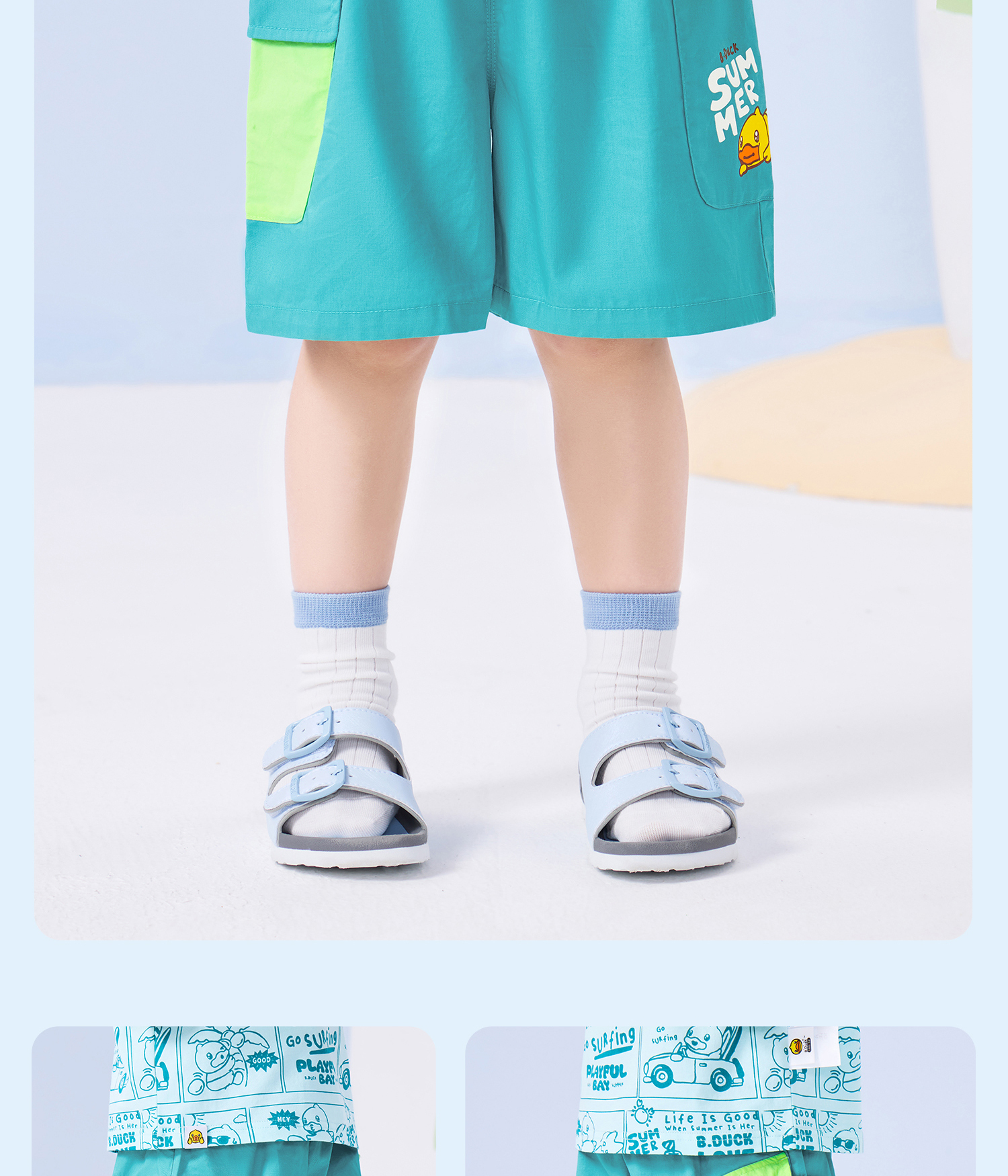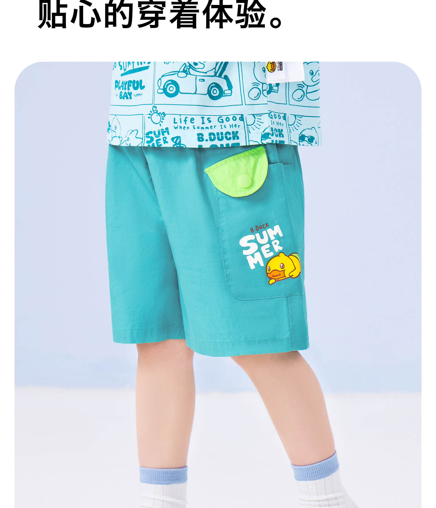 bduck小黄鸭童装夏季宝宝短裤男童五分裤纯棉夏装工装裤儿童运动裤子90-130 BF2652019