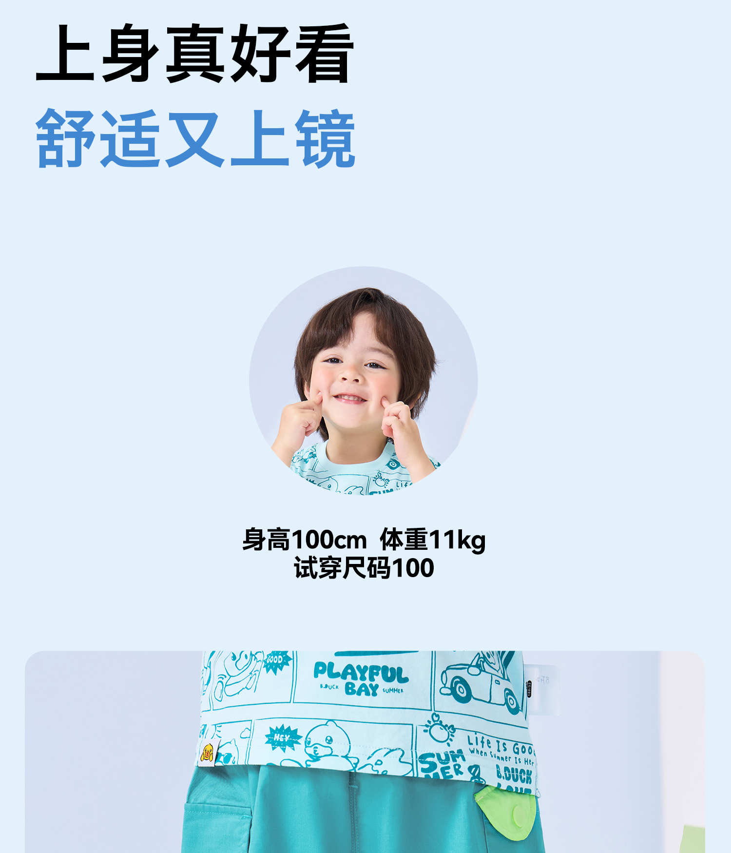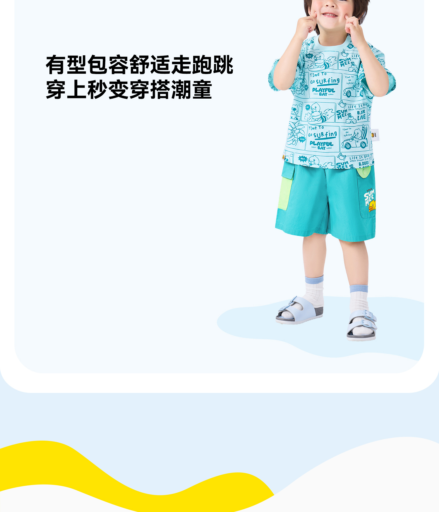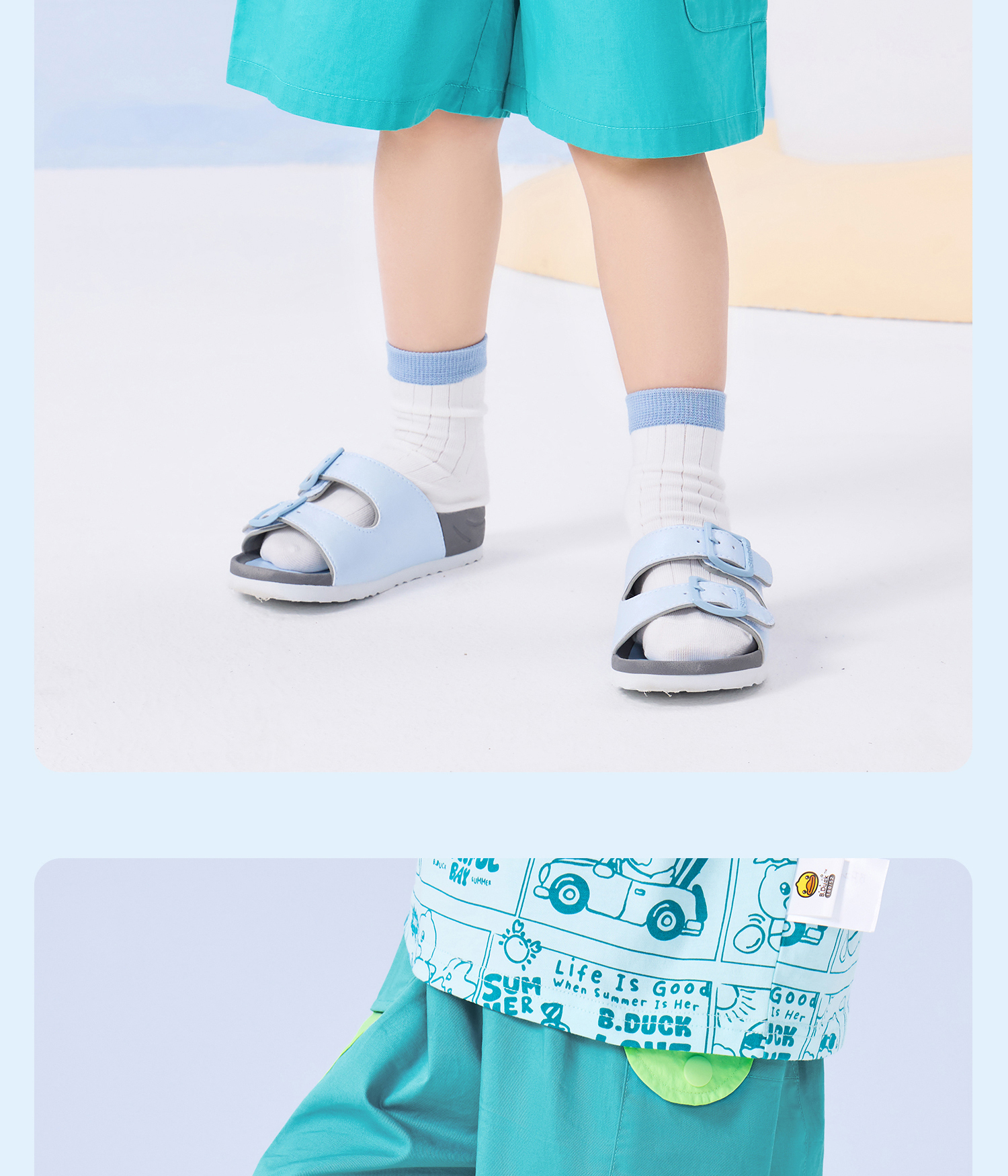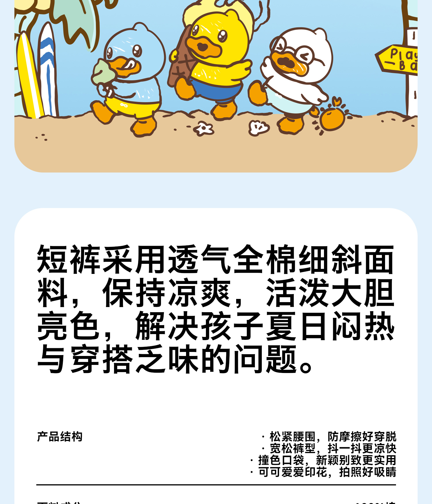 bduck小黄鸭童装夏季宝宝短裤男童五分裤纯棉夏装工装裤儿童运动裤子90-130 BF2652019