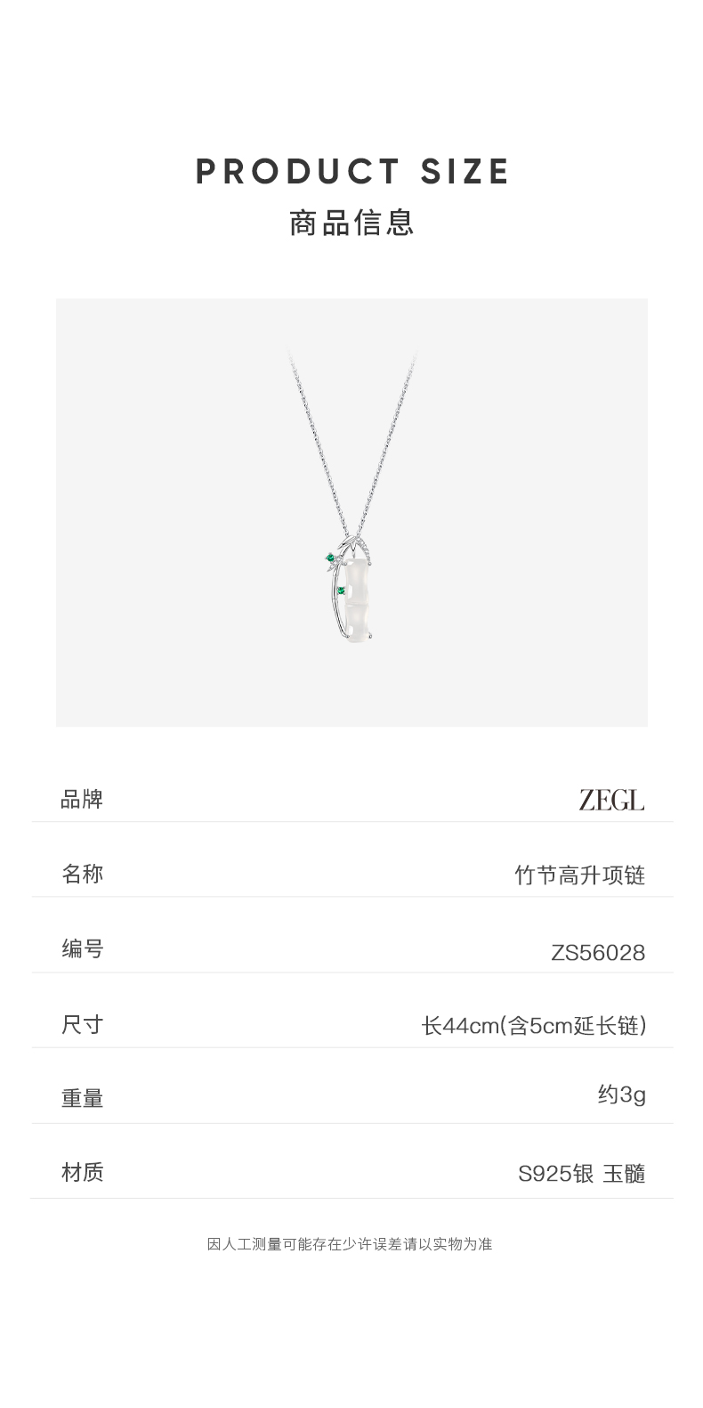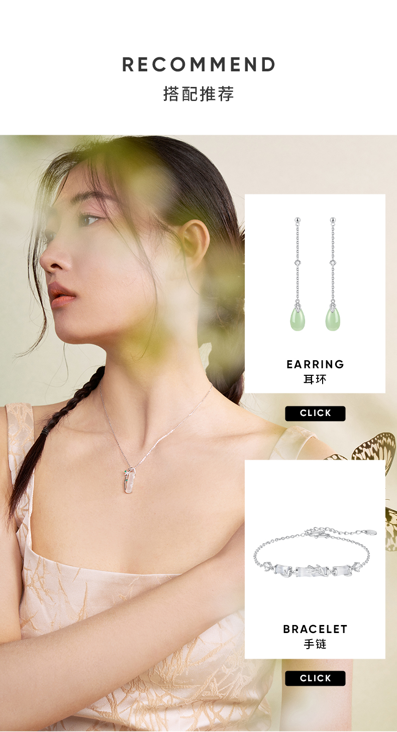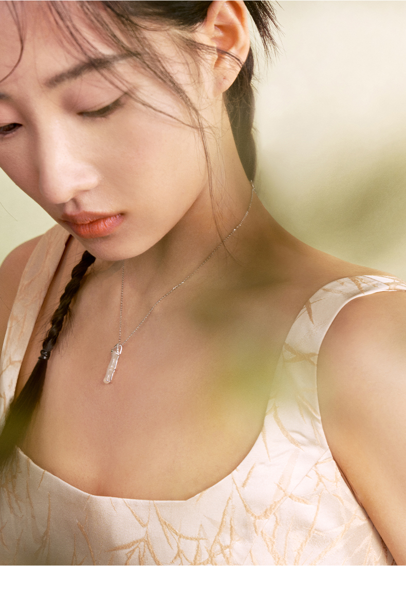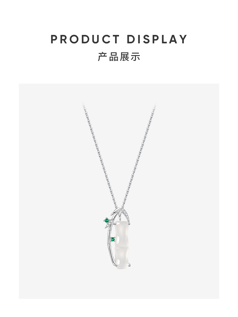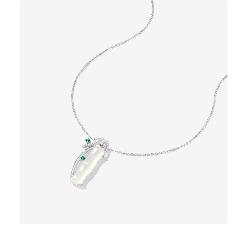 ZEGL925银竹节项链女款2024新款玉髓吊坠新中式锁骨链高级感饰品