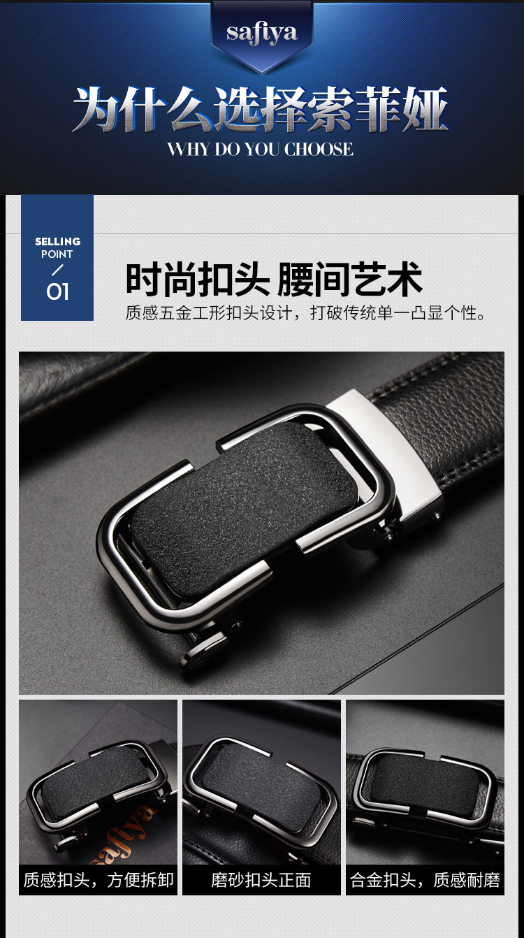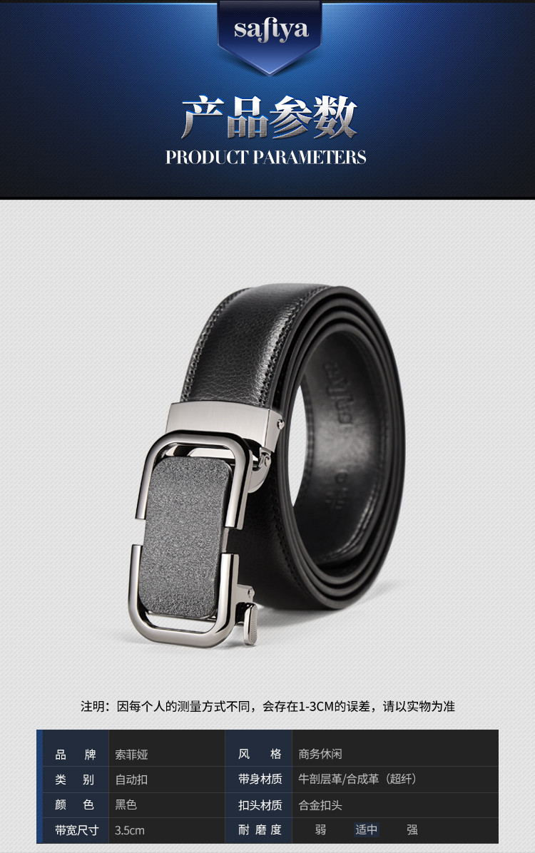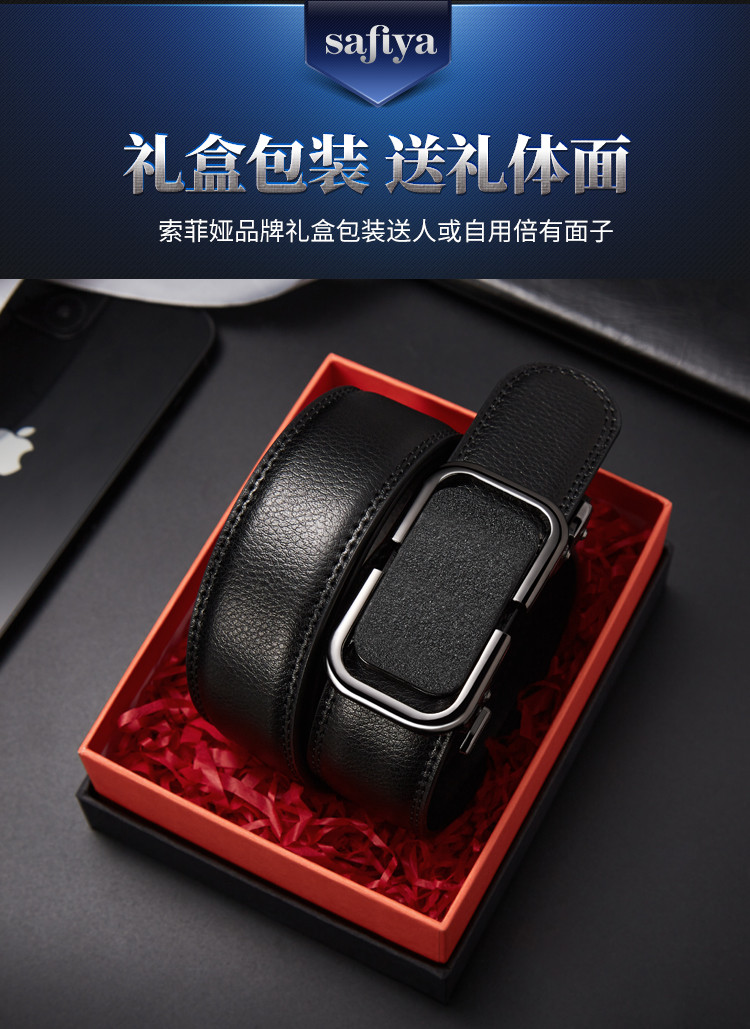 Safiya/索菲娅 二层牛皮2023新款男士皮带自动扣腰带简约百搭腰带SF500020Y