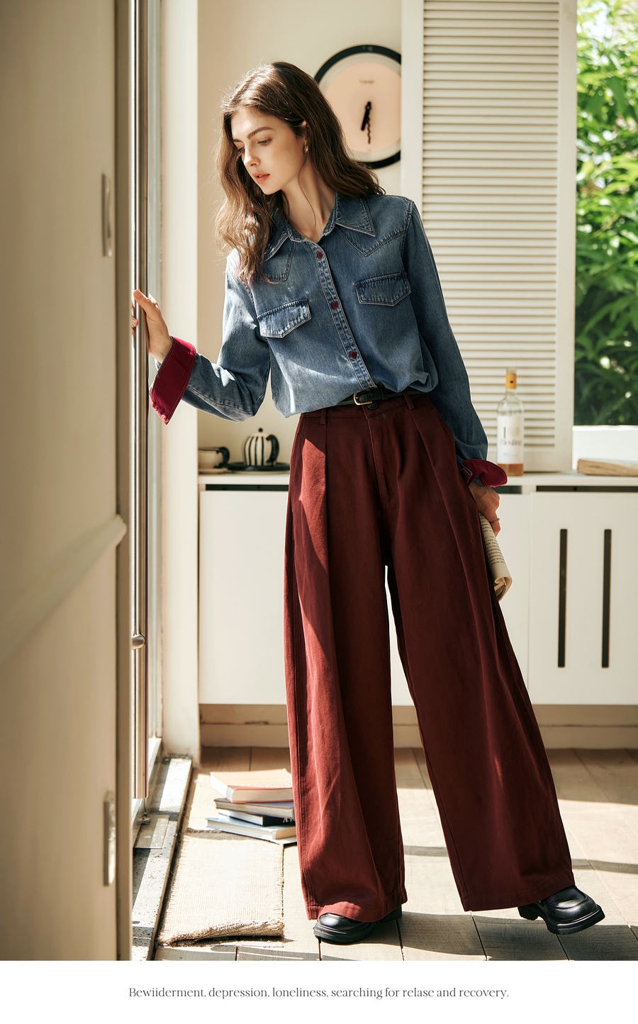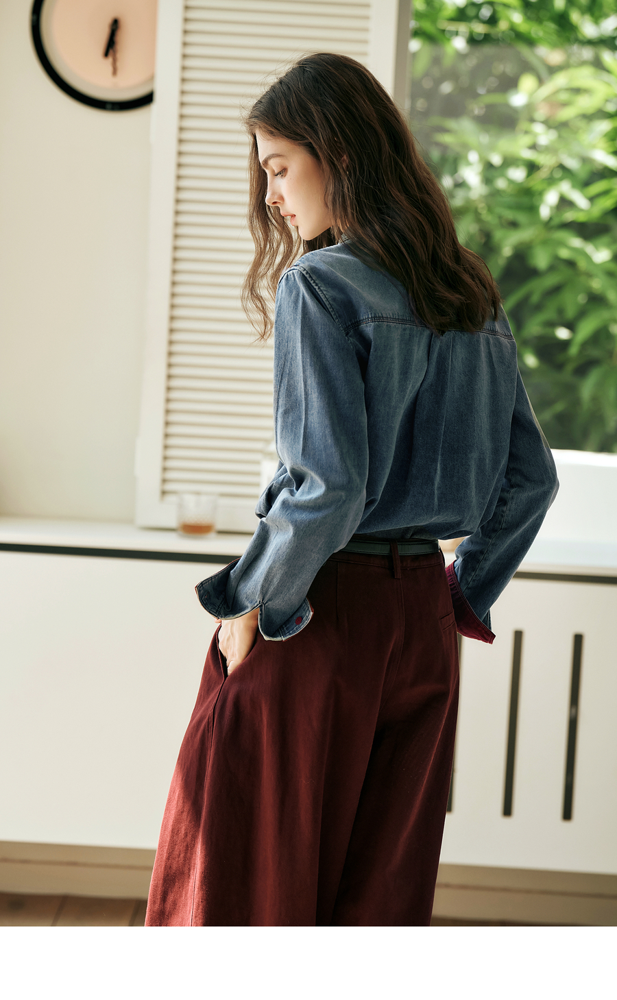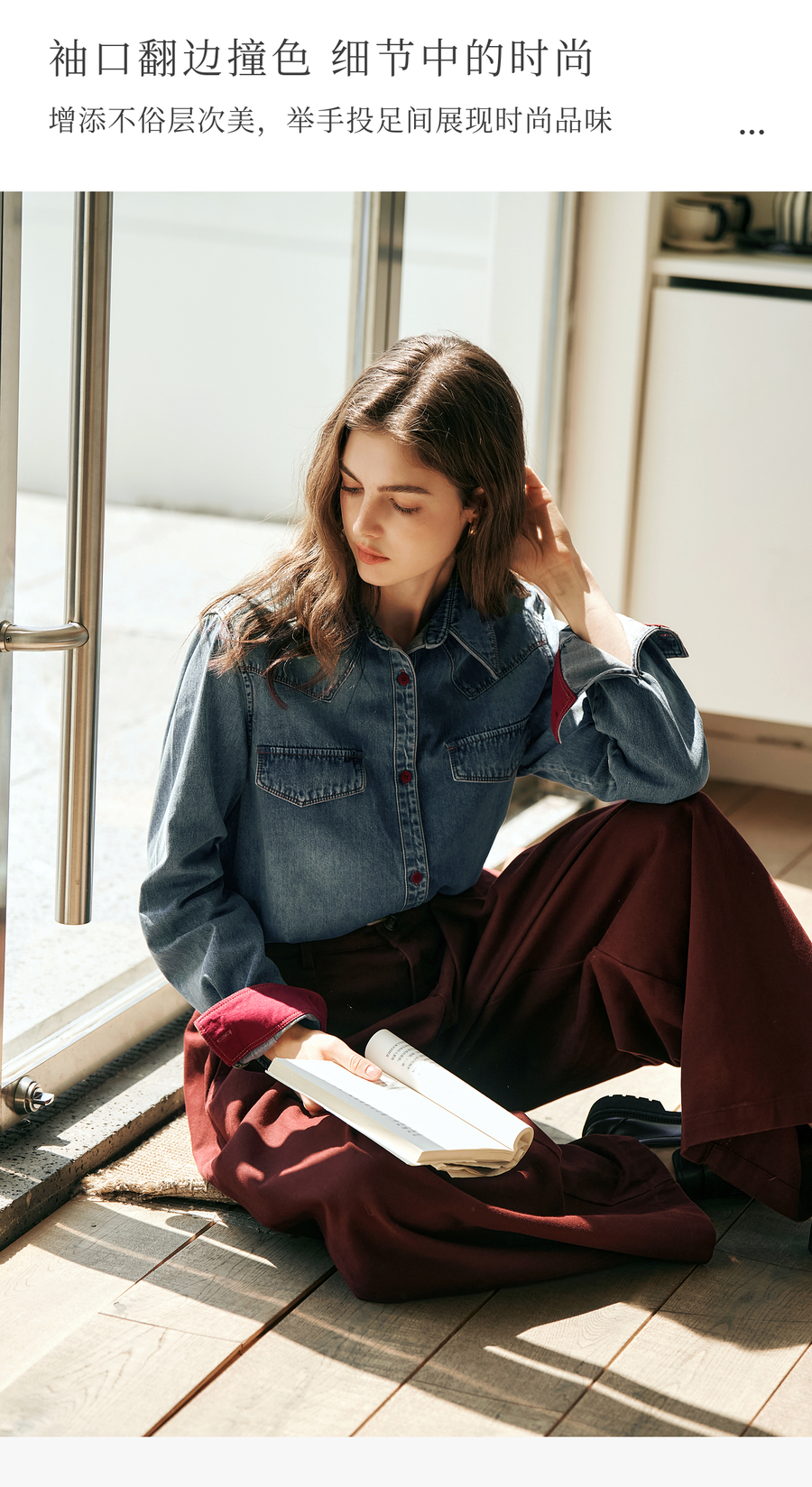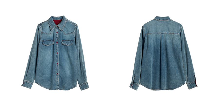 OLrain欧芮儿蓝色牛仔衬衫女秋季2025年新款港风复古撞色上衣