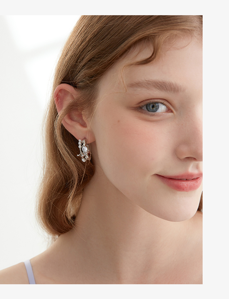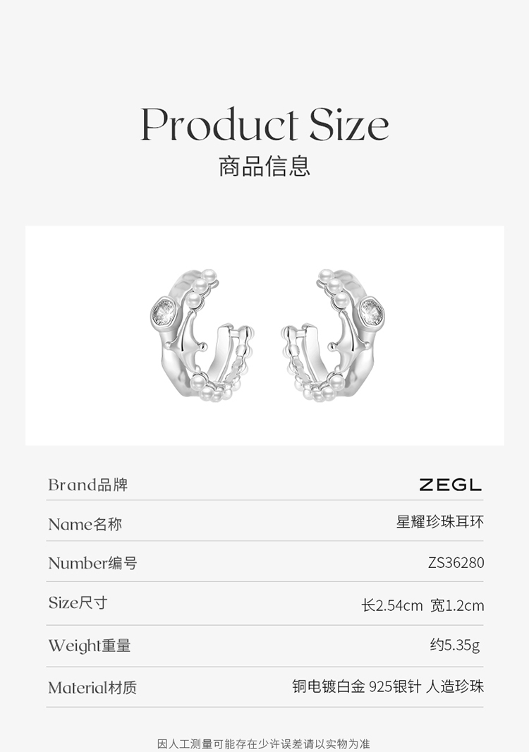 ZEGL液态四芒星人造珍珠耳环女2022年新款潮夏日耳钉925银针耳饰