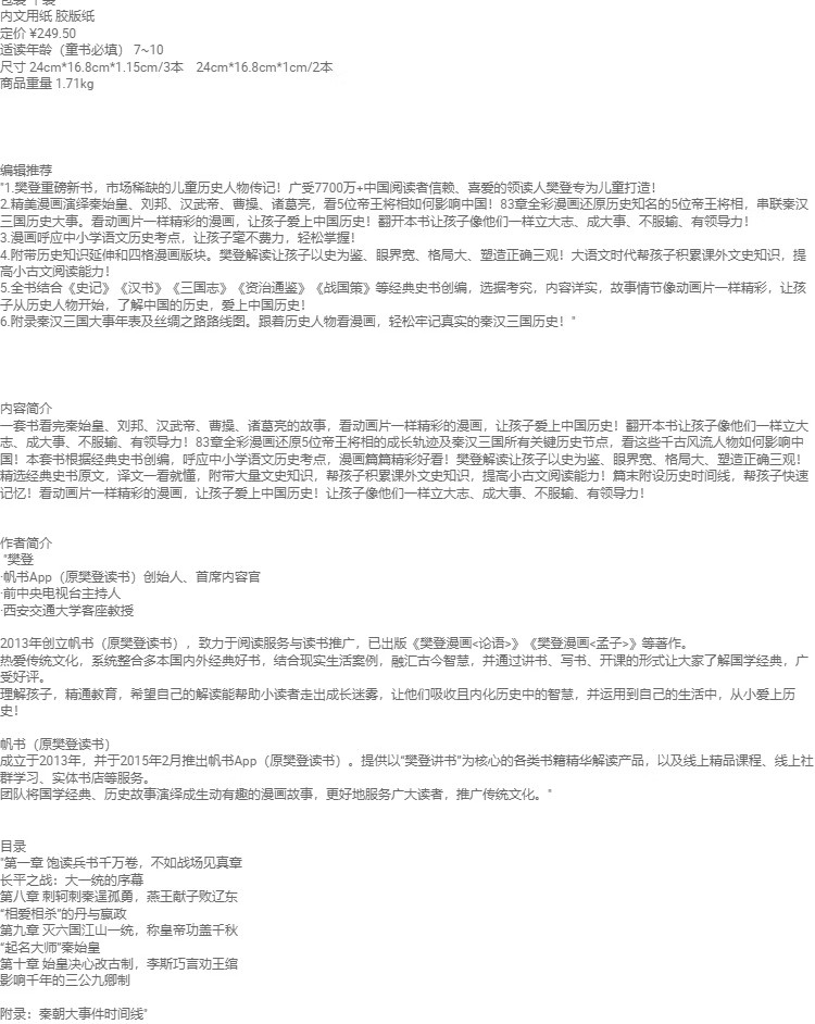 樊登漫画系列 《诸葛亮+曹操+刘邦+秦始皇+汉武帝 》看动画片一样精彩的漫画 让孩子爱上中国历史