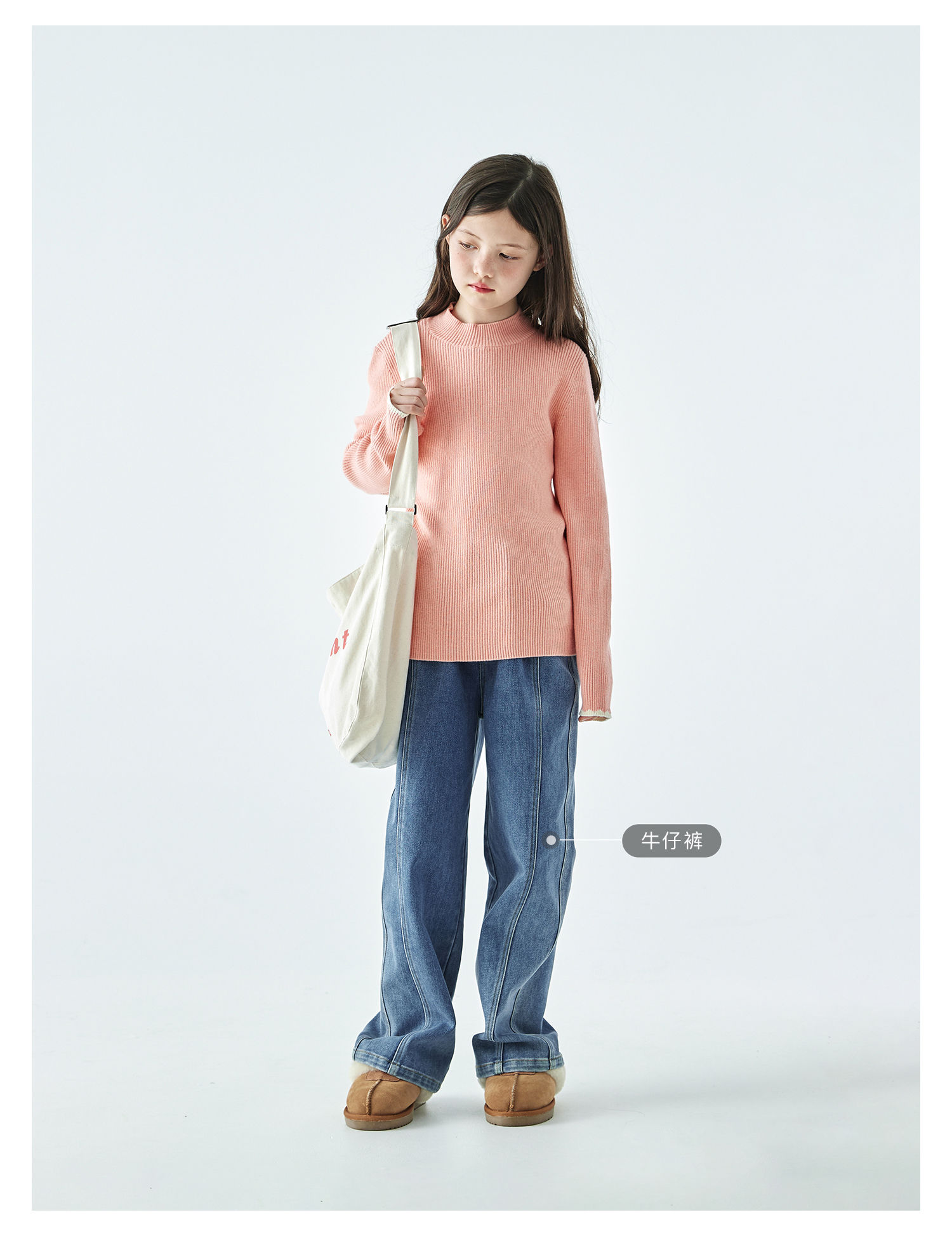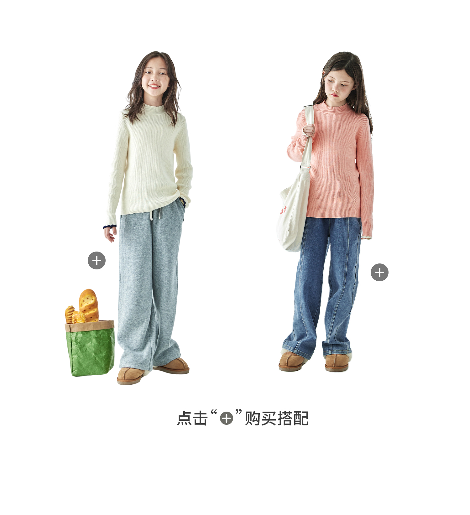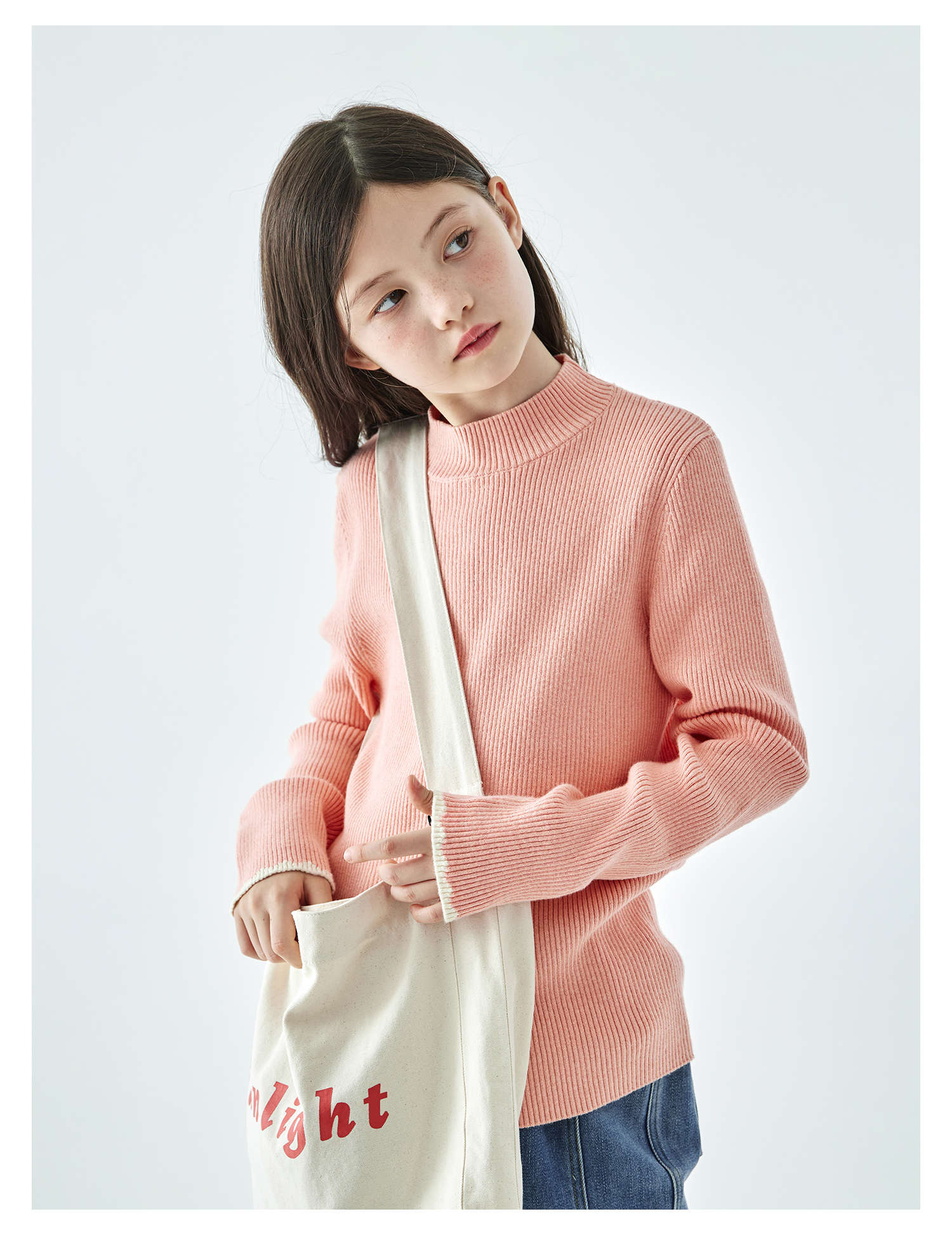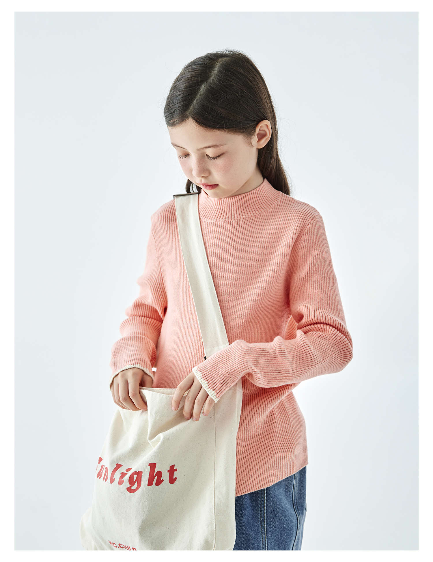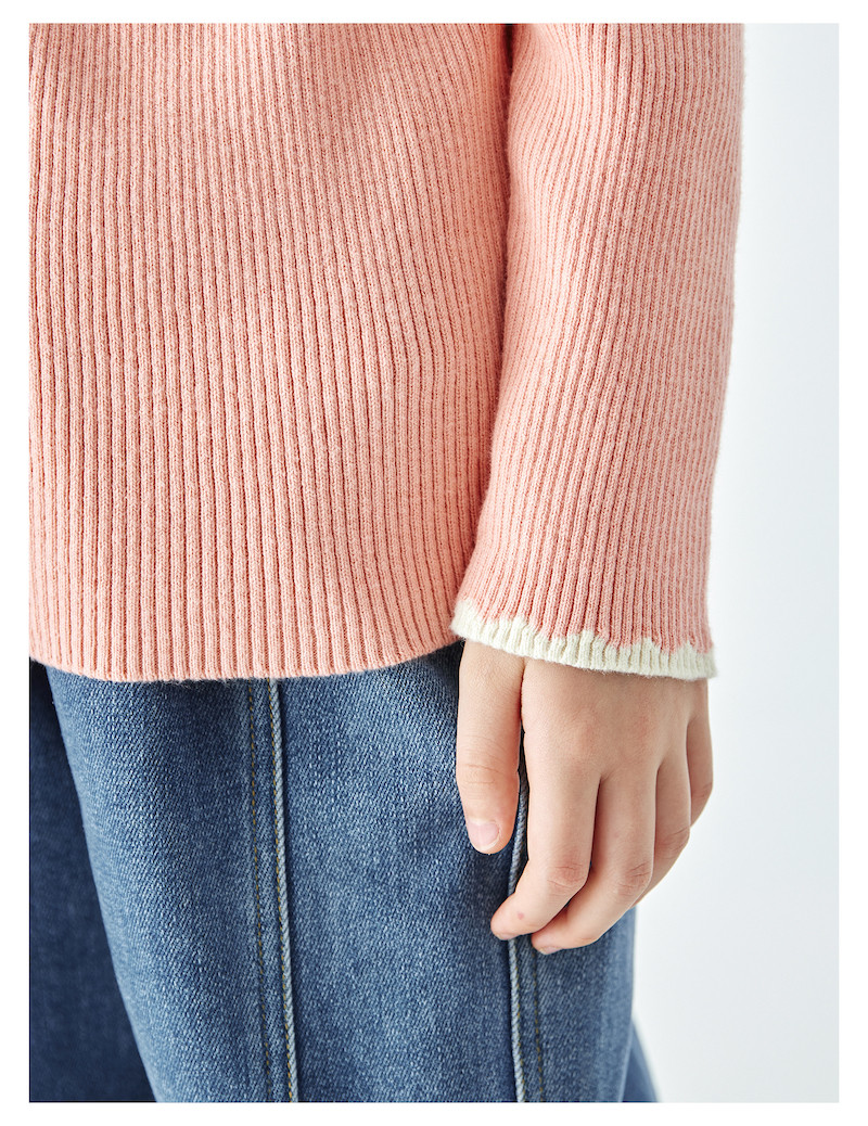 棵初2025年秋冬季新款亲子中大女童纯色半高领毛衣亲肤棉感针织衫