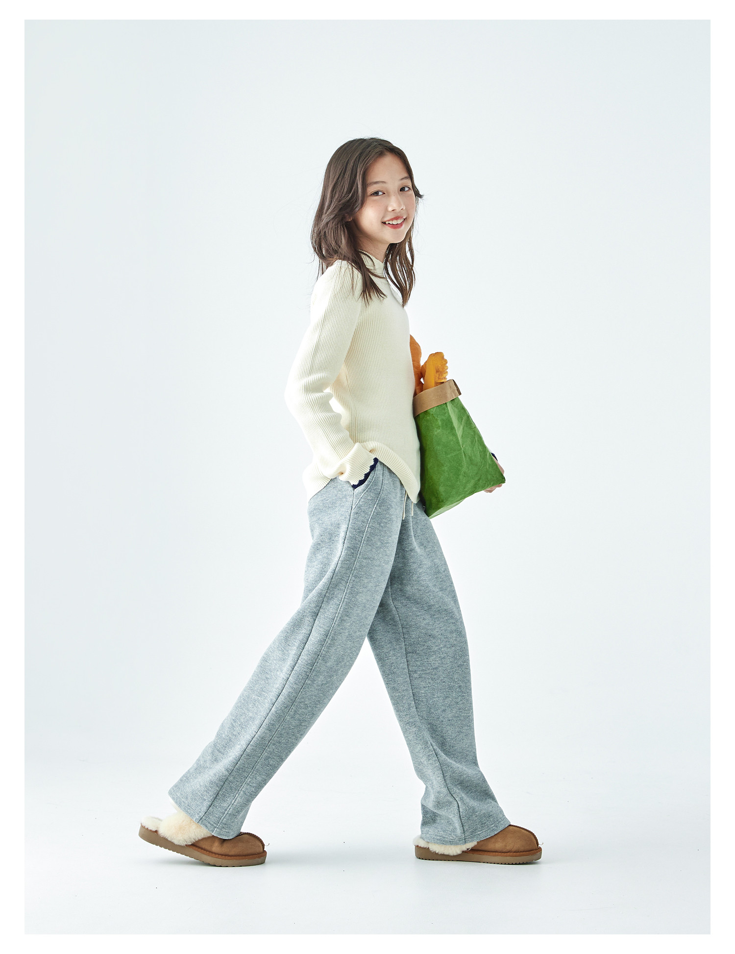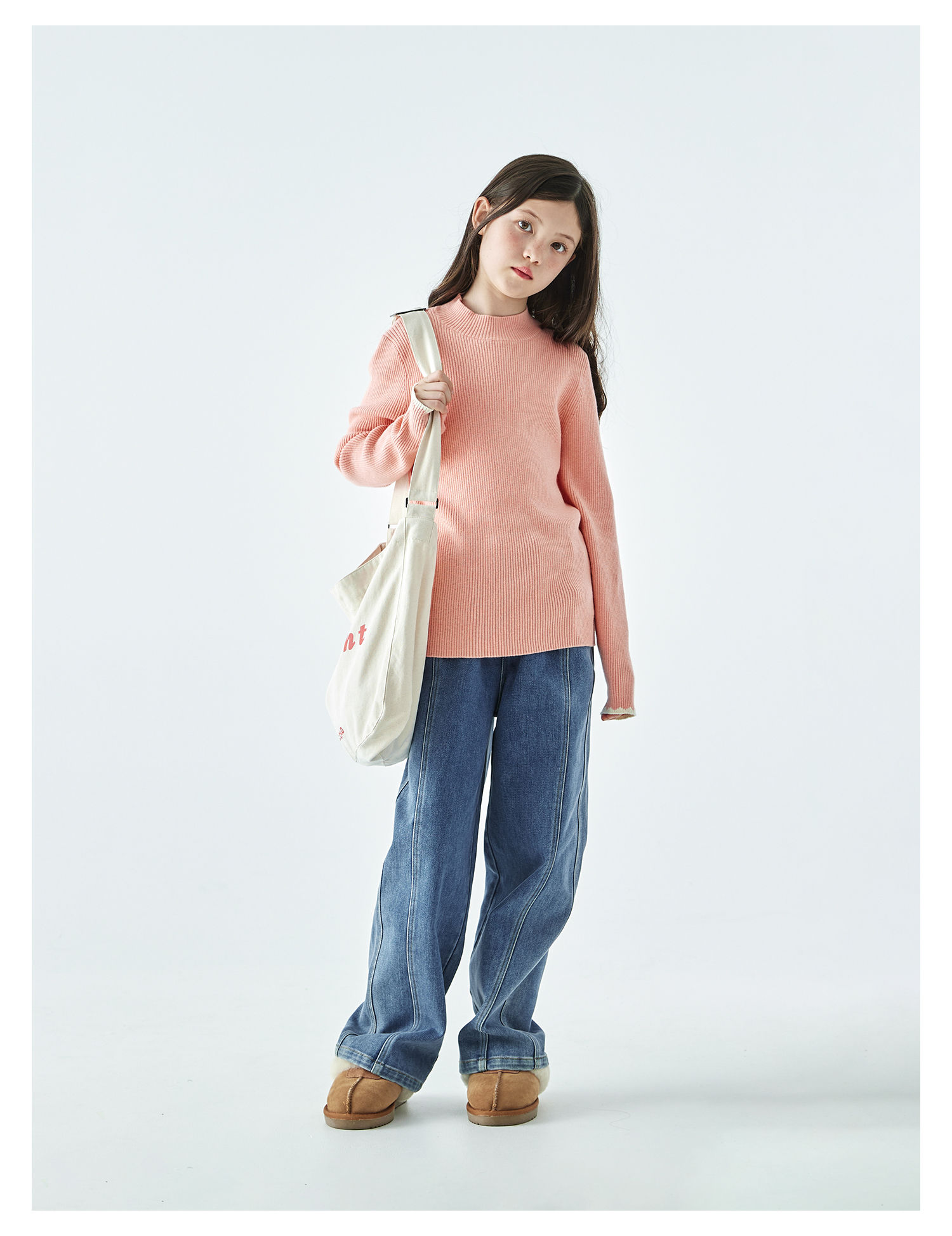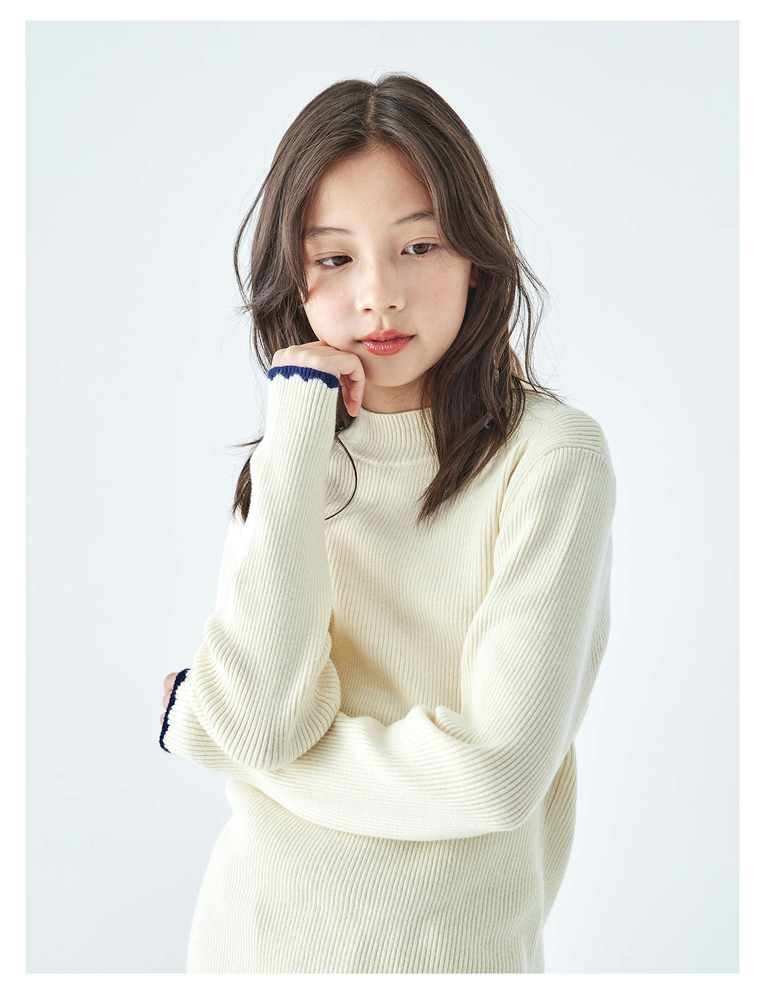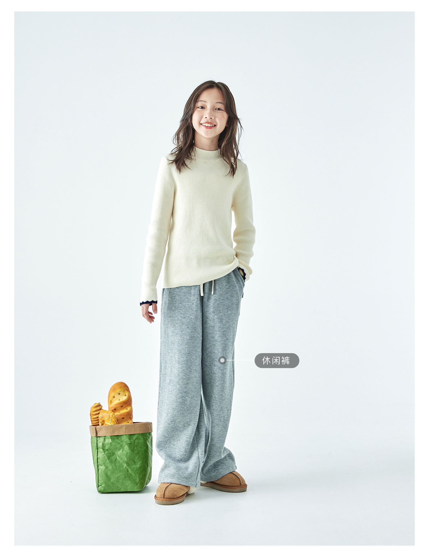棵初2025年秋冬季新款亲子中大女童纯色半高领毛衣亲肤棉感针织衫