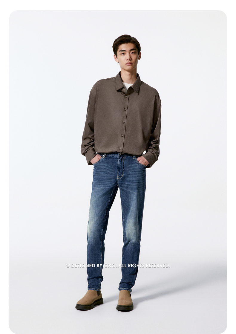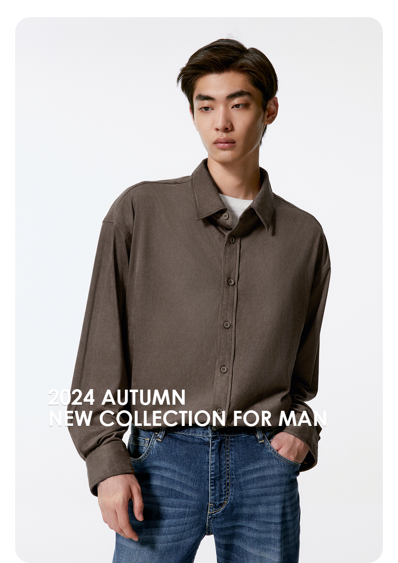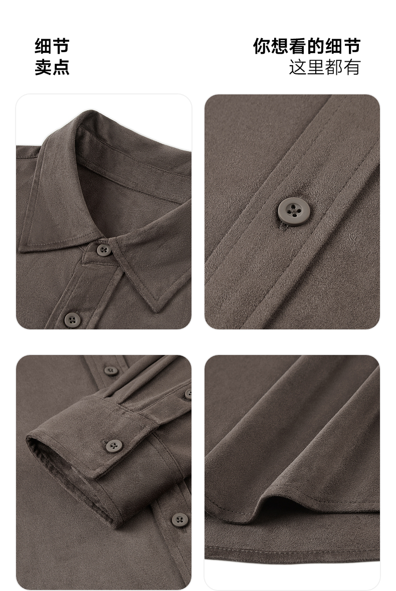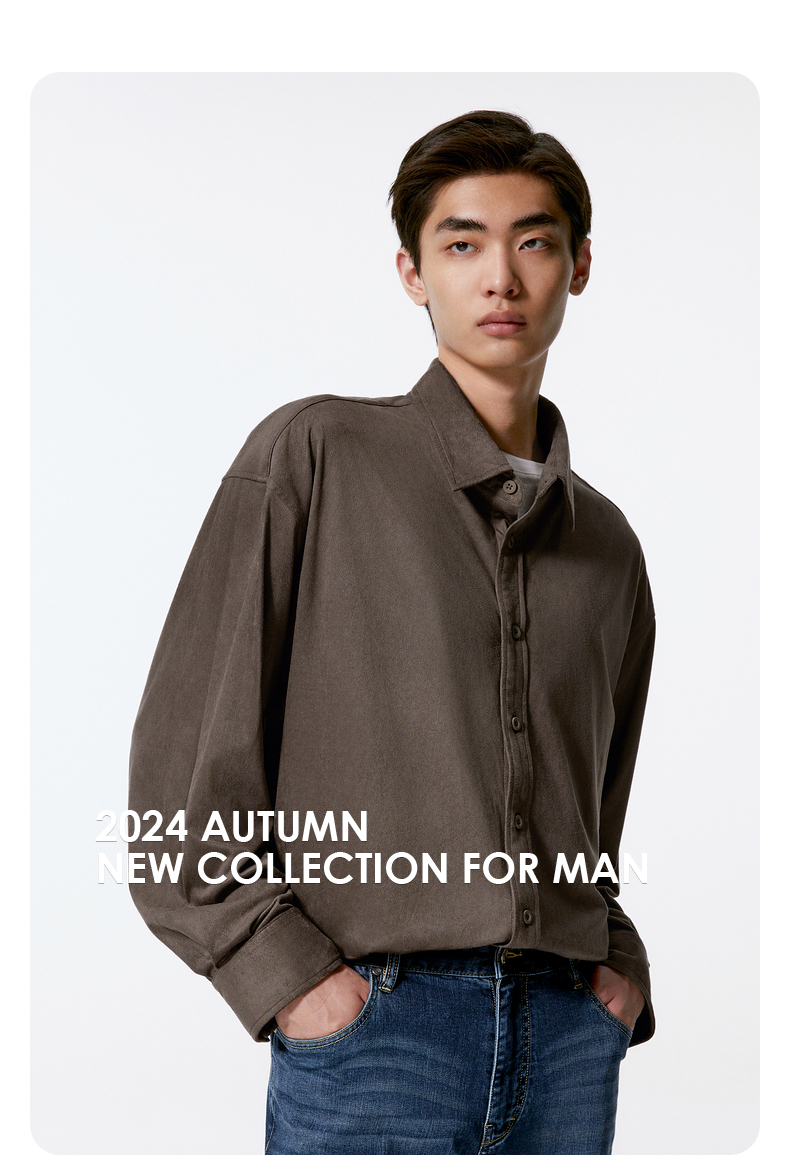 GXG男装 棕灰色仿麂皮翻领长袖衬衫外套24年秋季热卖G24X033039