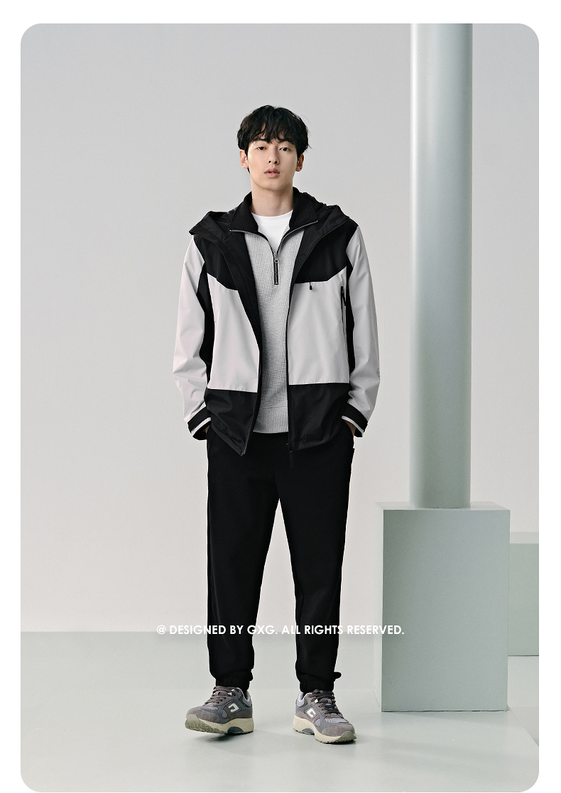 GXG男装 连帽卫衣字母绣花上衣双色长袖内搭 2025秋季新品