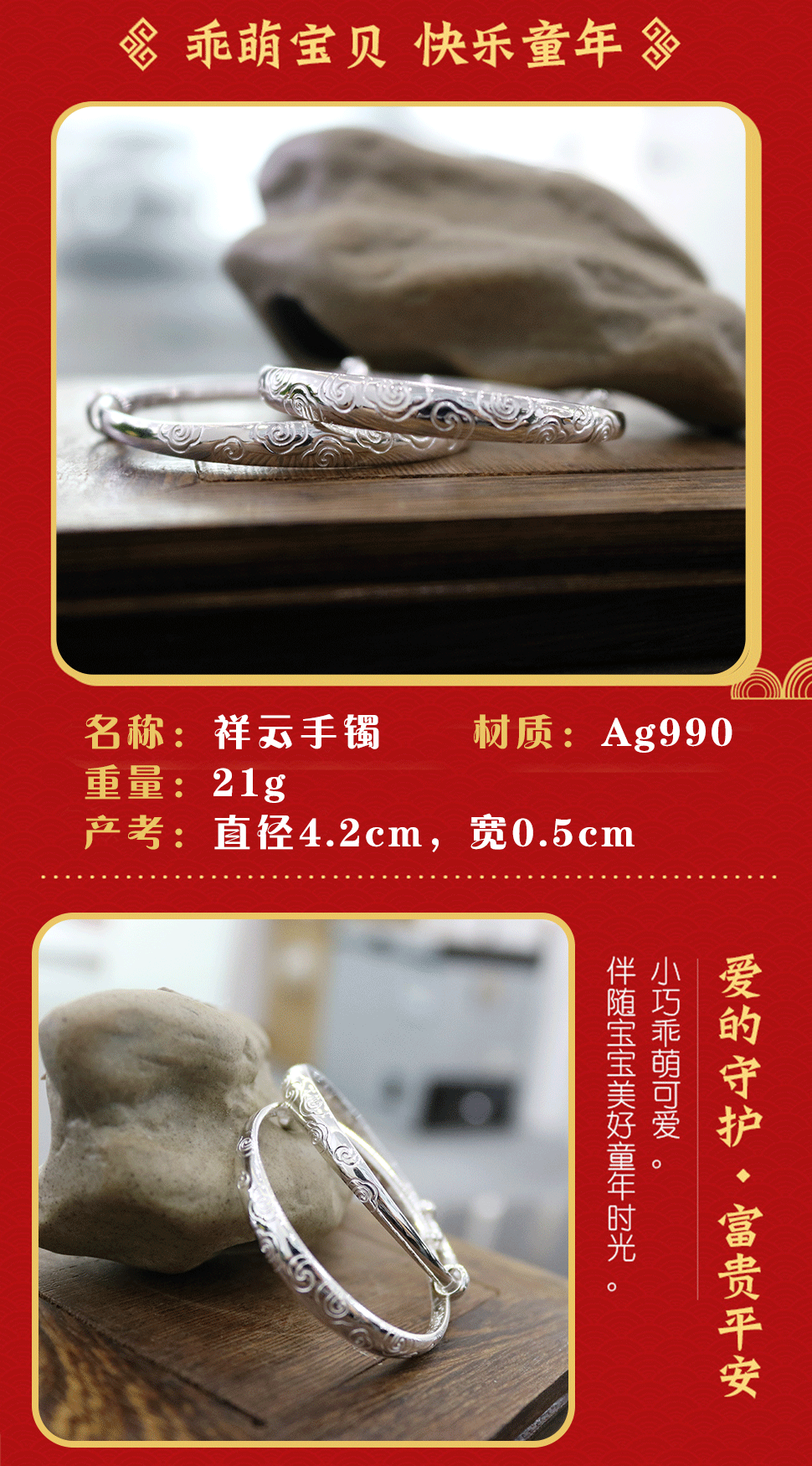 子佩集S990银祥云儿童手镯【YHSZ078】203