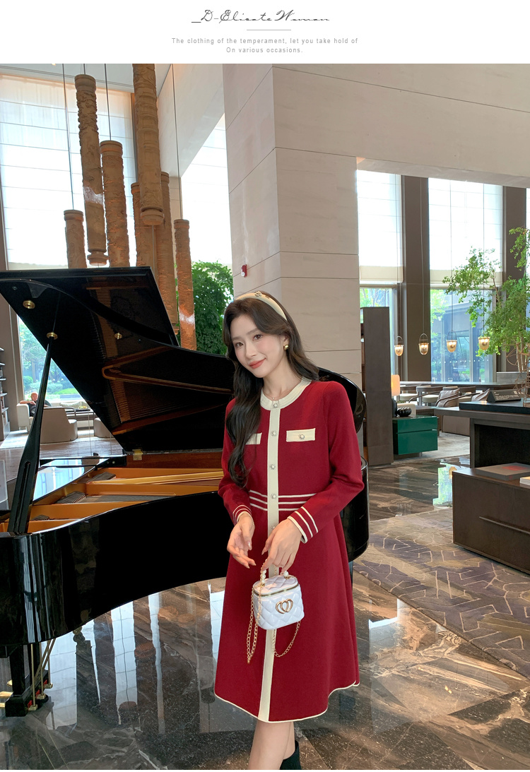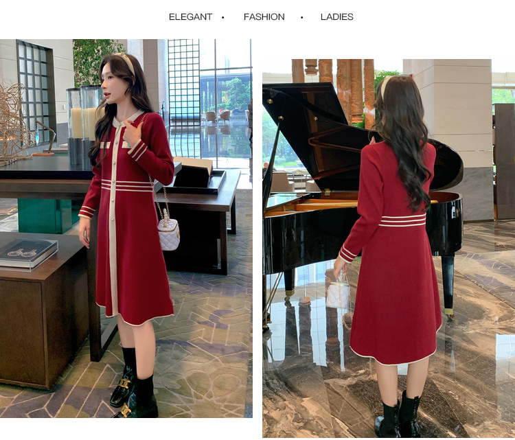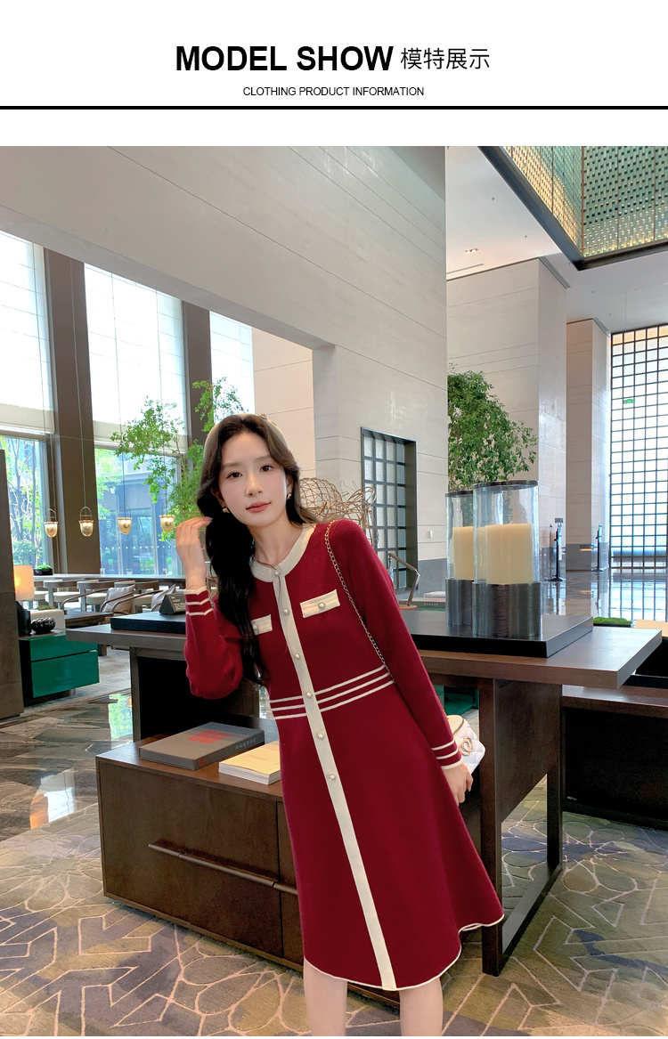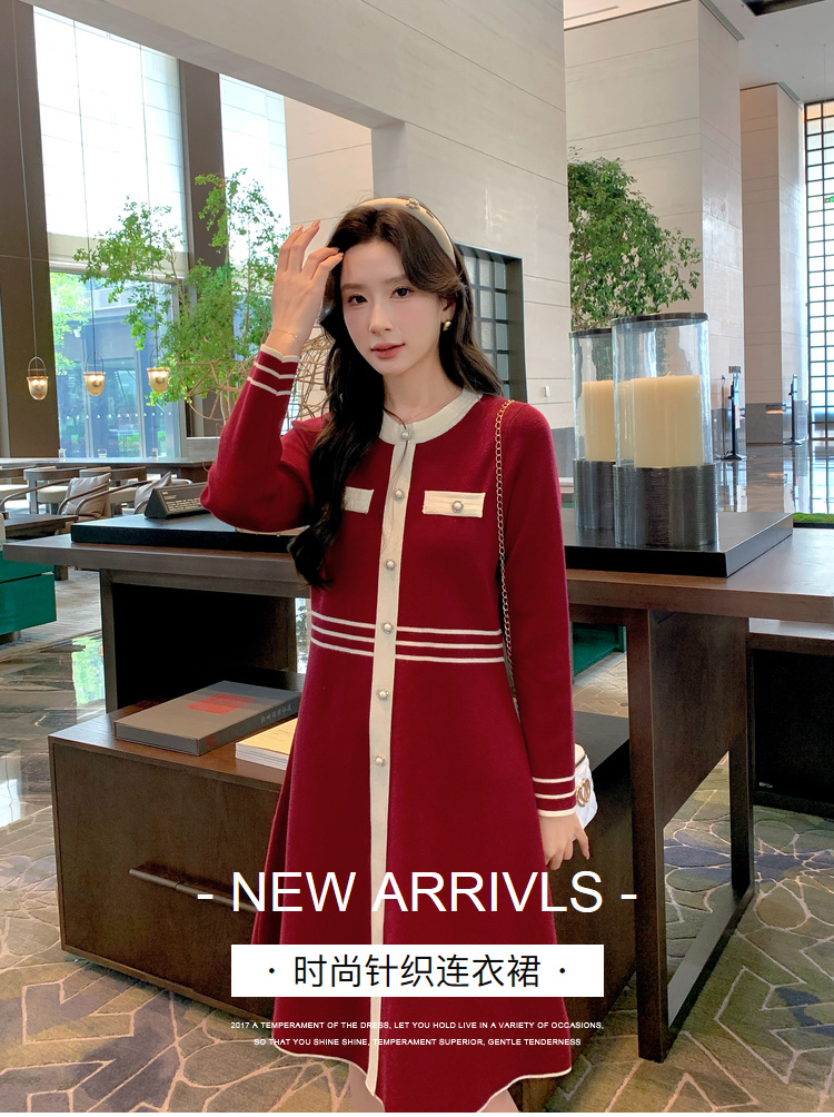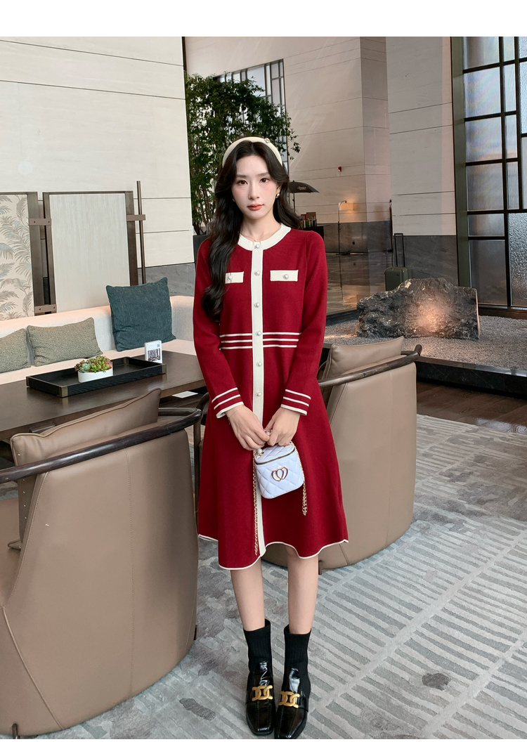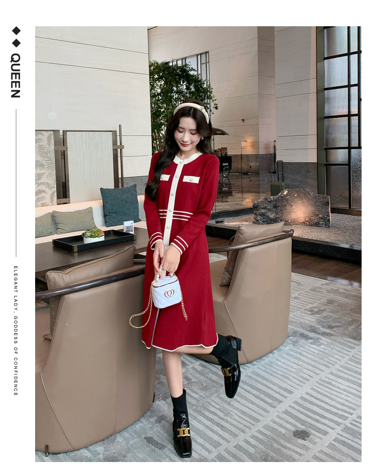 奢姿大码女装2024冬季小香风针织裙子胖妹妹纽扣装饰时尚连衣裙9844826897