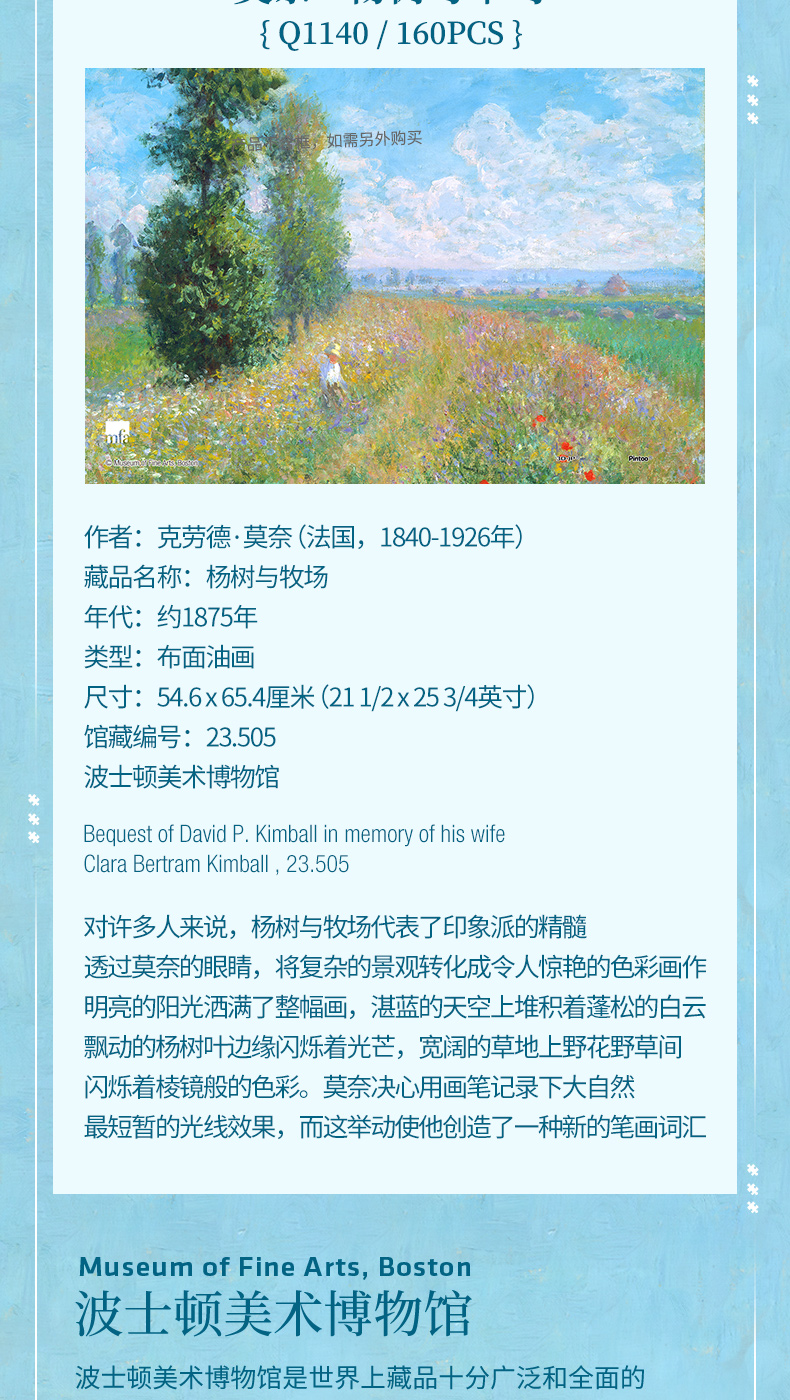 160片 迷你塑料拼图 Q1140 波士顿美术博物馆系列-莫奈-杨树与草甸