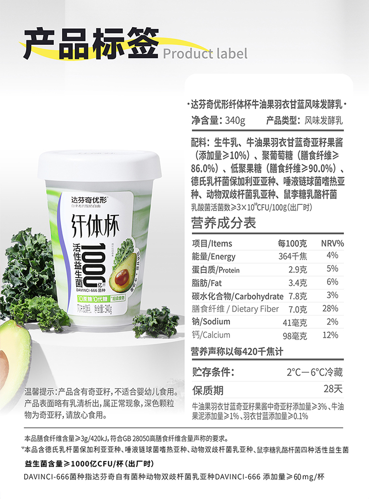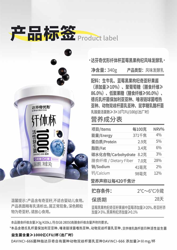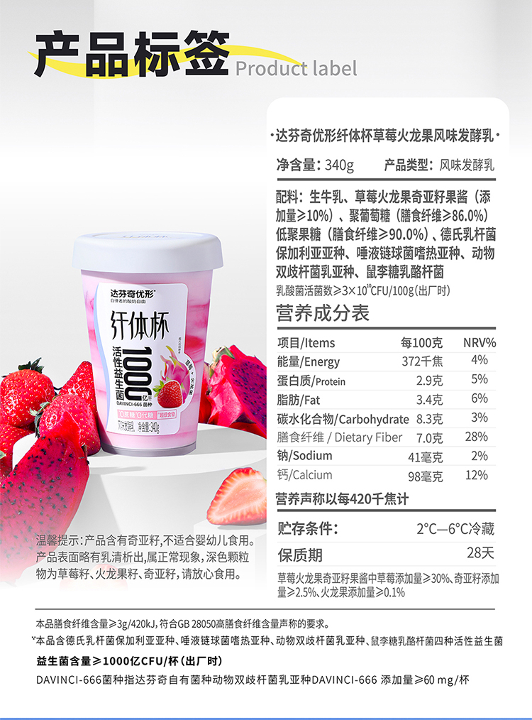 【4月专场 2件减10】达芬奇纤体杯酸奶340g*6杯(本链接10倍积分)