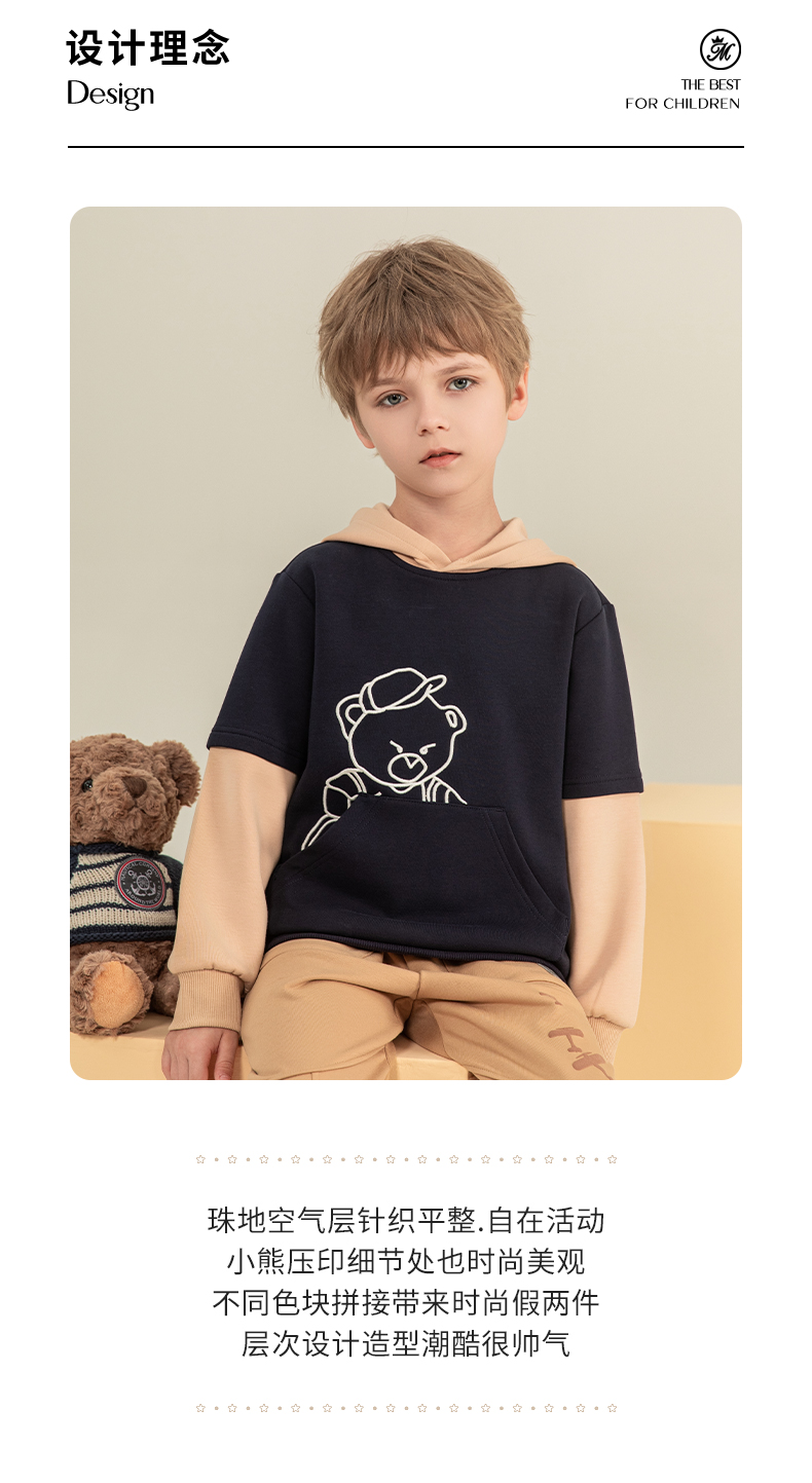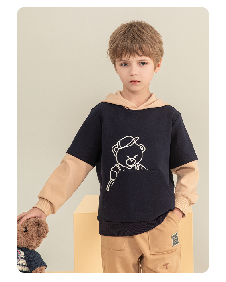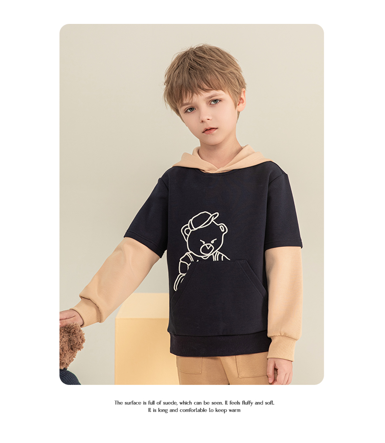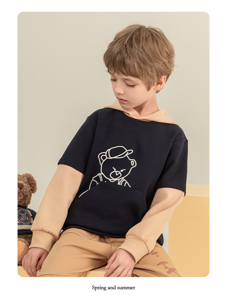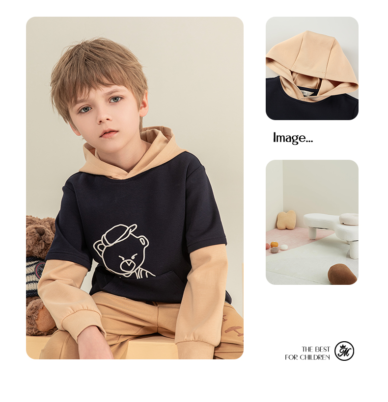 mettekids男童卫衣2023秋季新款假两件长袖儿童休闲卡通连帽童装