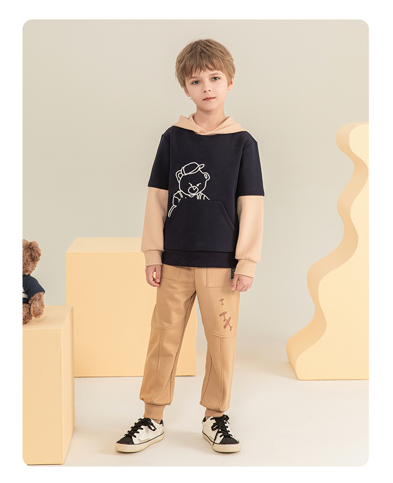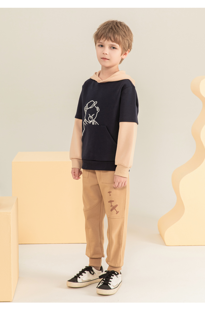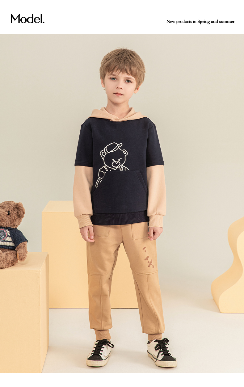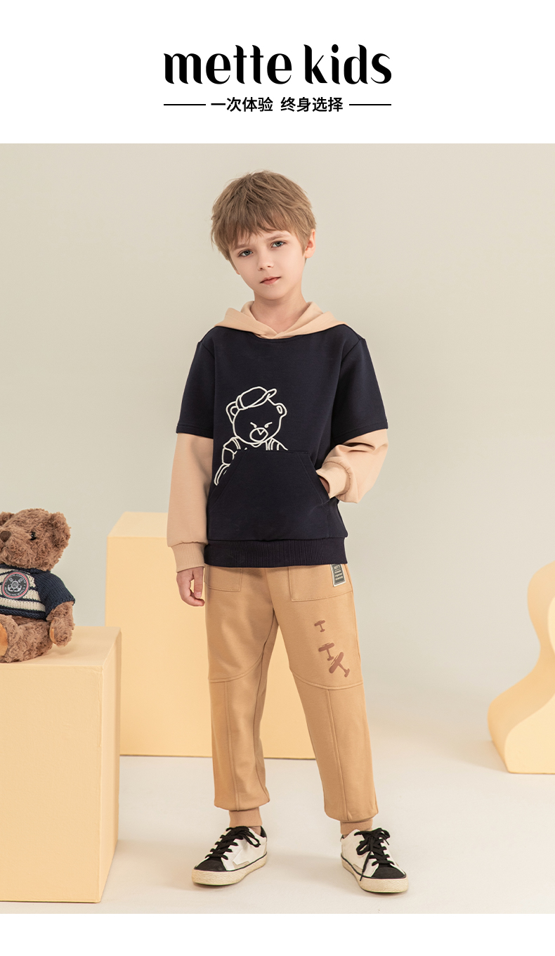 mettekids男童卫衣2023秋季新款假两件长袖儿童休闲卡通连帽童装