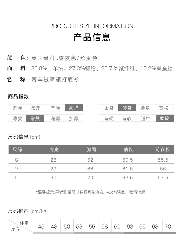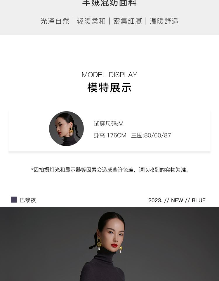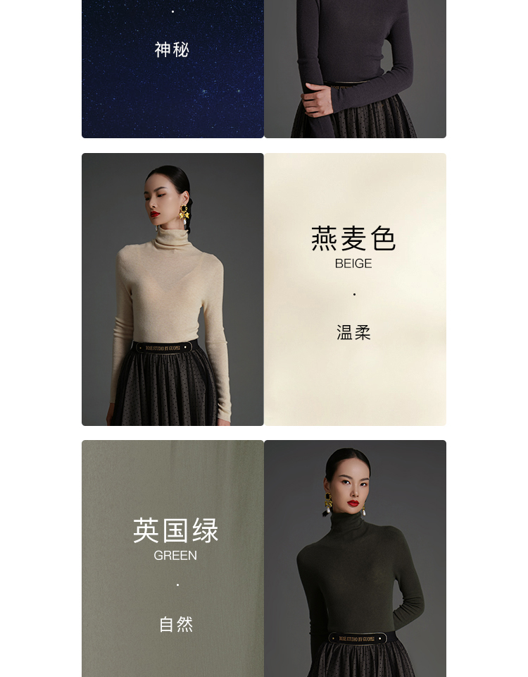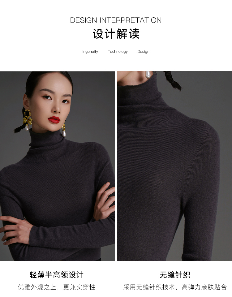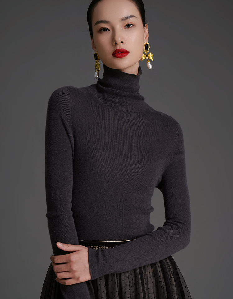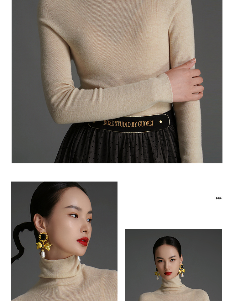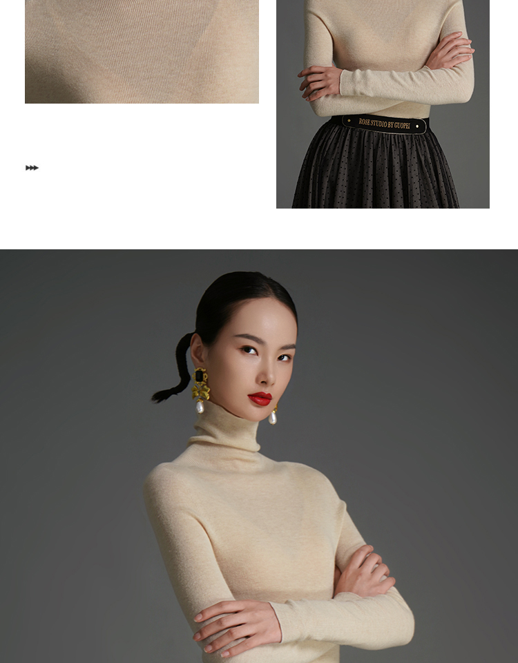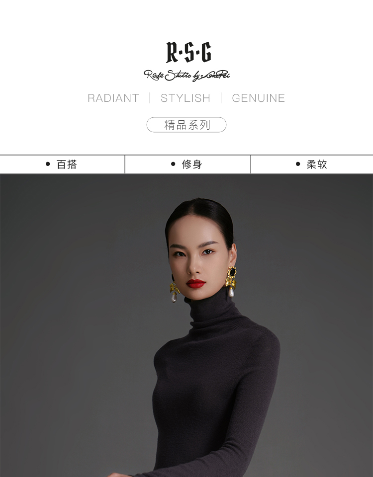 RSG郭培成衣品牌原创设计薄款羊绒高领高级感女士打底上衣